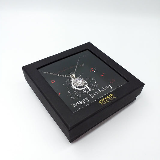 Birthday / Music - 925 Sterling Silver Cubic Zirconia Round Minimalist Necklace TE2L85HBMS