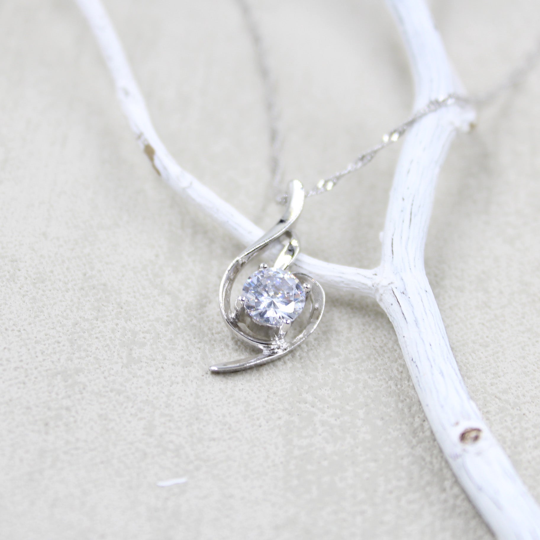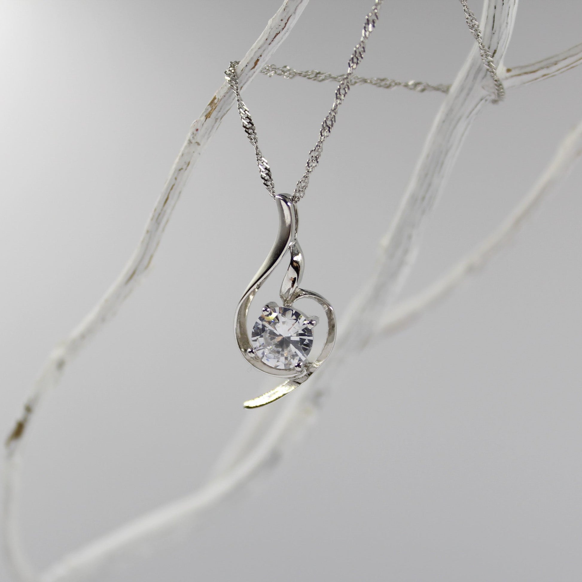 925 Sterling Silver - Cubic Zirconia - Irregular Minimalist Necklace TE3