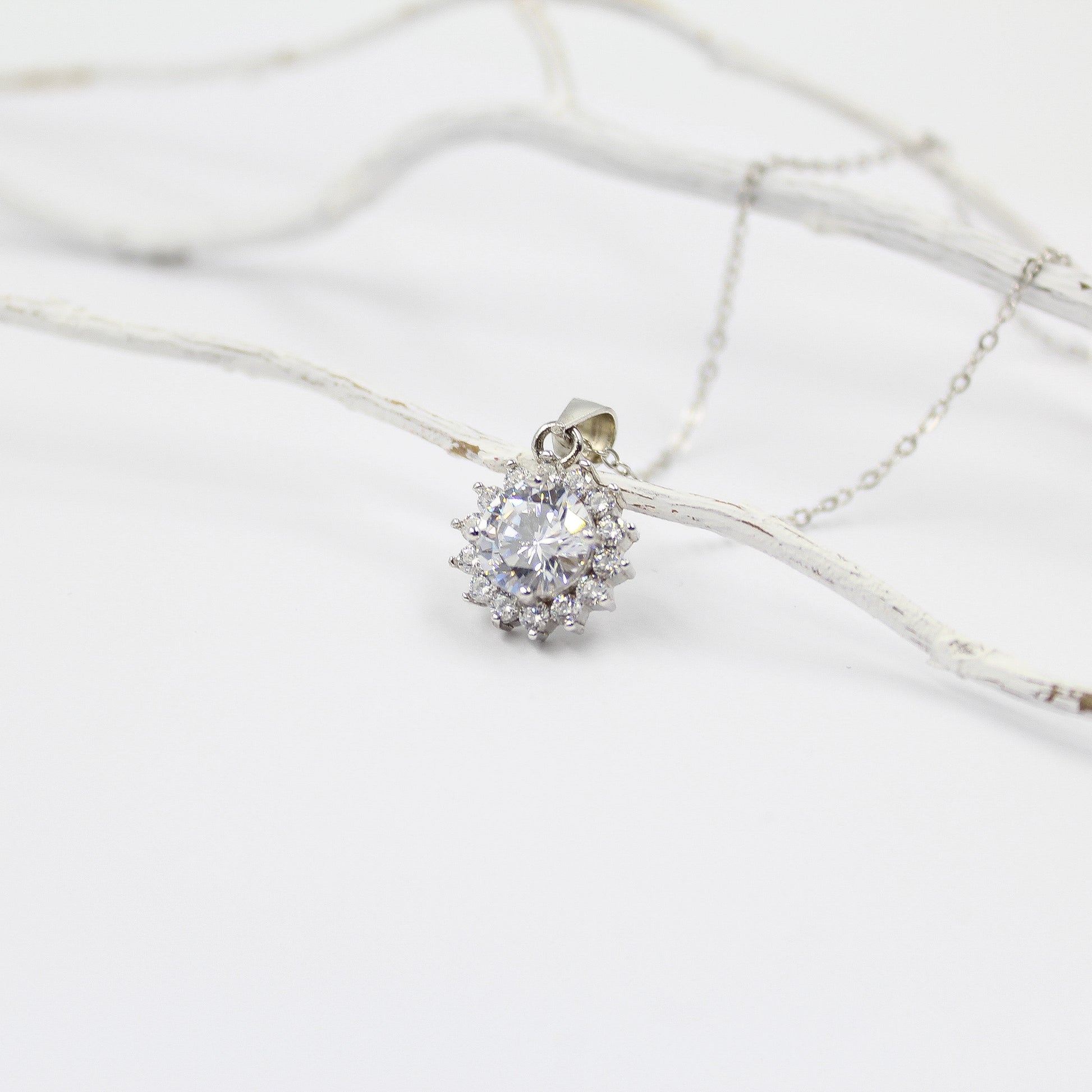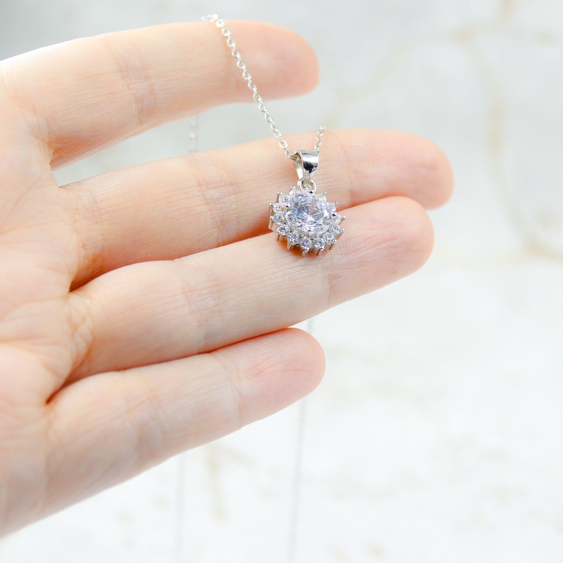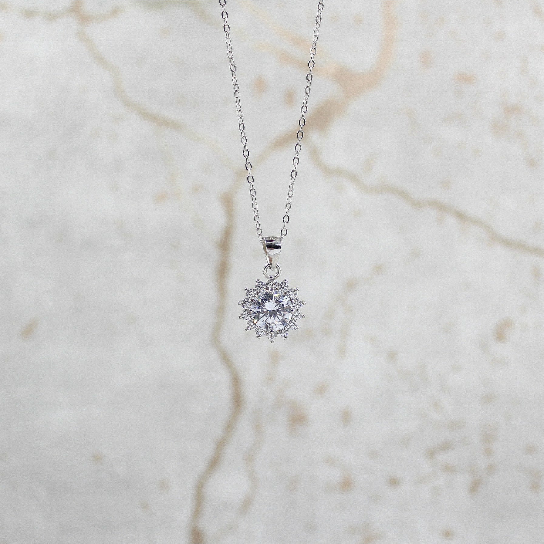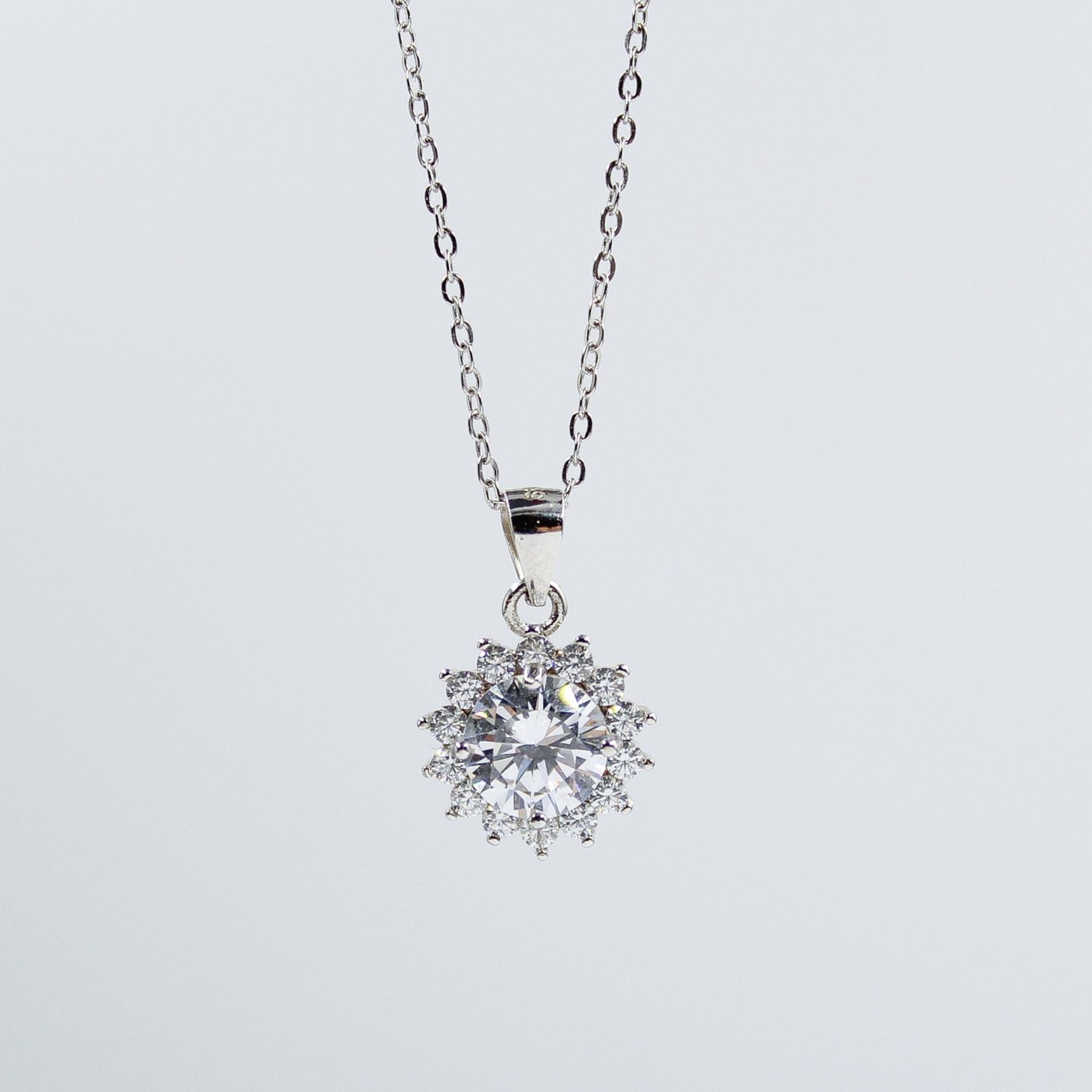 925 Sterling Silver - Cubic Zirconia - Round Minimalist Necklace TE2