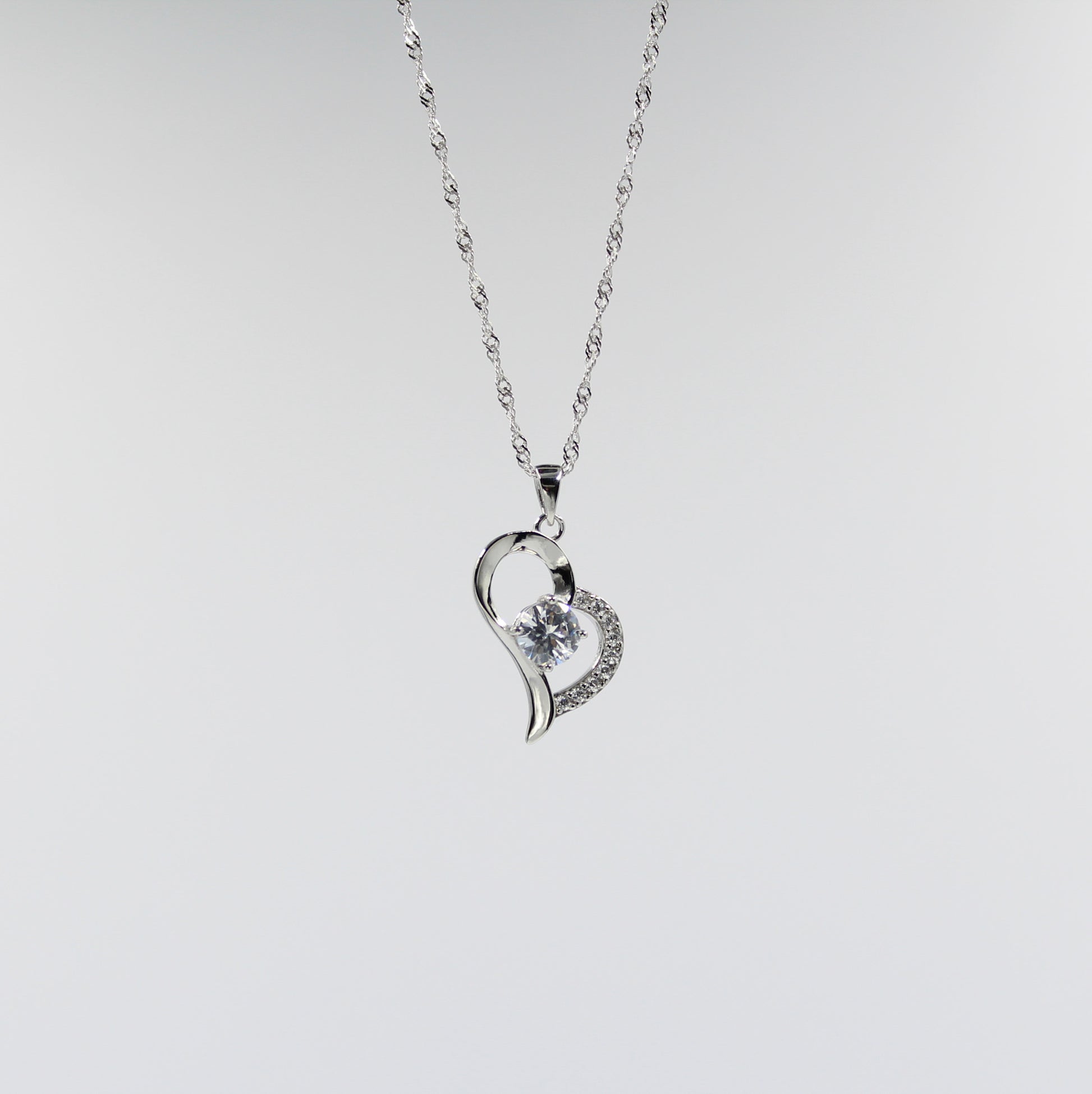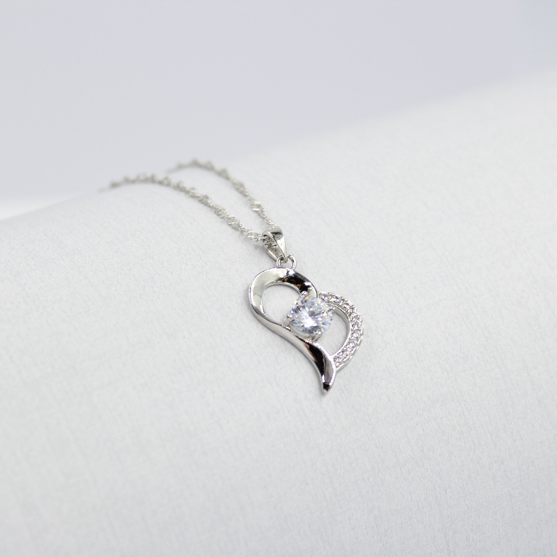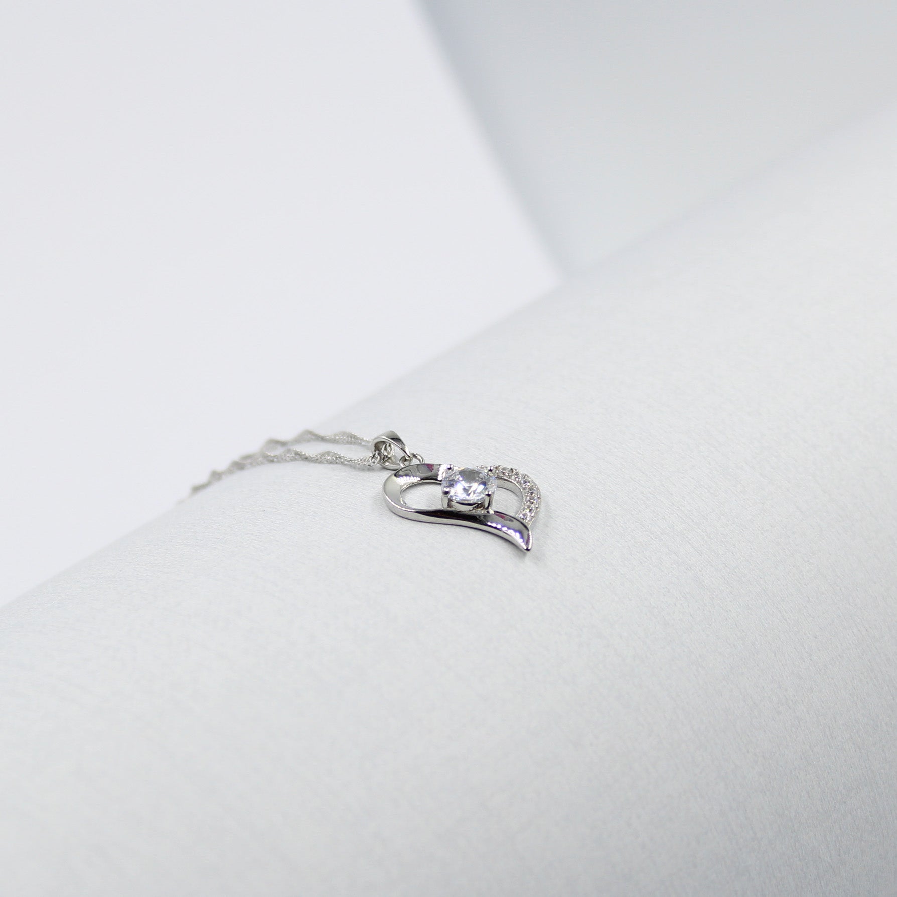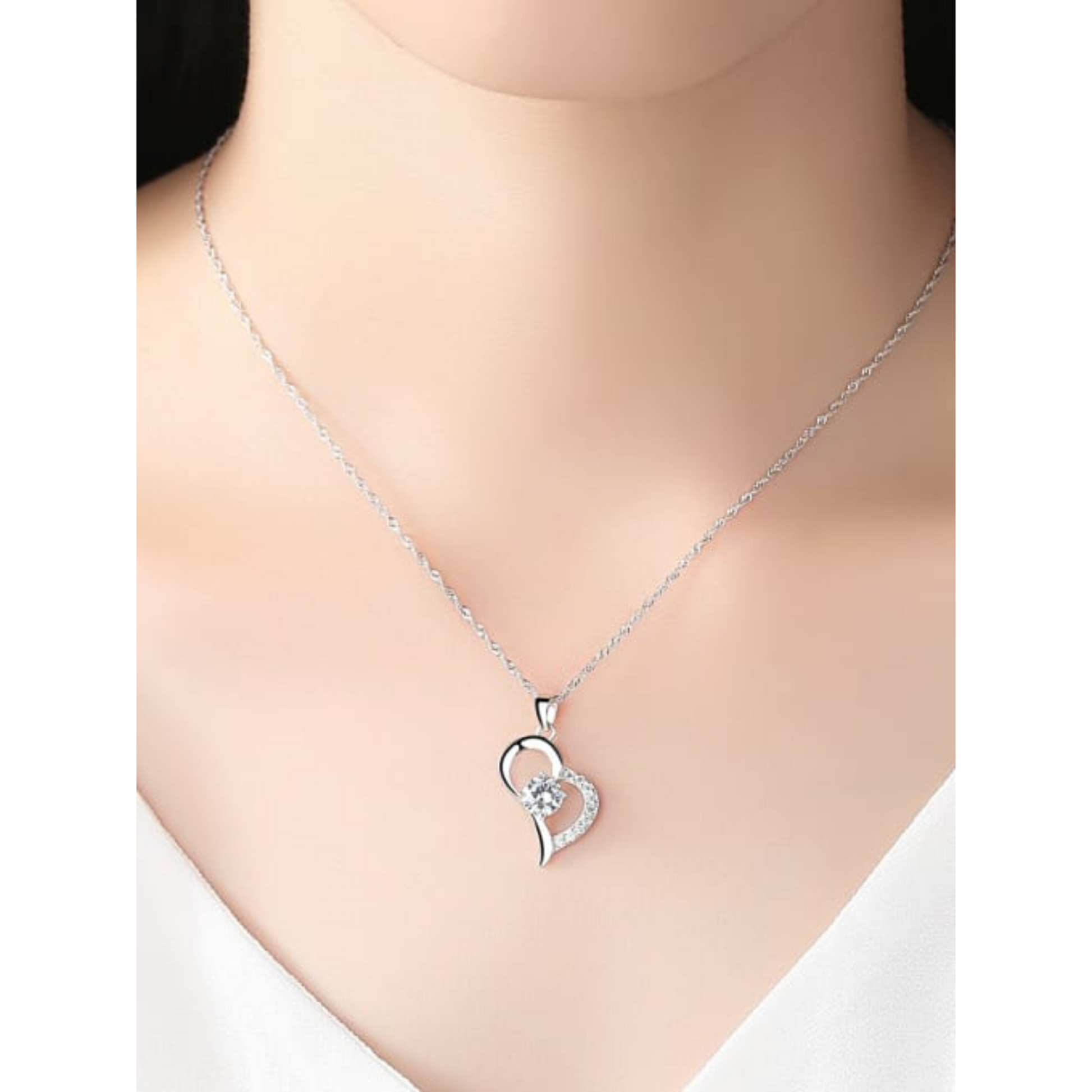 White Gold Plated - Cubic Zirconia - Simplistic Heart Necklace TE11