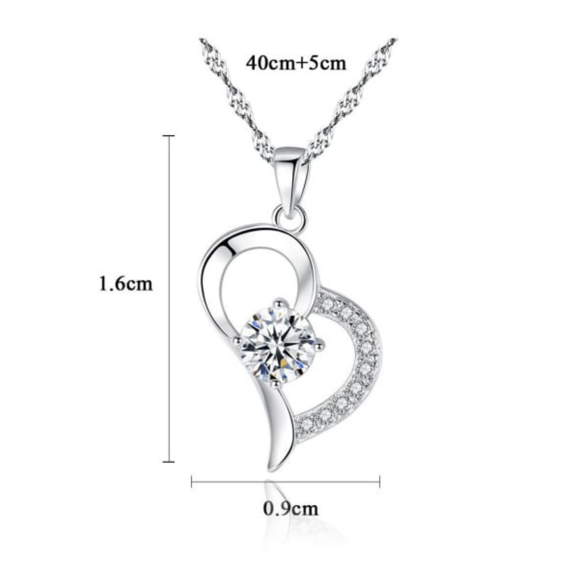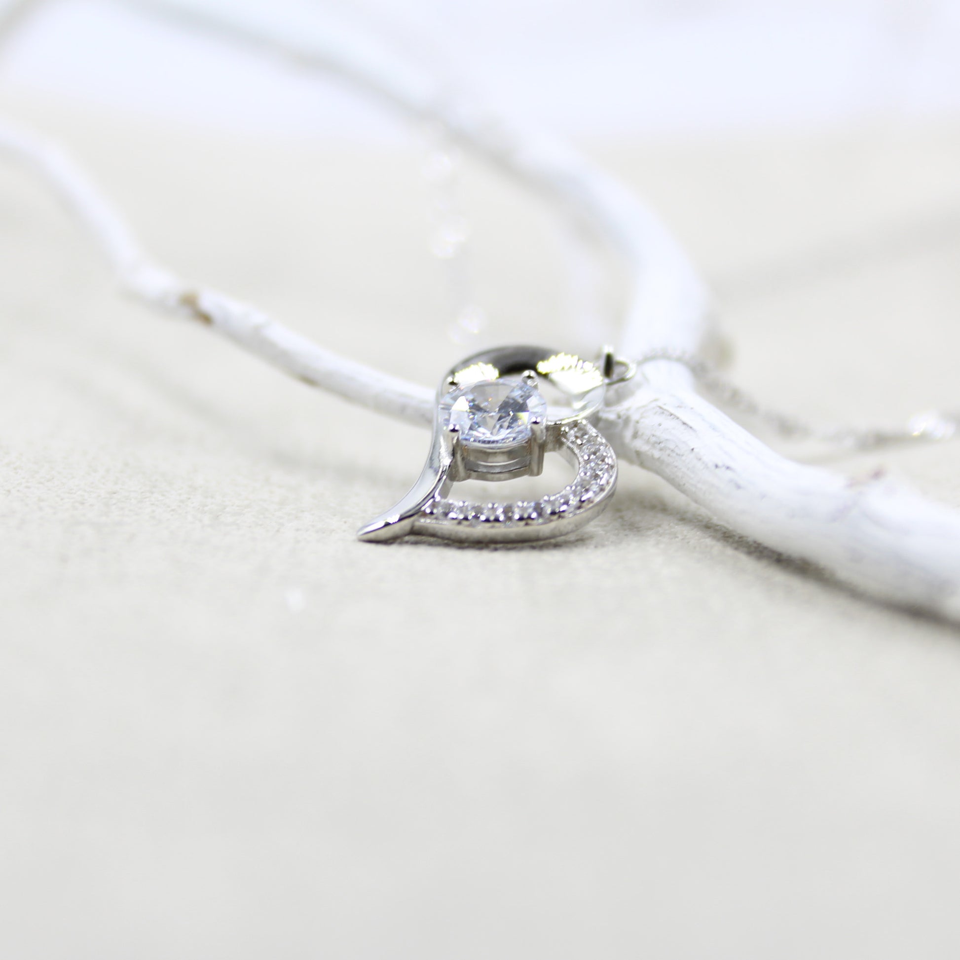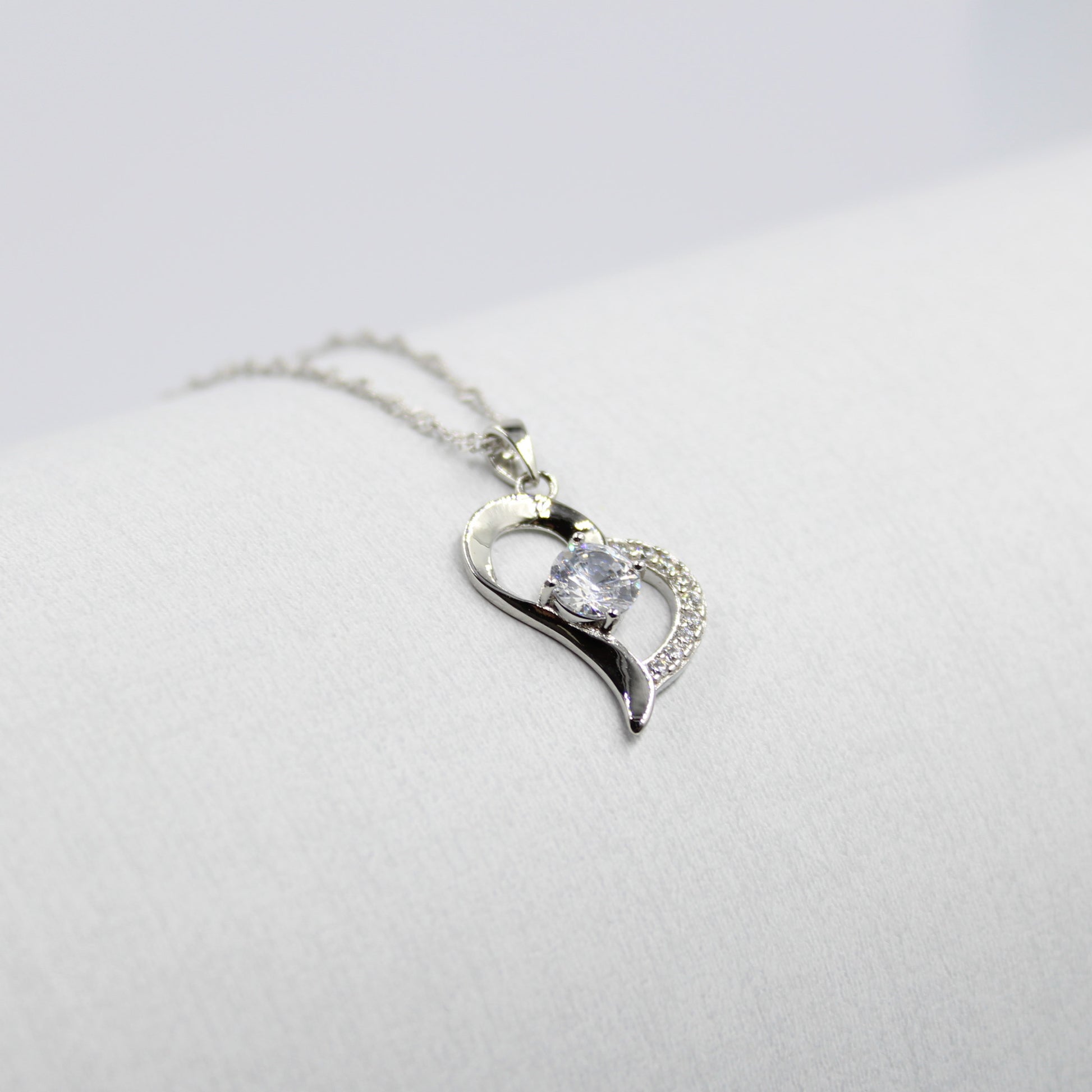 White Gold Plated - Cubic Zirconia - Simplistic Heart Necklace TE11