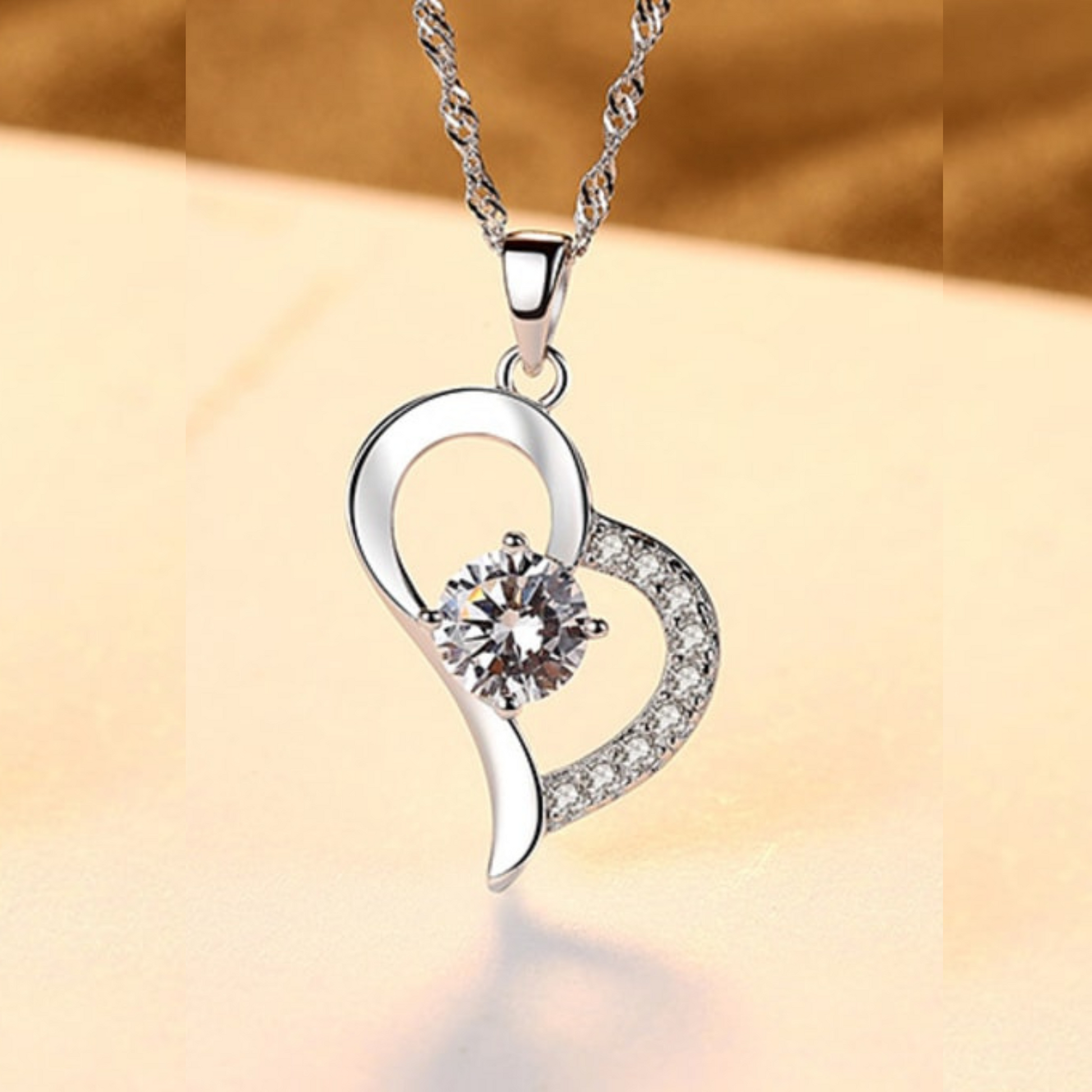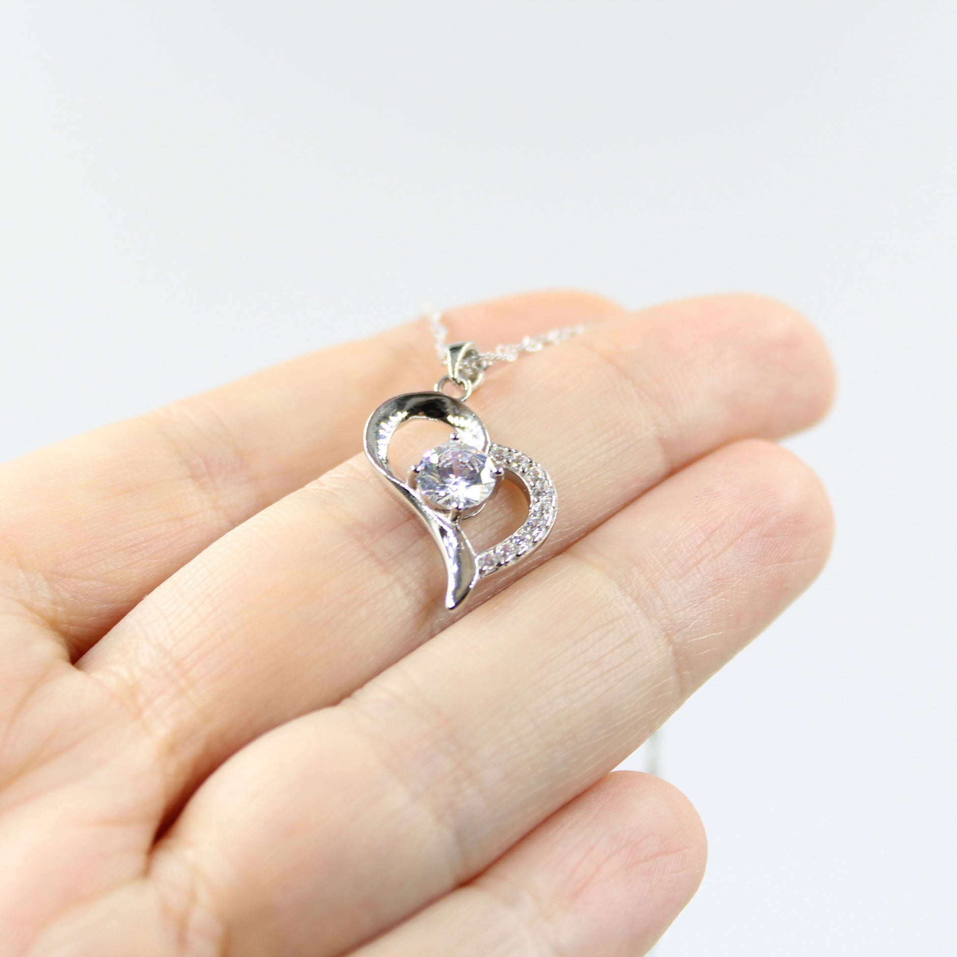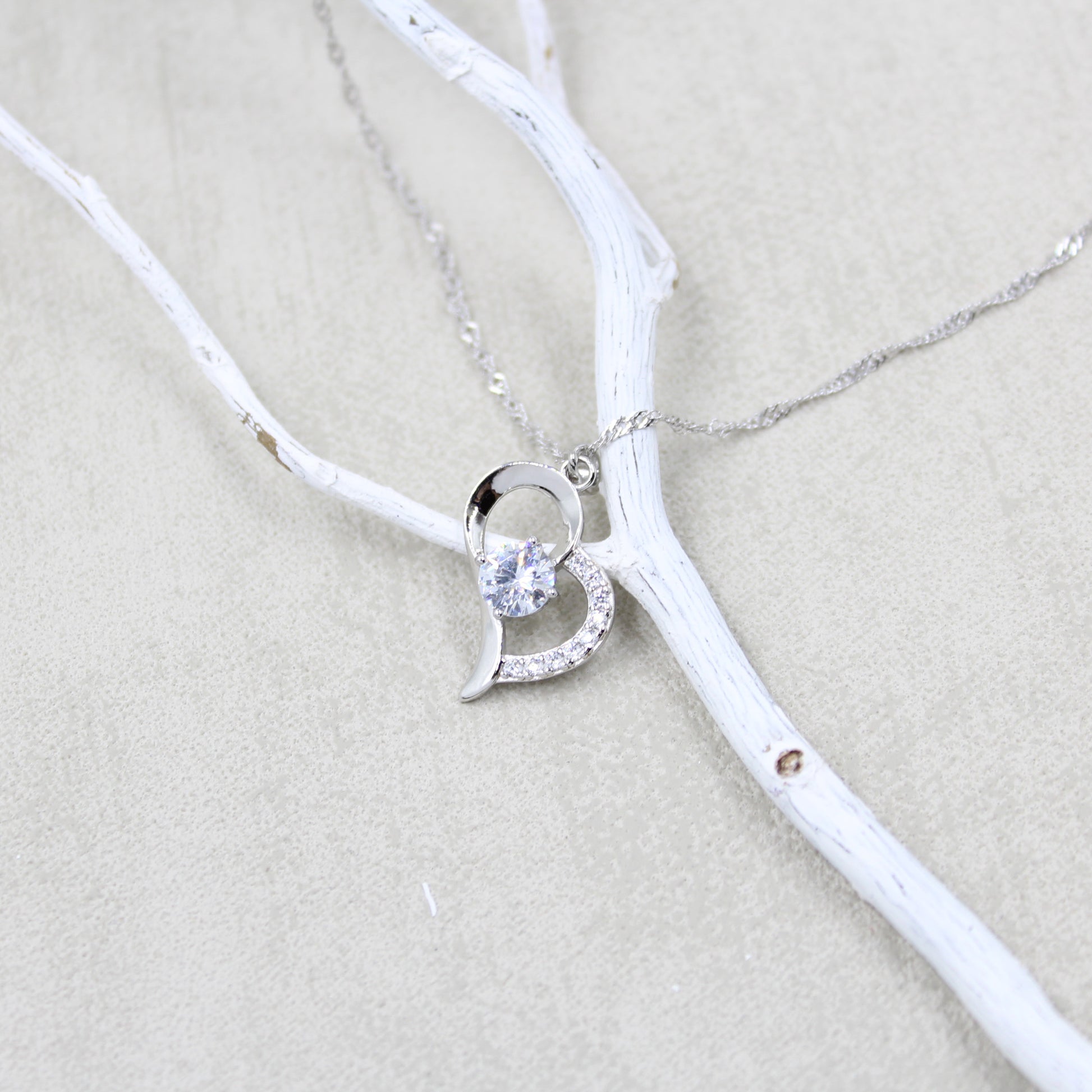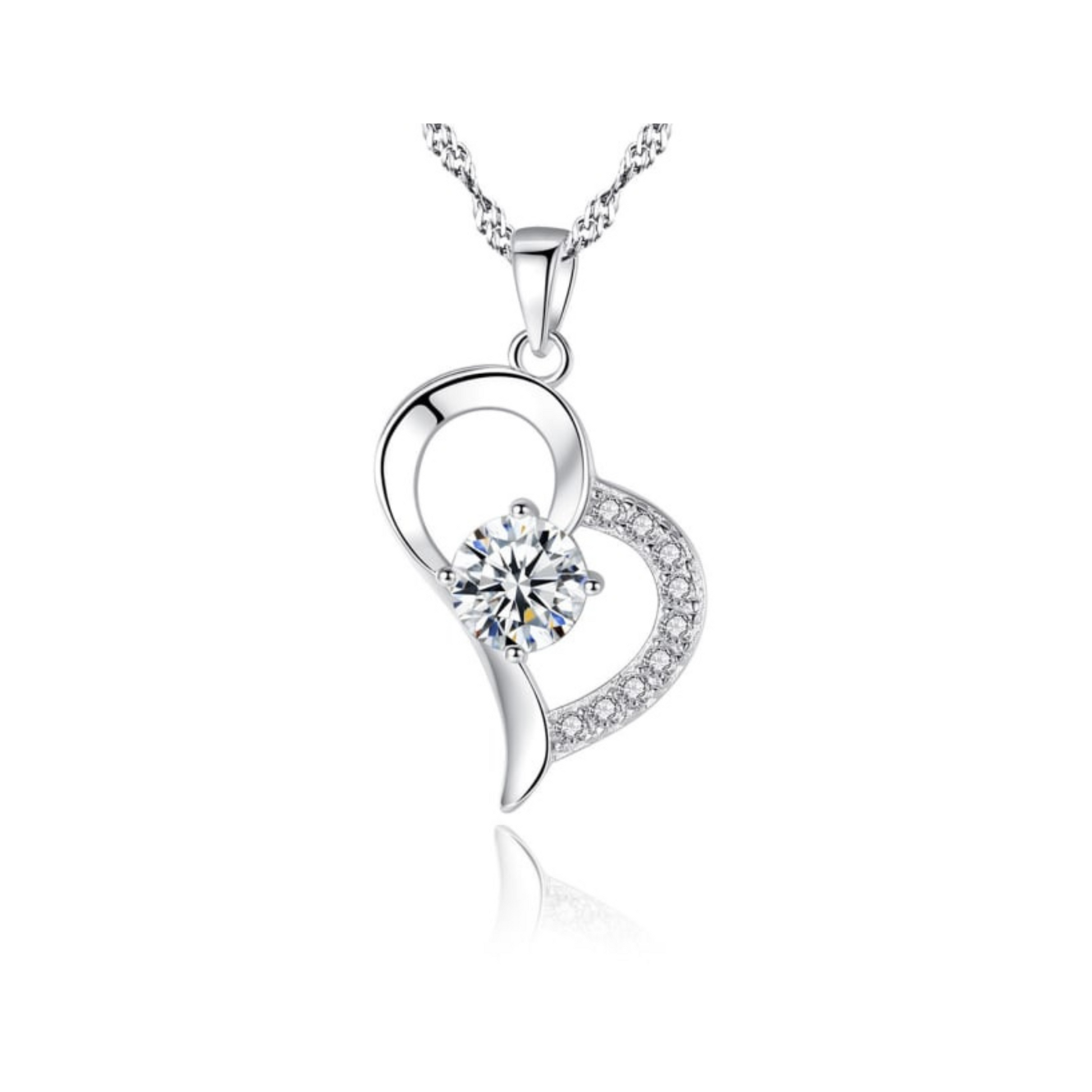 White Gold Plated - Cubic Zirconia - Simplistic Heart Necklace TE11
