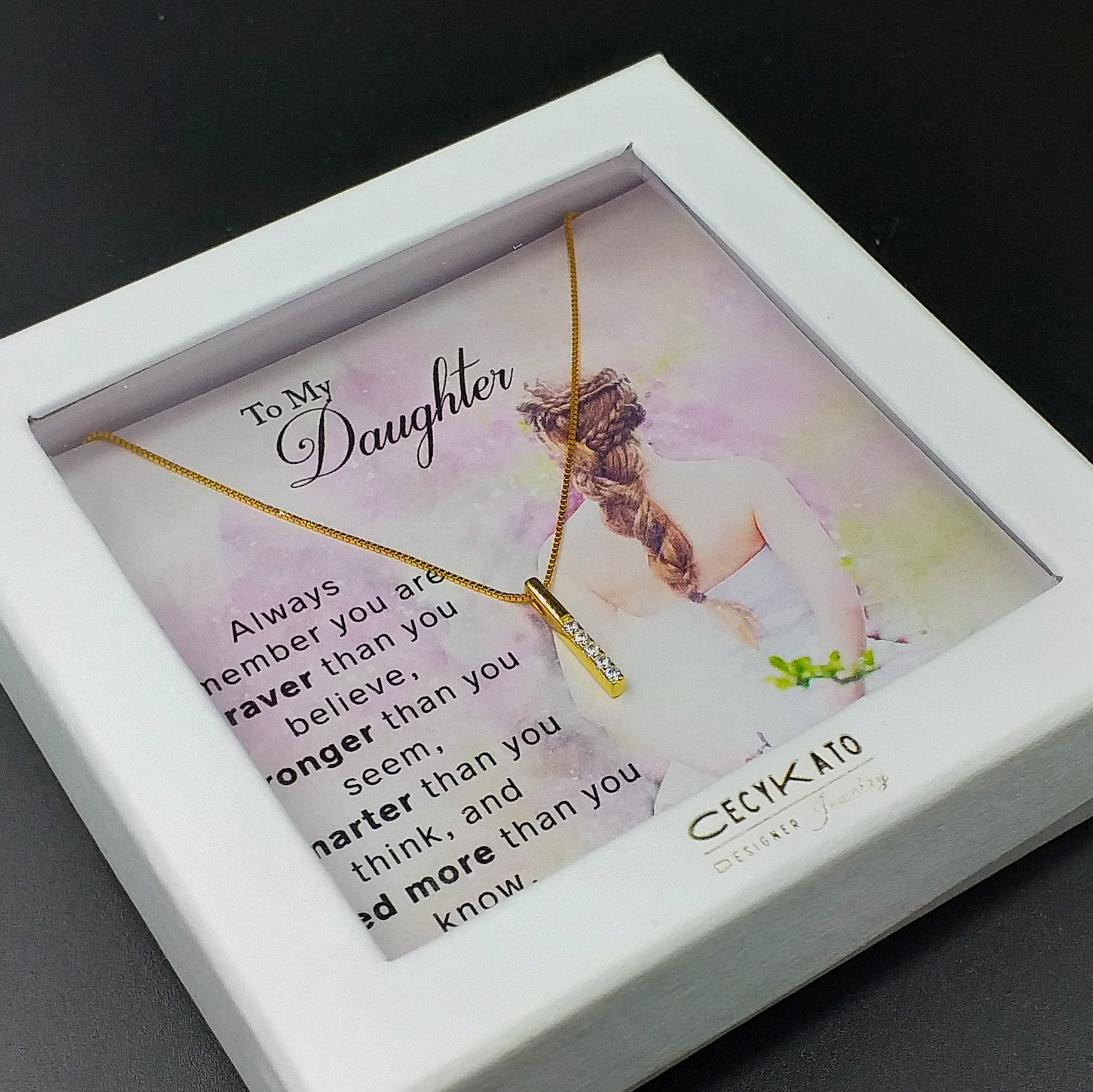 Inspirational / Daughter - 14K Gold Plated Rhinestone Geometric Minimalist Necklace TE4WW37D