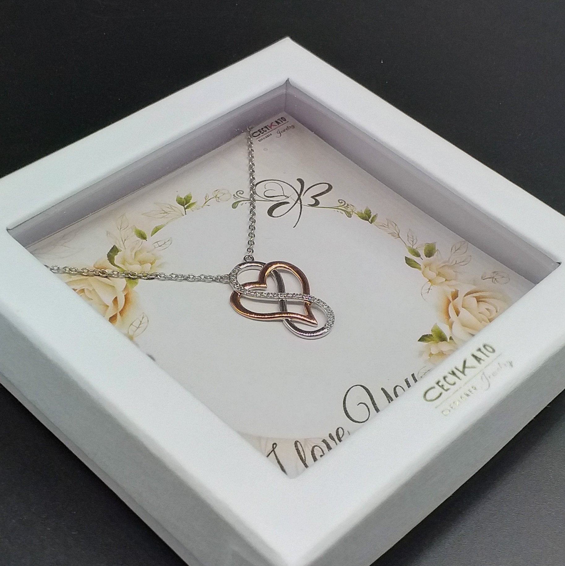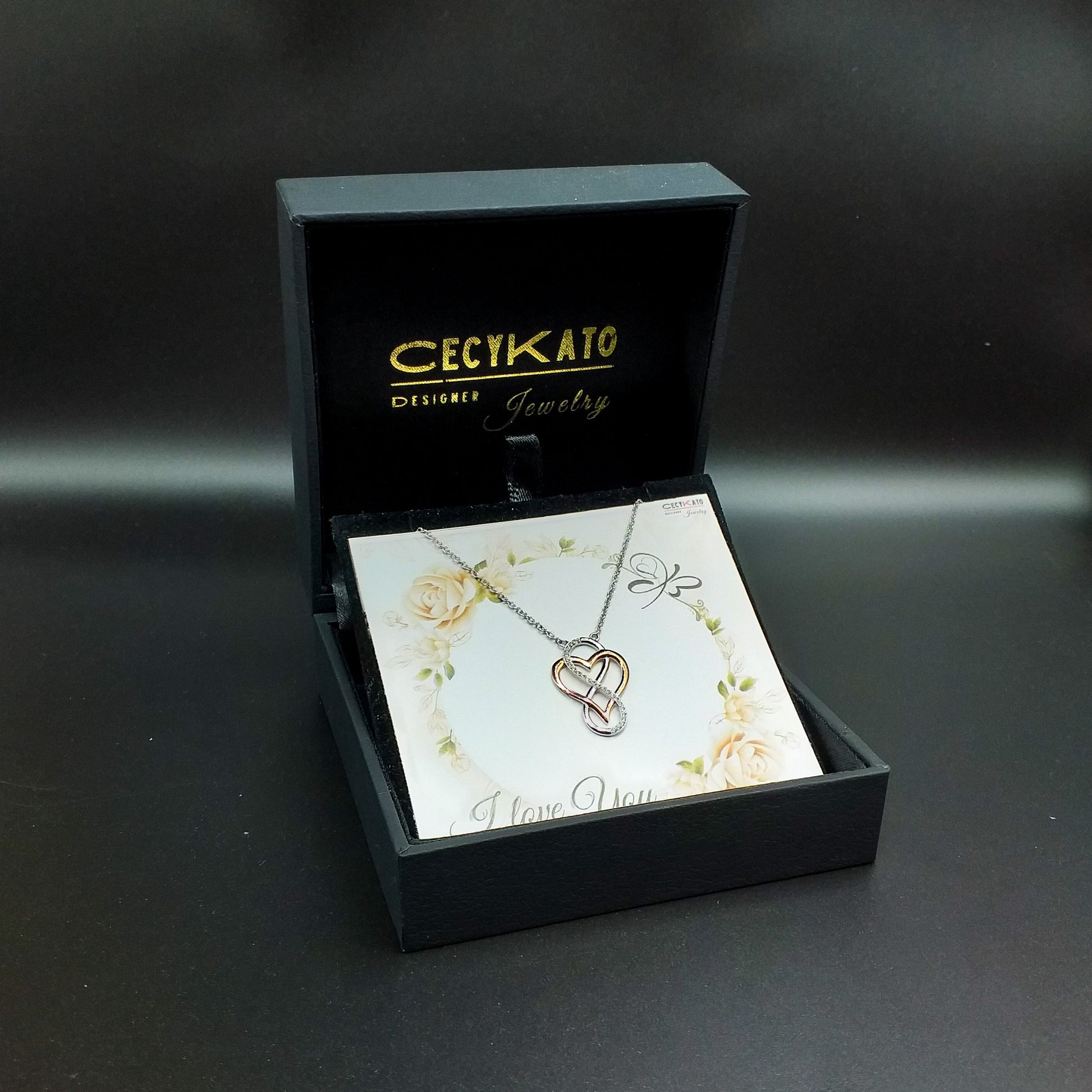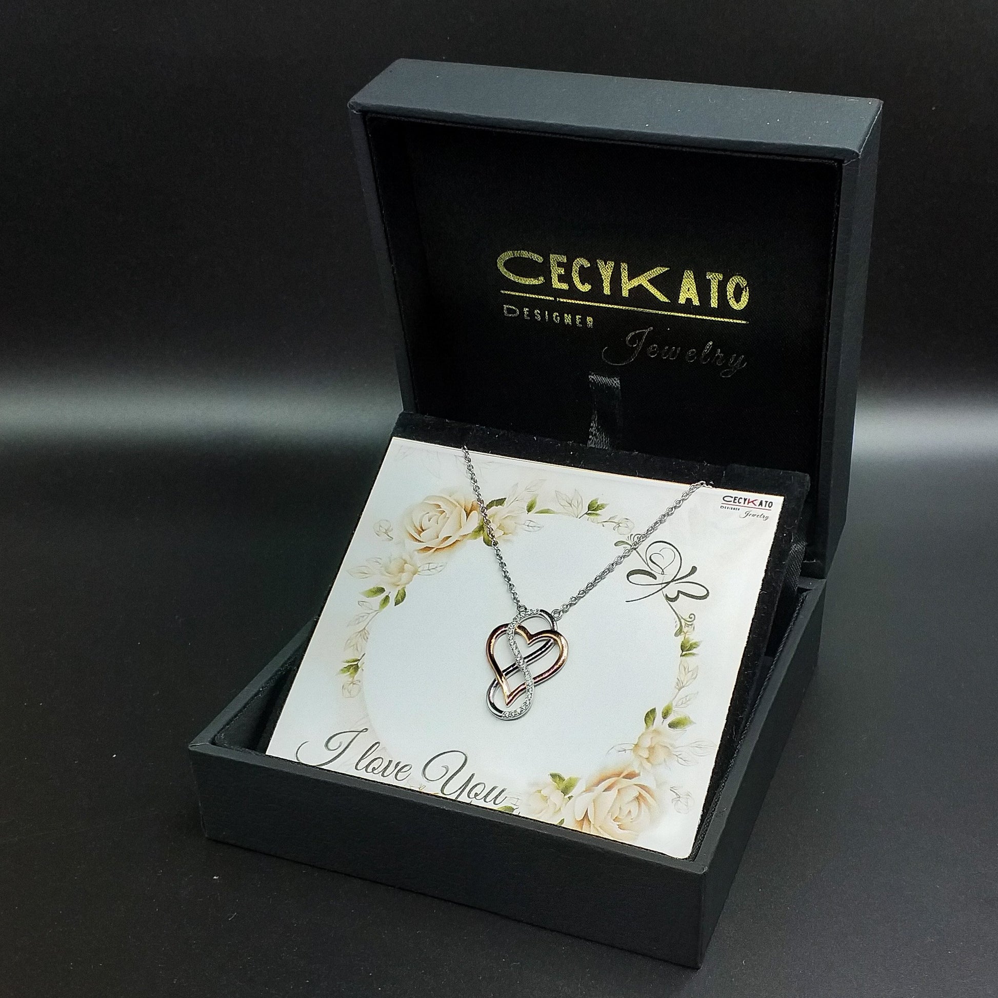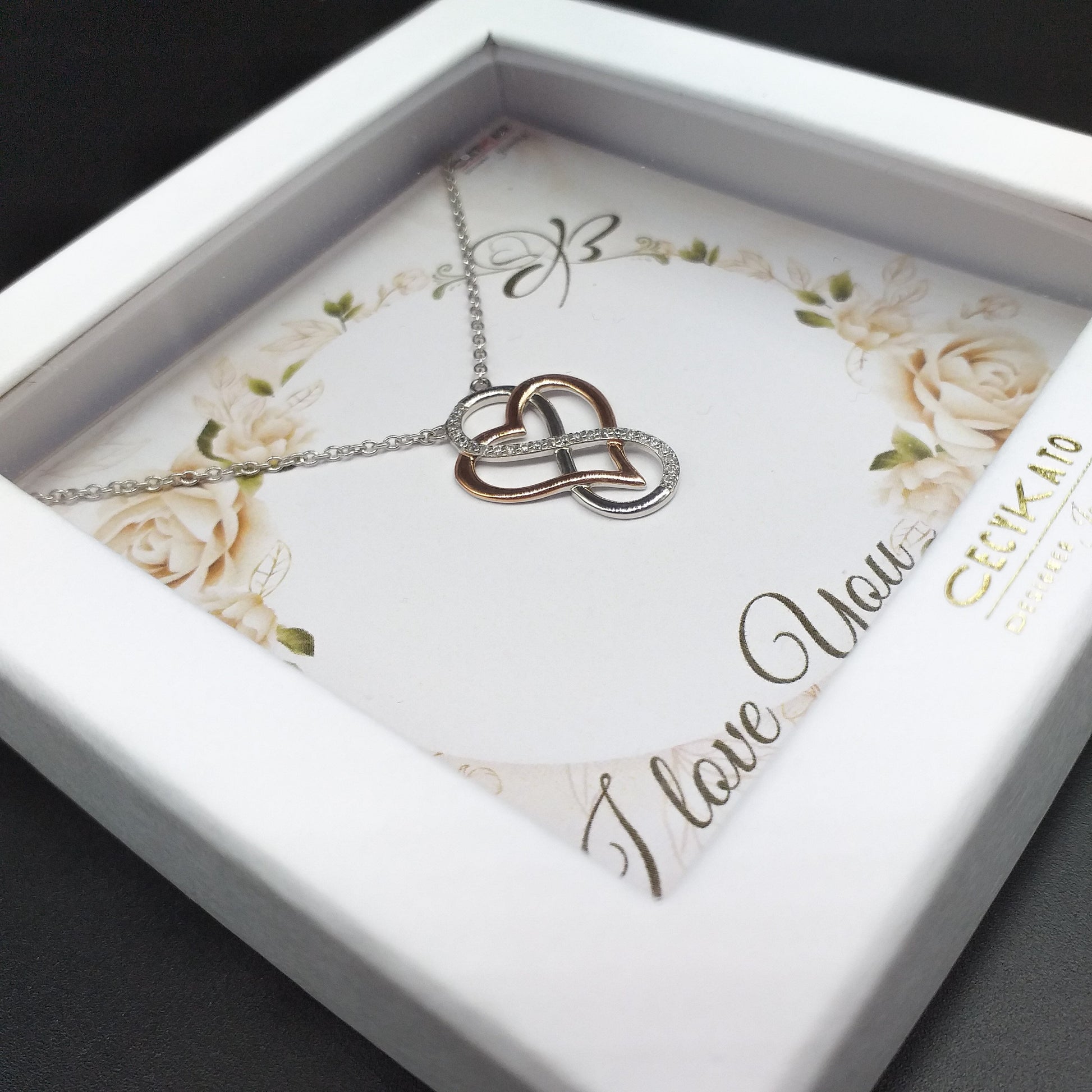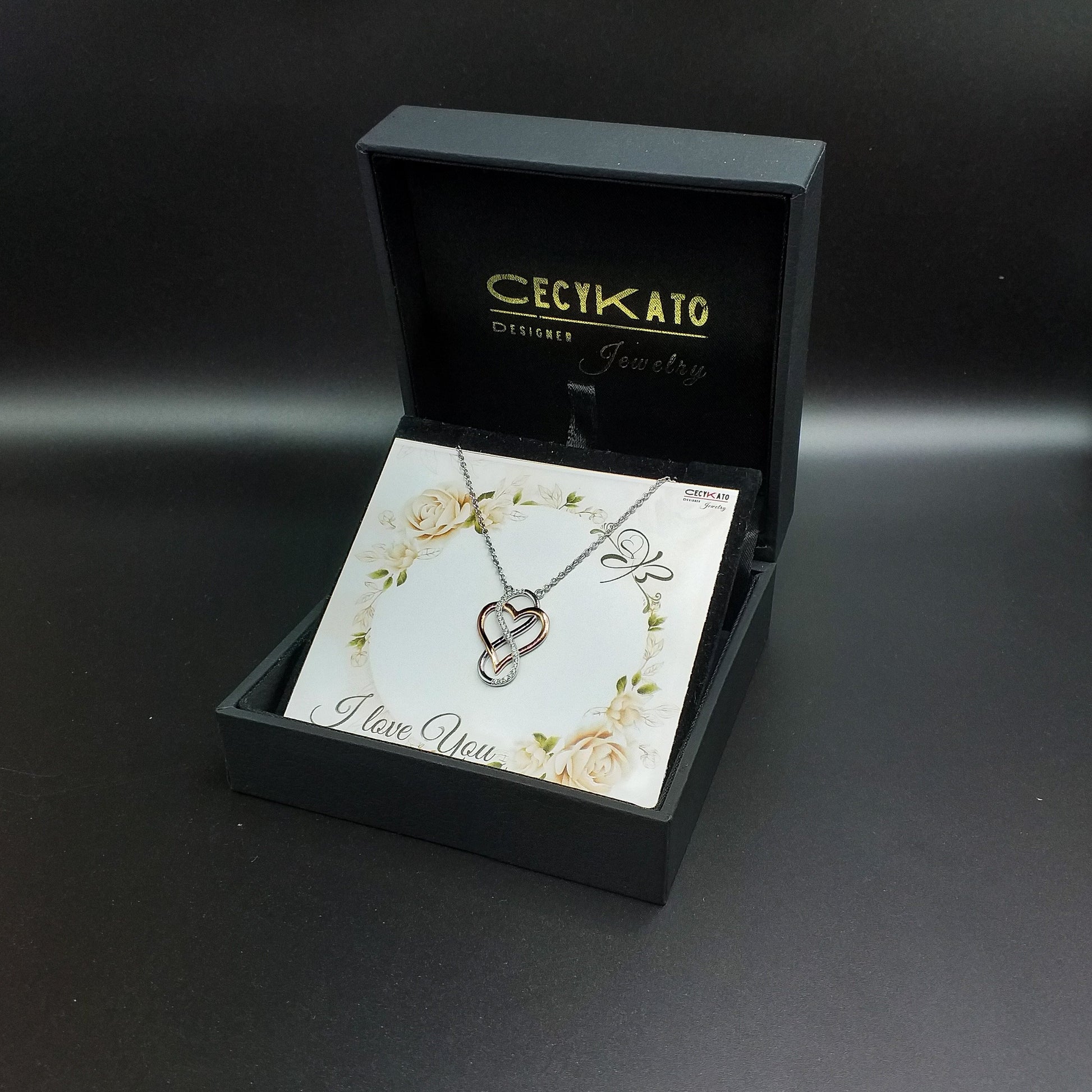 I Love You Rose Circle- Rhodium Plated Sterling Silver Necklace, Rose-Gold Heart and Infinity Symbol LL516LY