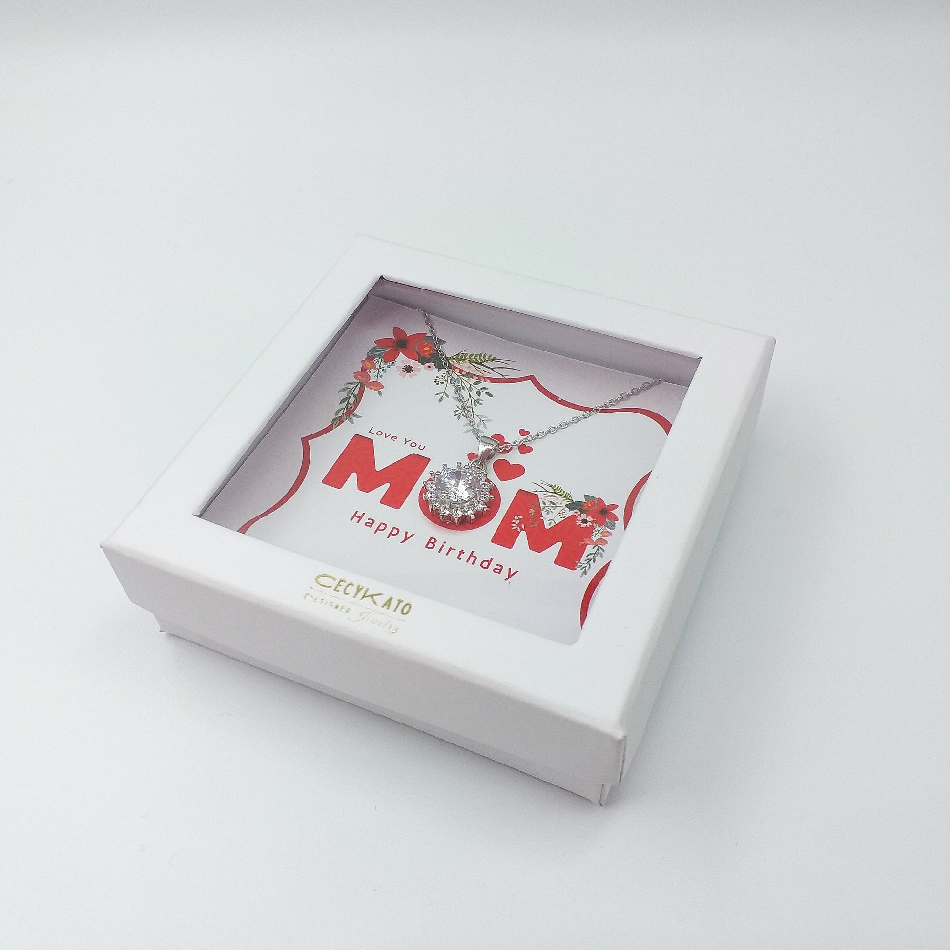 Birthday / Mom - 925 Sterling Silver Cubic Zirconia Round Minimalist Necklace TE283HBM