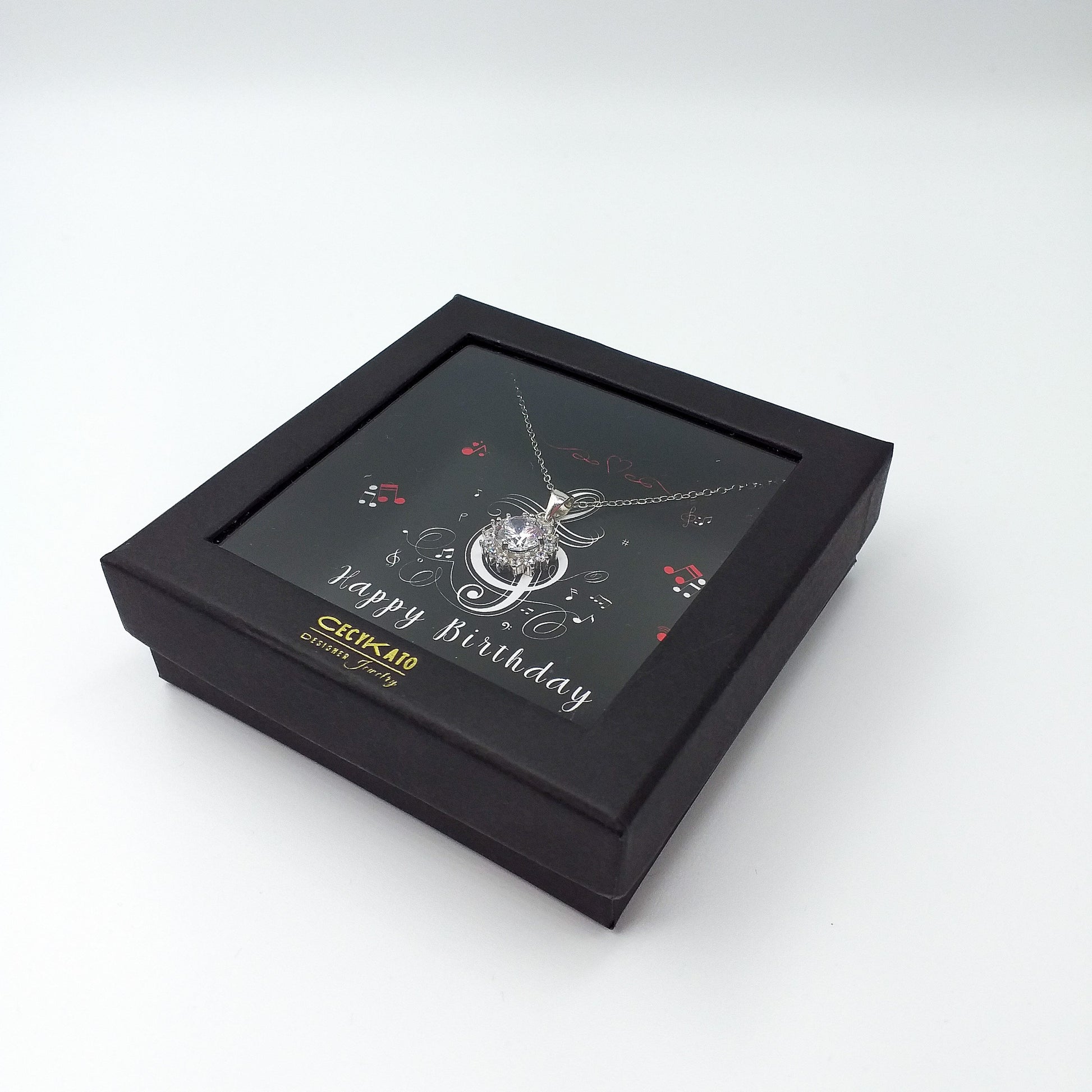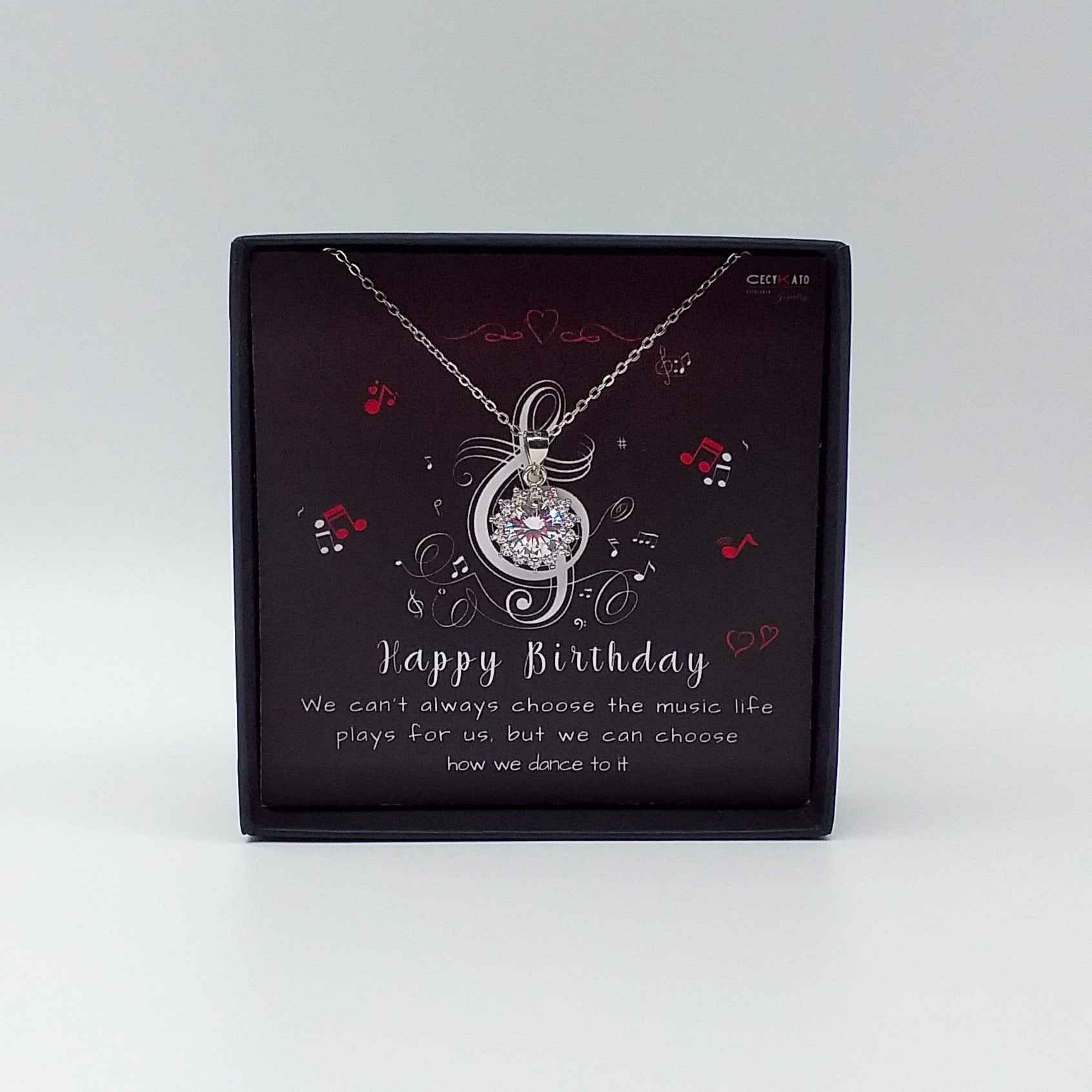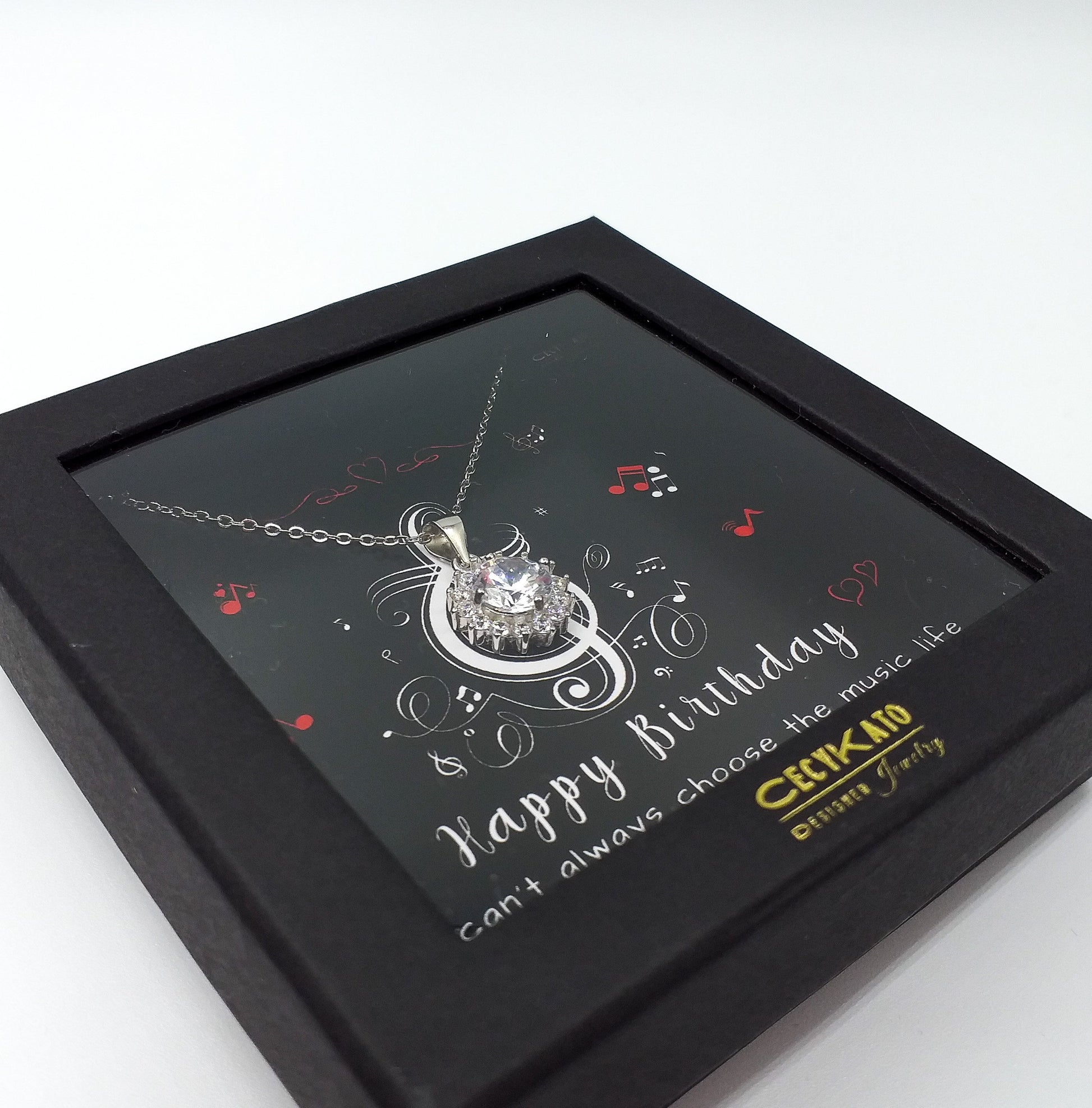 Birthday / Music - 925 Sterling Silver Cubic Zirconia Round Minimalist Necklace TE2BW84HBMS