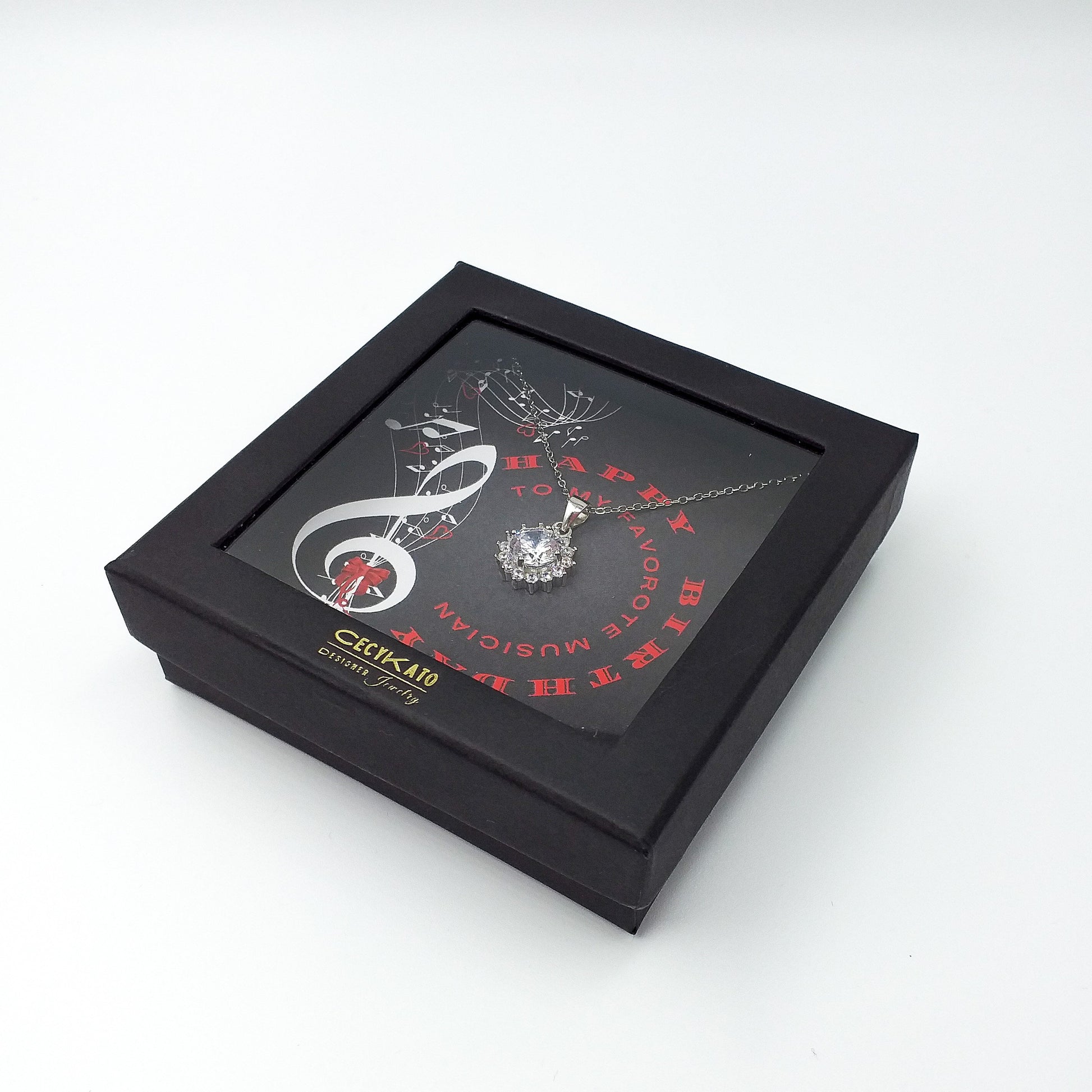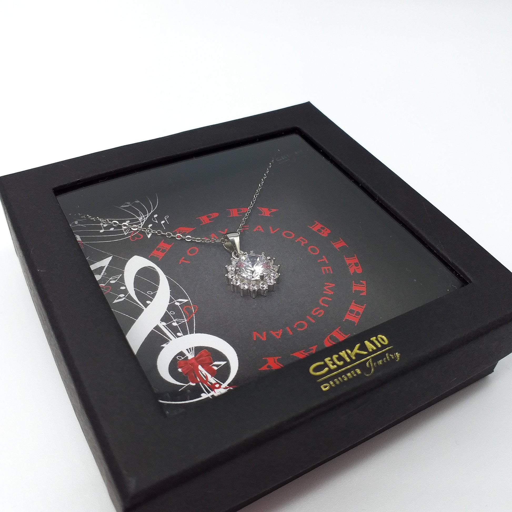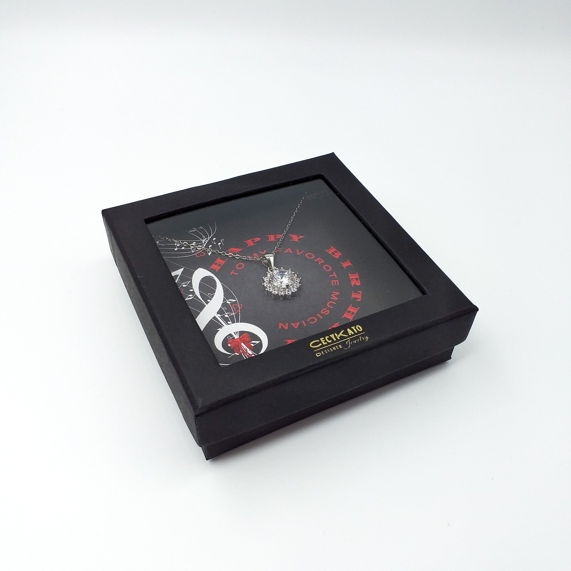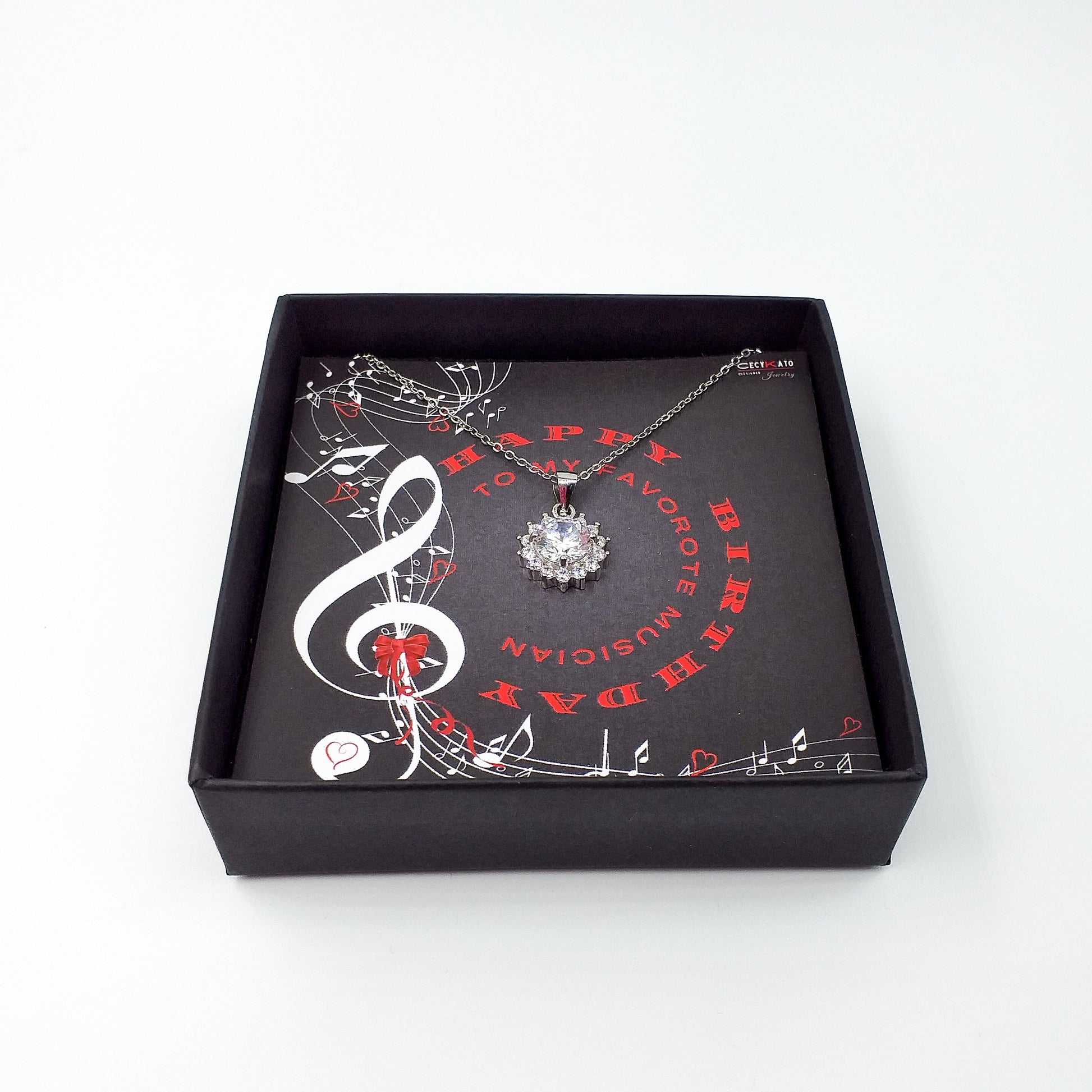 Birthday / Music - 925 Sterling Silver Cubic Zirconia Round Minimalist Necklace TE2BW85HBMS