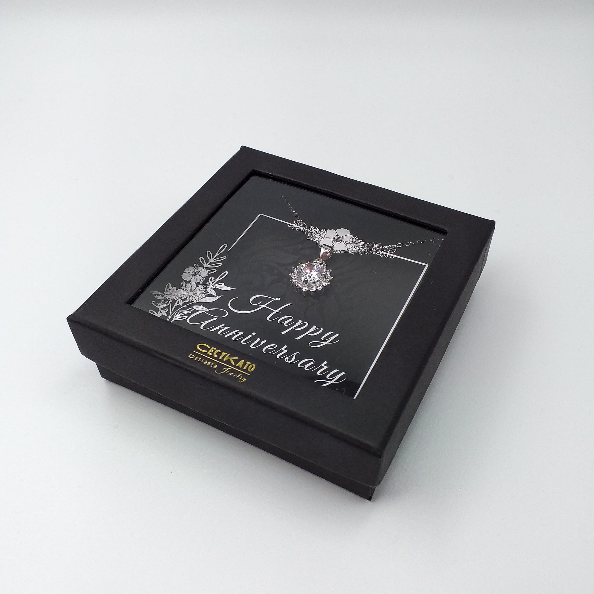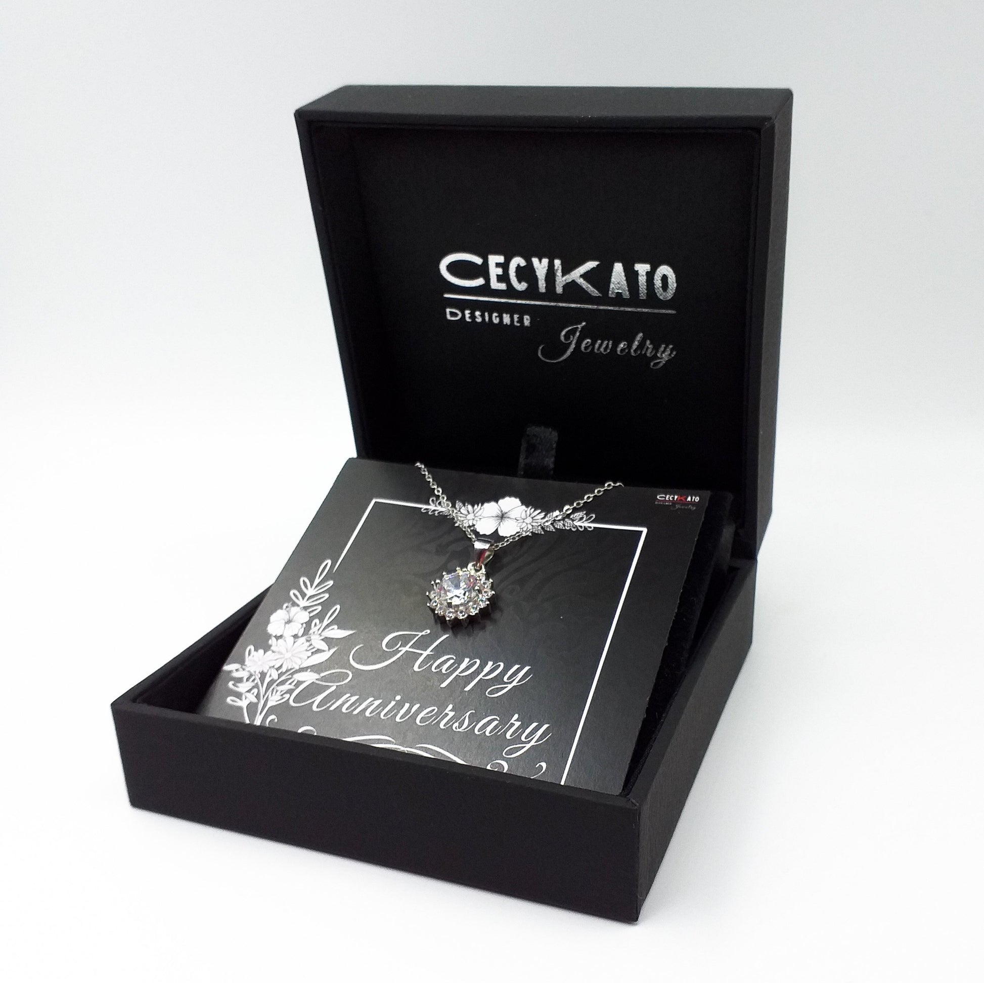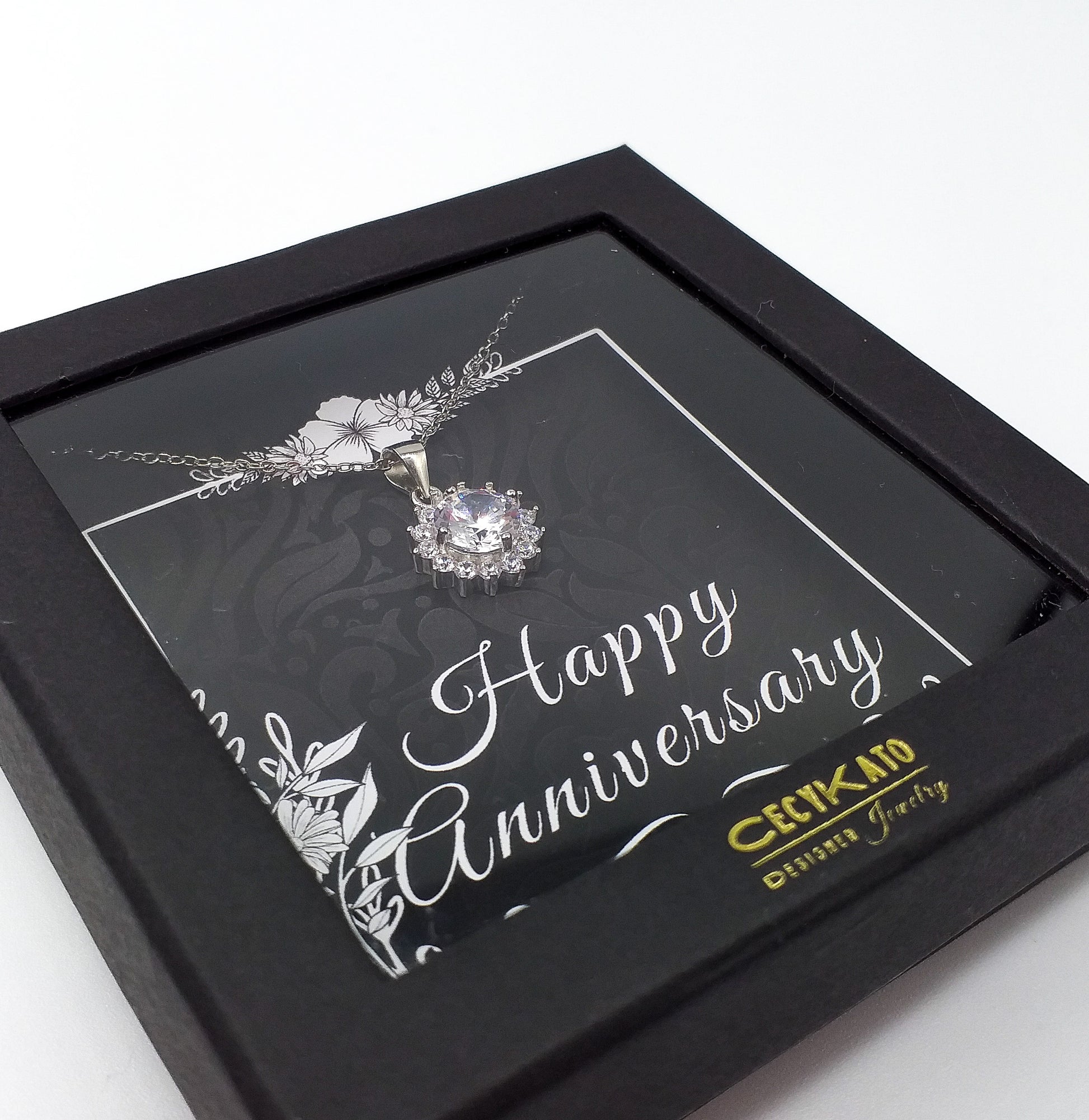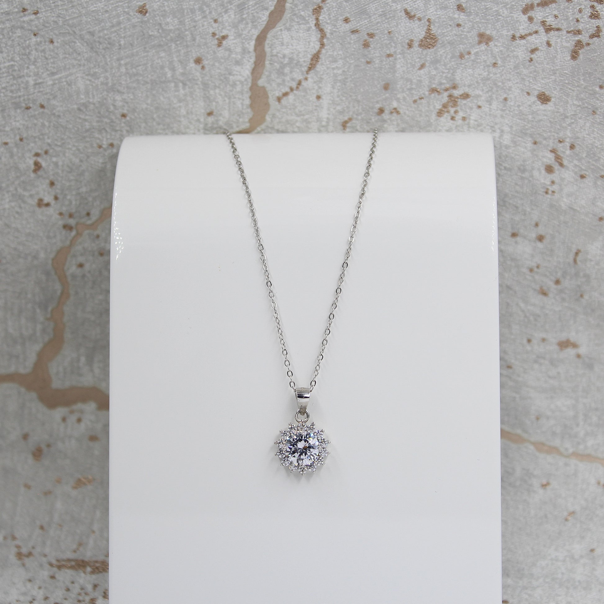 Anniversary - 925 Sterling Silver Cubic Zirconia Round Minimalist Necklace - TE265A