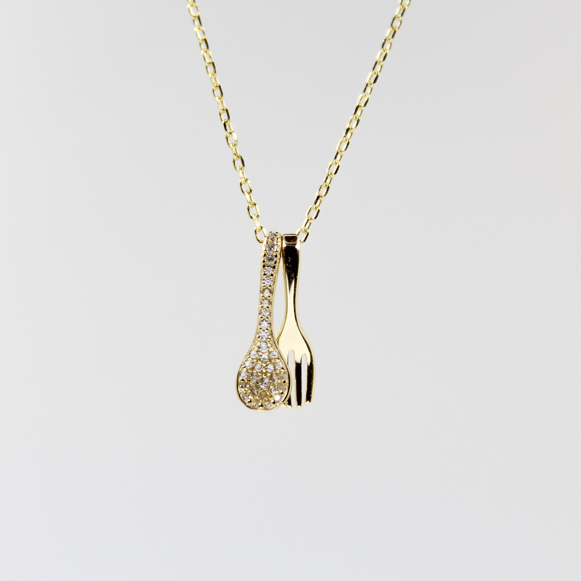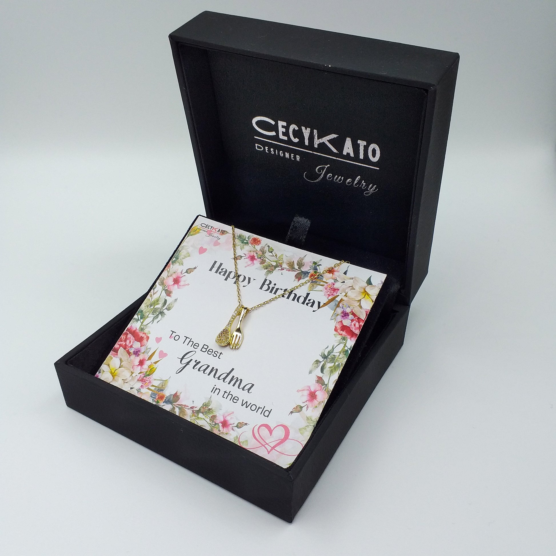 Birthday / Grandma - 925 Sterling Silver With Cubic Zirconia Spoon & Fork : TE9L38HBGM