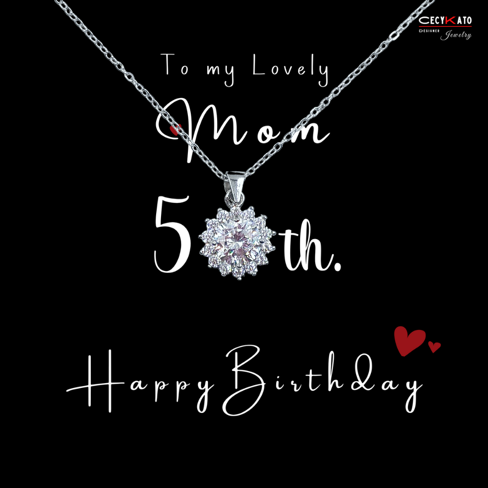 Birthday / Mom 50 -925 Sterling Silver Cubic Zirconia Round Minimalist Necklace TE2780HBW5