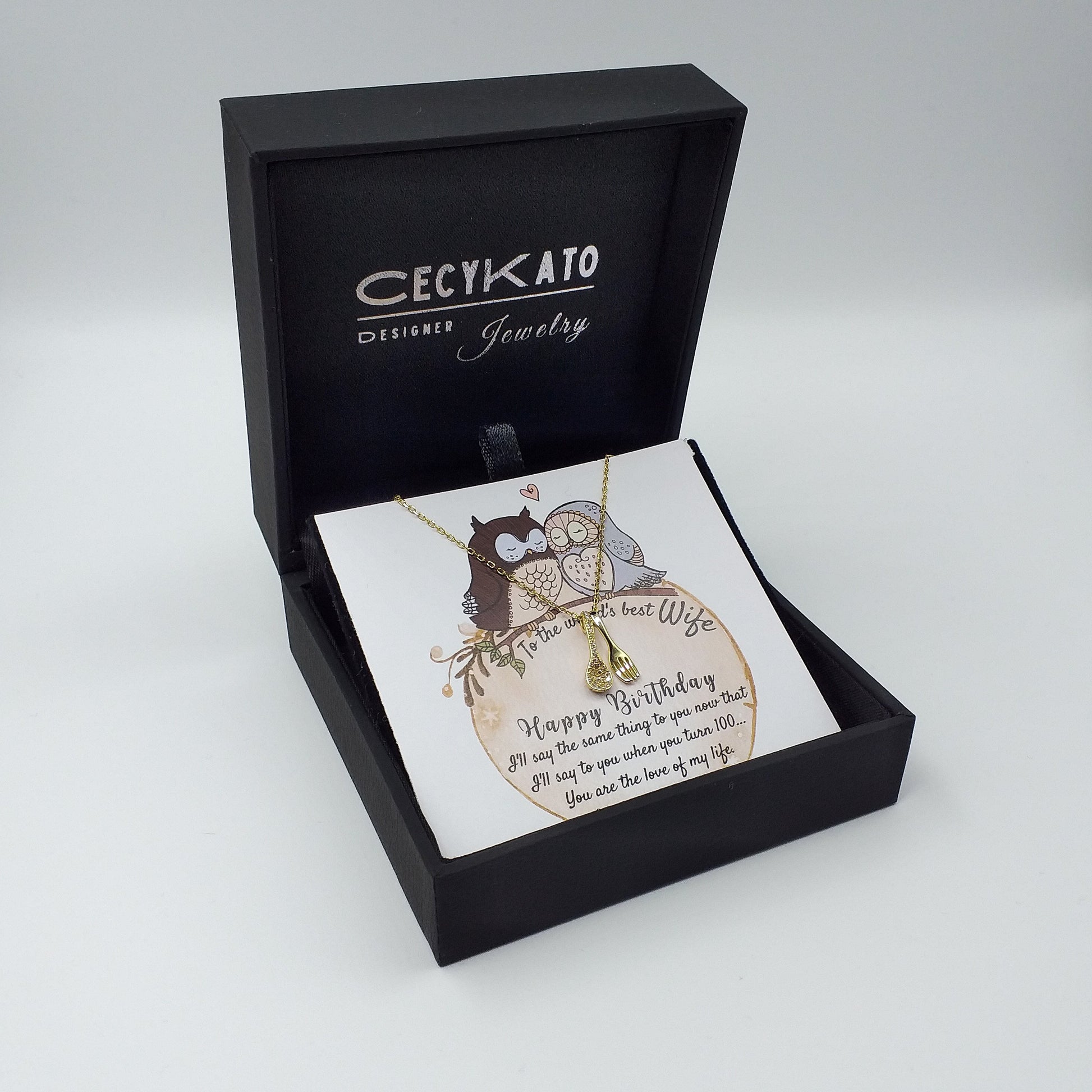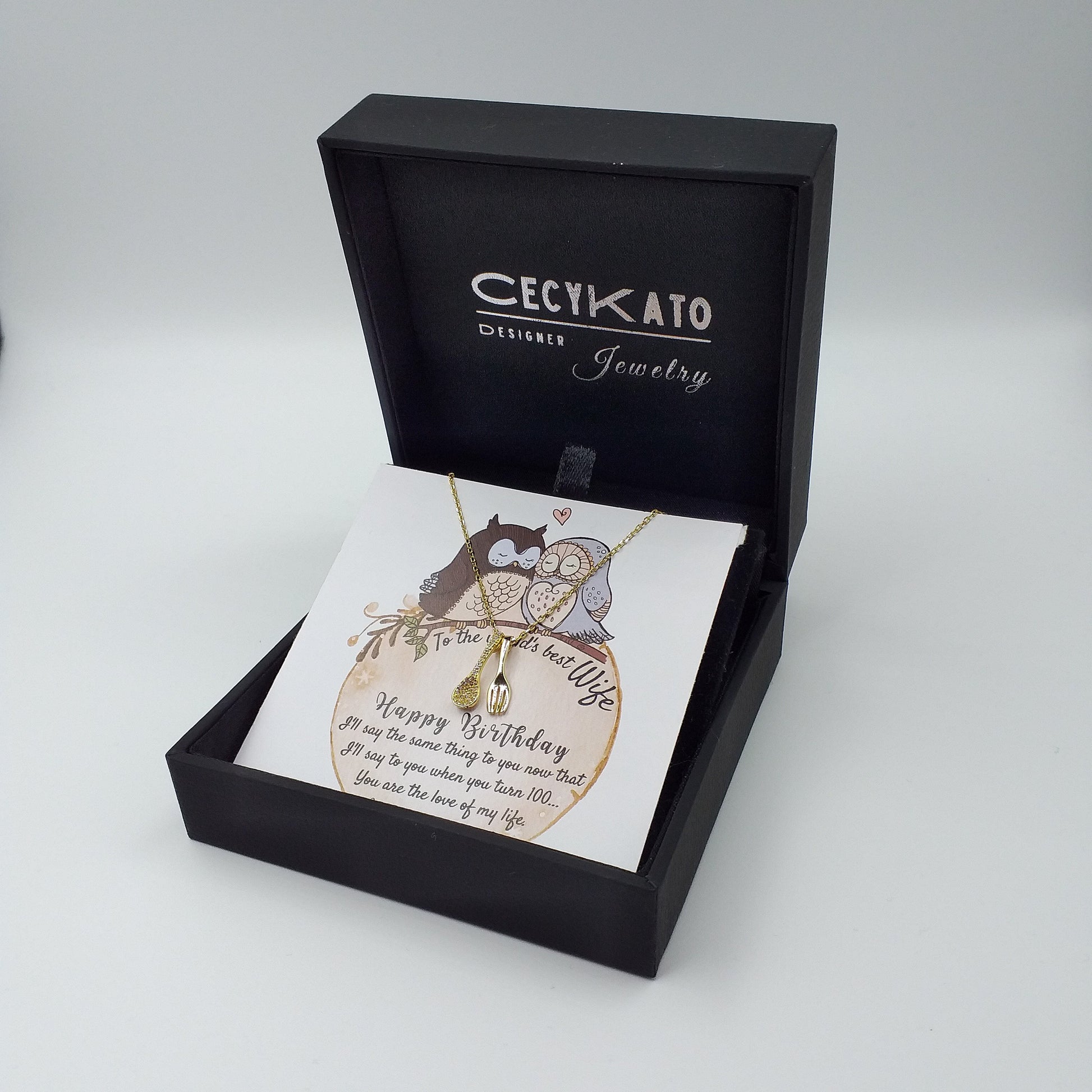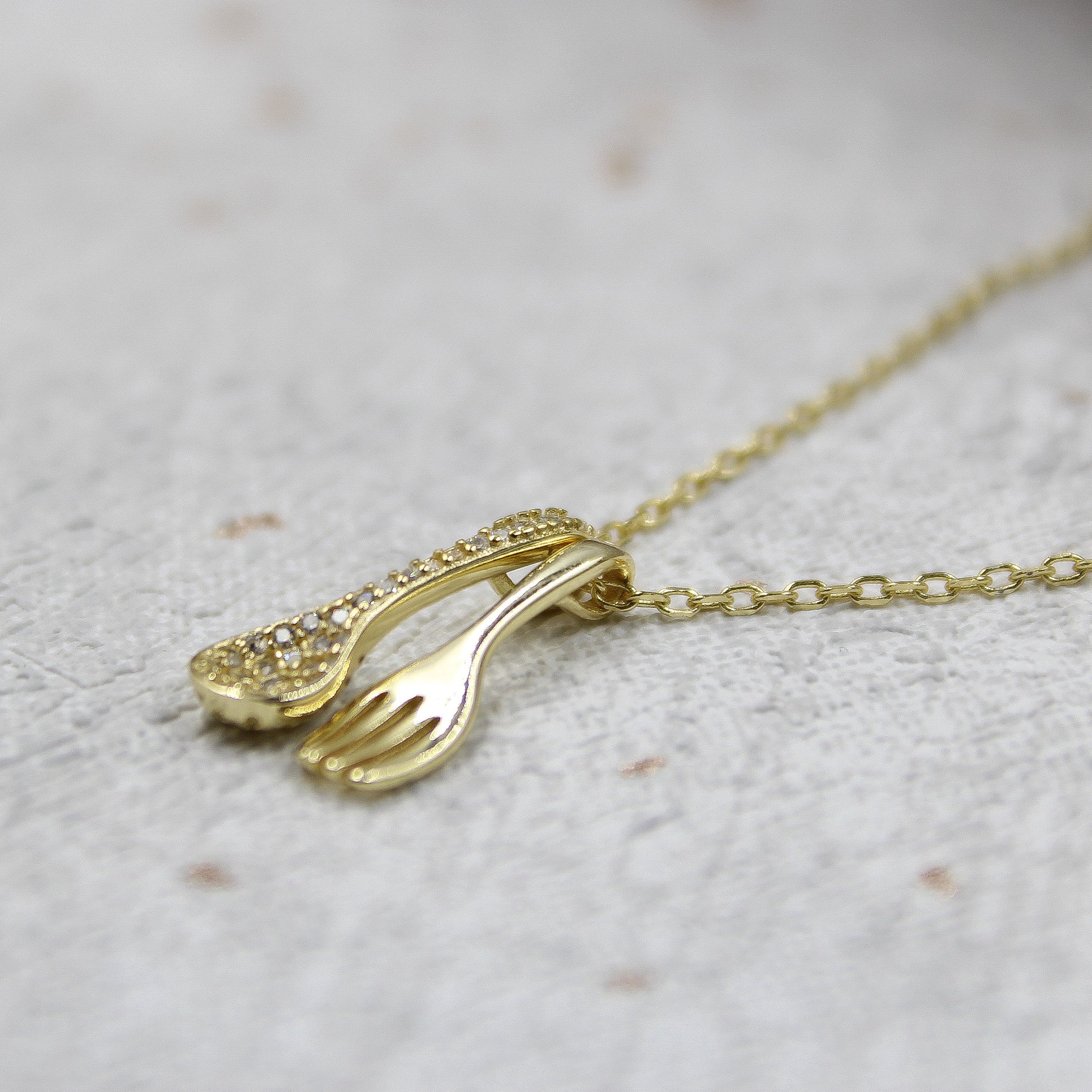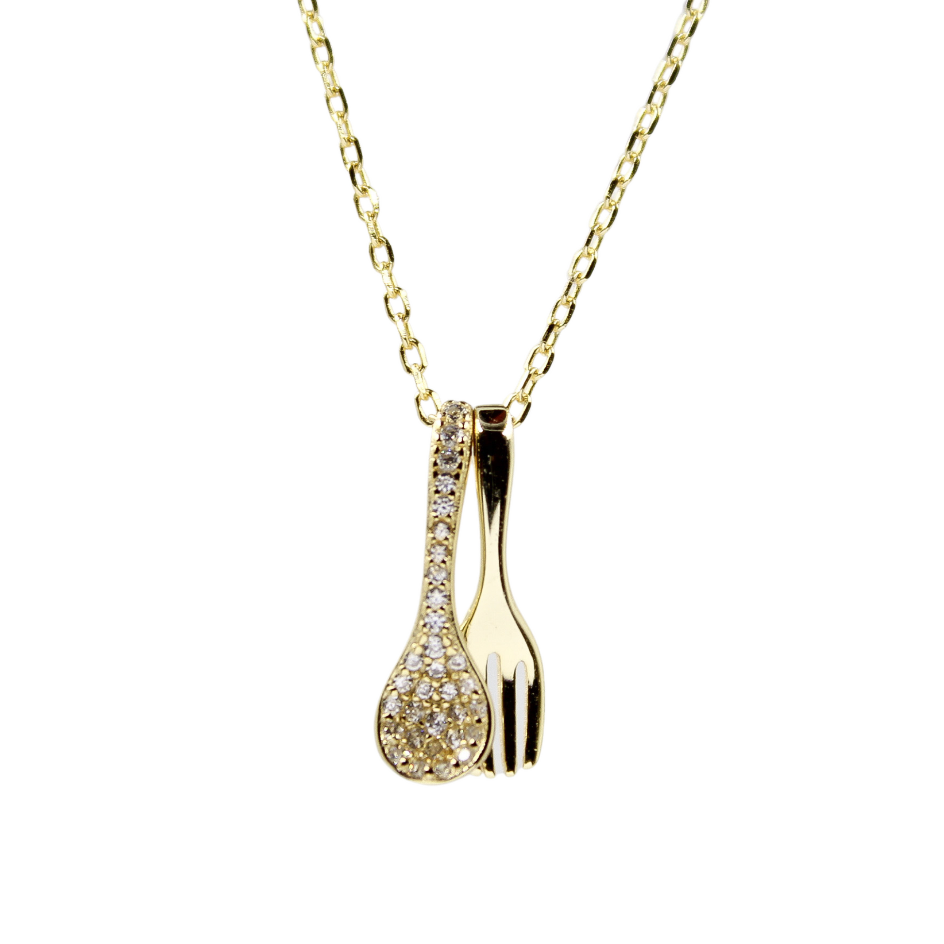 Birthday / Wife - 925 Sterling Silver/ 14k Gold Plated With Cubic Zirconia Personality Necklaces c/w Spoon & Fork 925 Sterling Silver + Cubic Zirconia TE9L27W1