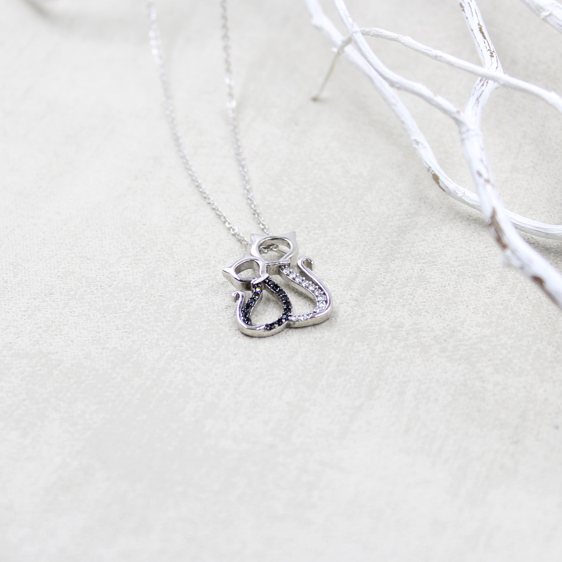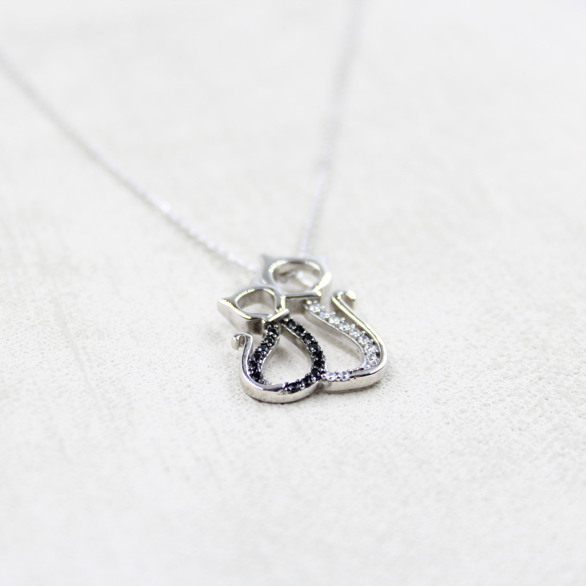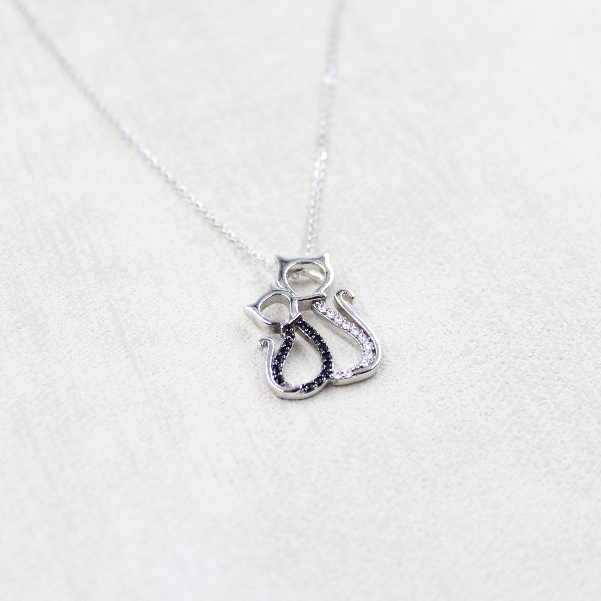 Rhodium Plated Sterling Silver - Black & White Cubic Zirconia - Necklace LL4