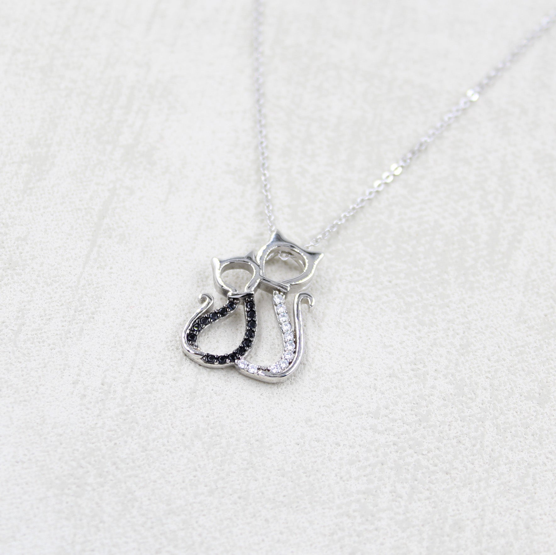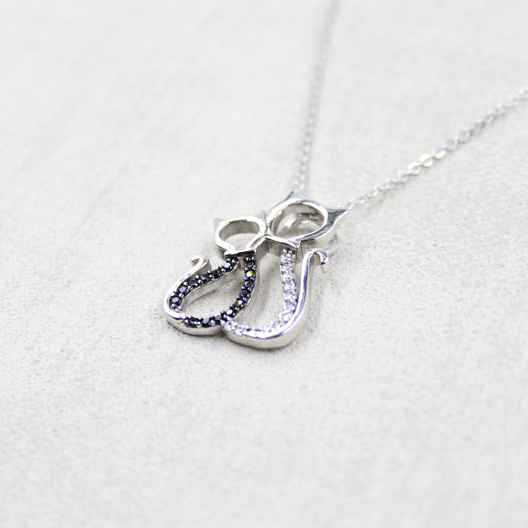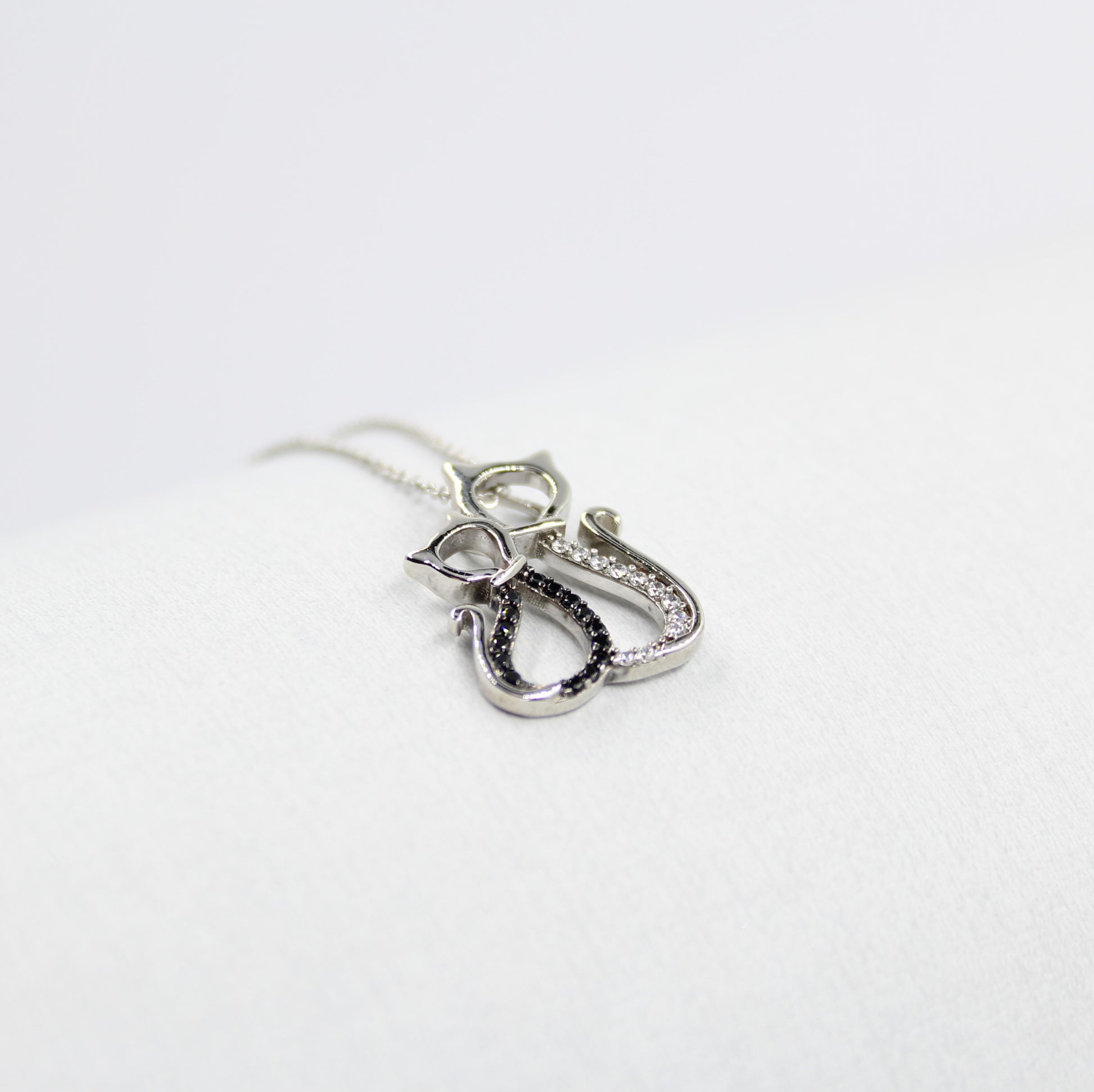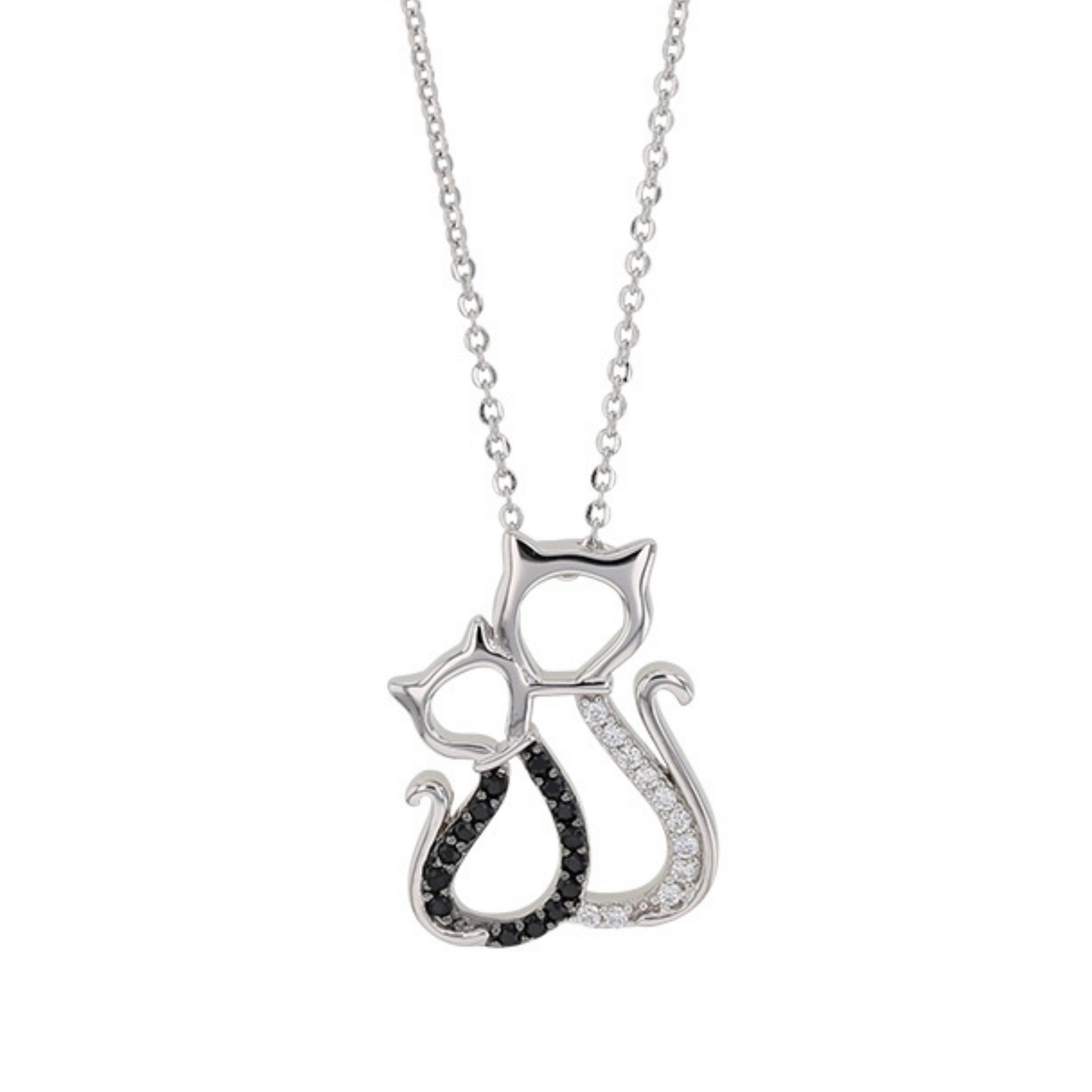 Rhodium Plated Sterling Silver - Black & White Cubic Zirconia - Necklace LL4