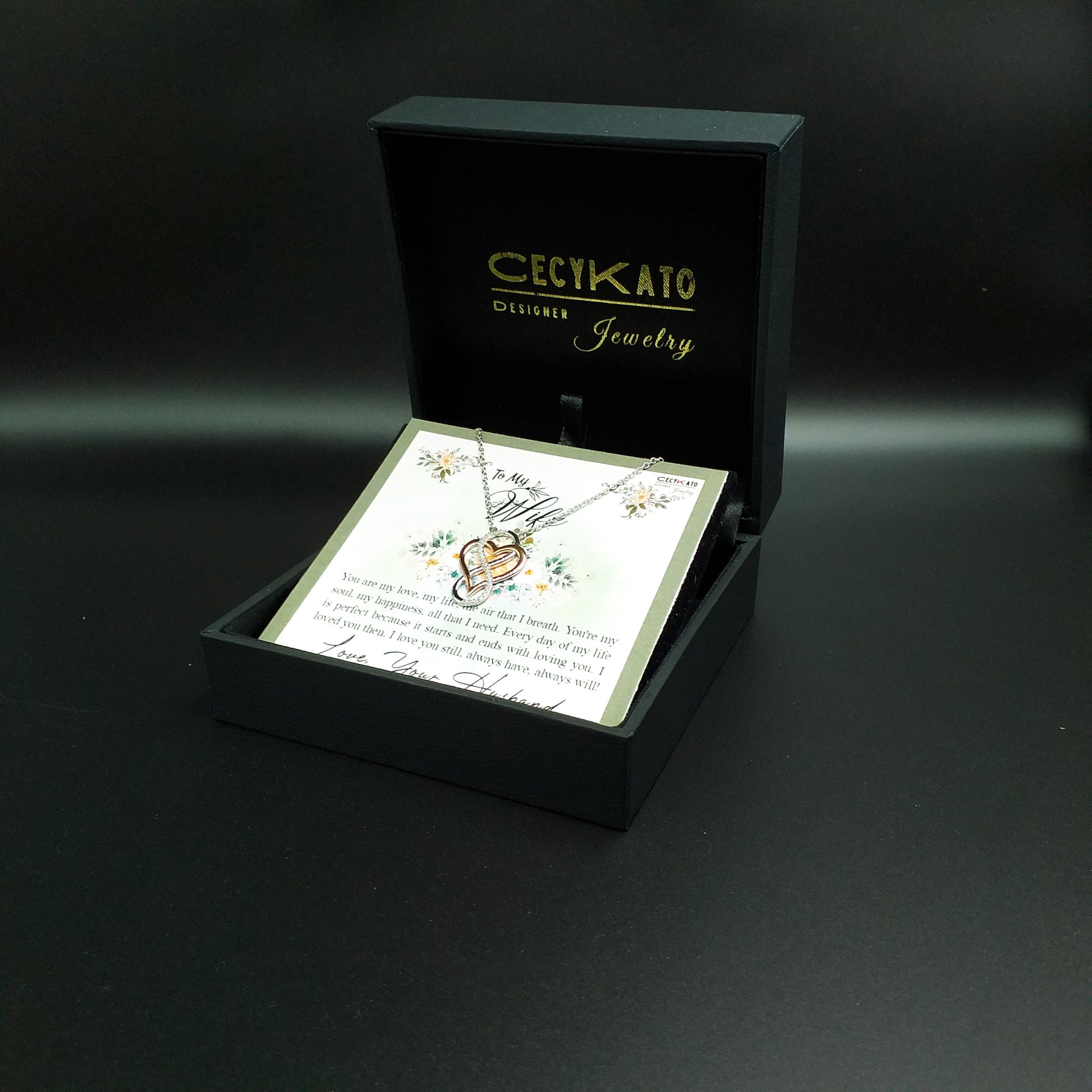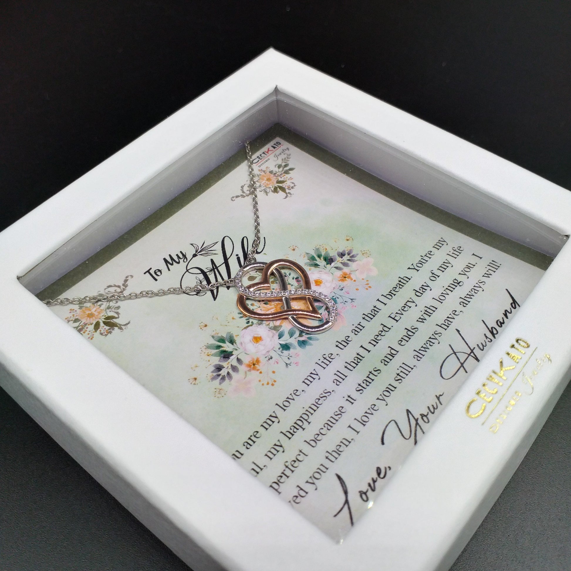 Love / Wife - Rhodium Plated Sterling Silver Necklace, Rose-Gold Heart and Infinity Symbol LL521W