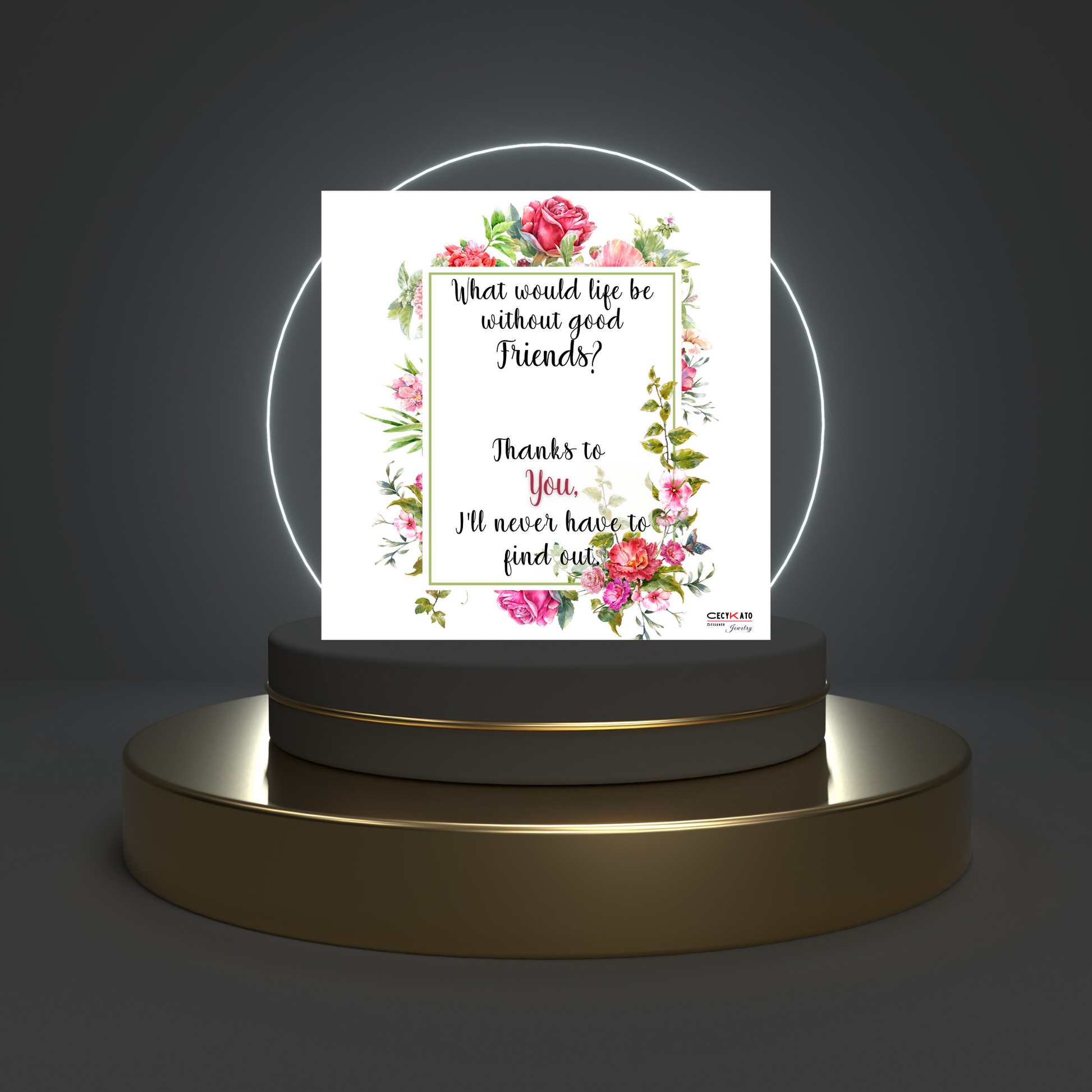 Our What Would Life Be Without Good Friends Message Card is a premium way to express your gratitude and appreciation for a special friend in your life. With an elegant design and heartfelt message, this card is the perfect way to remind your friend of the important place they hold in your heart.