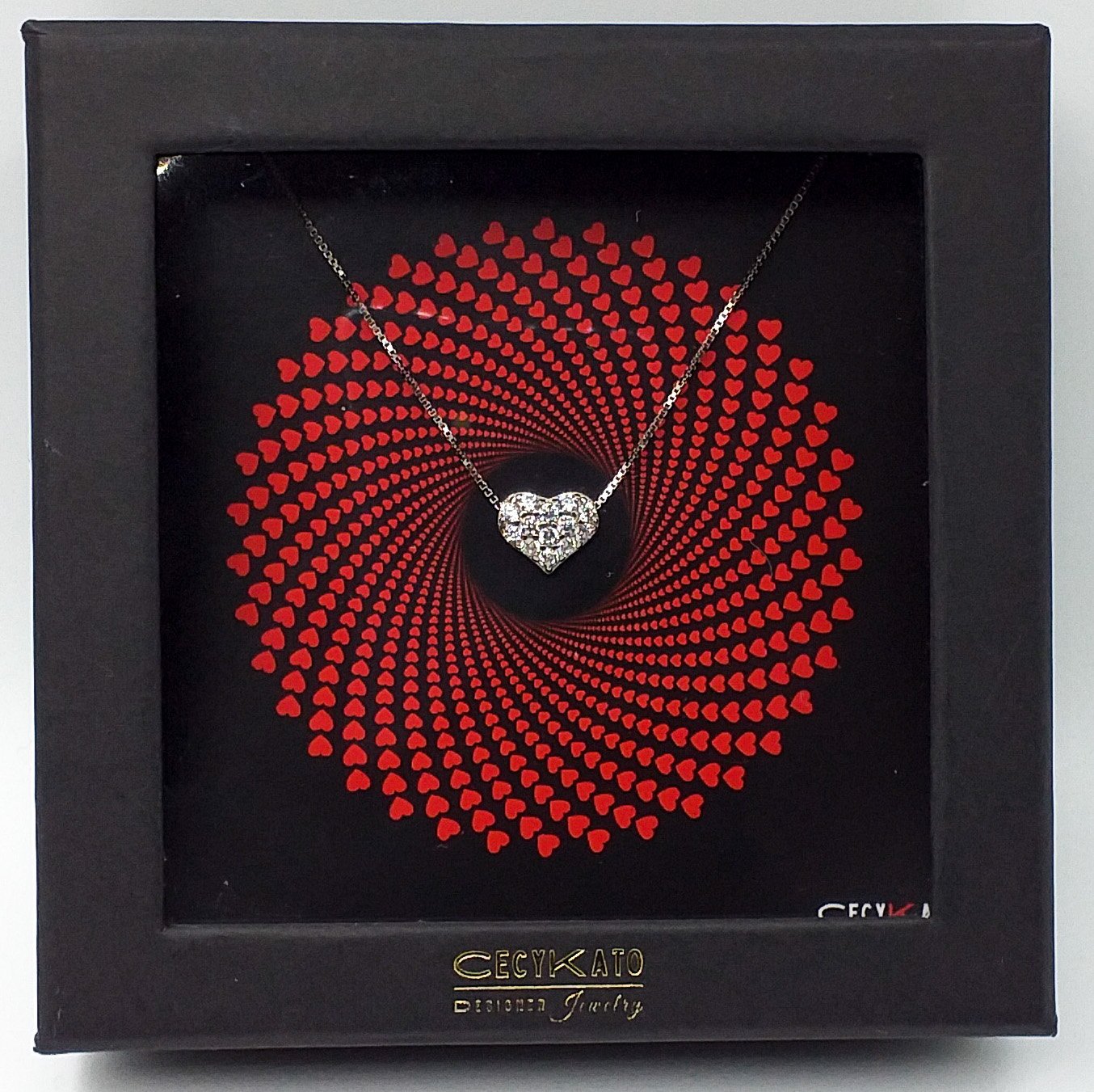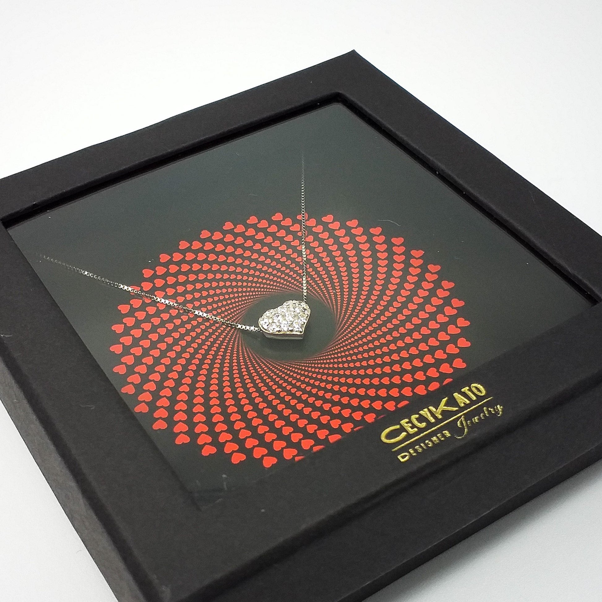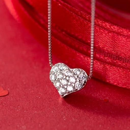 Love/ Hearts / 925 Sterling Silver Cubic Zirconia White Heart Necklace: TE158