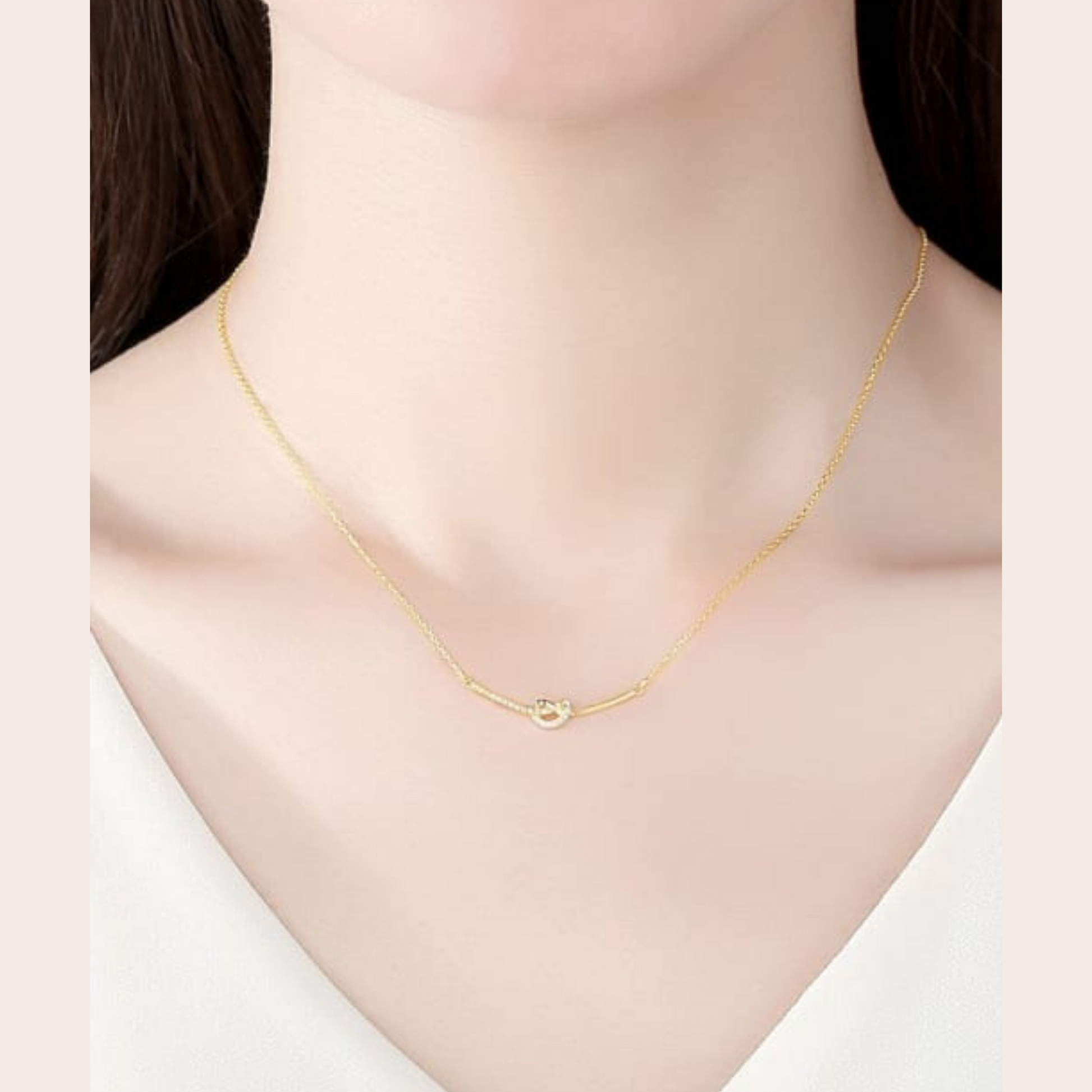 Flower / Daughter - 14K Gold Plated Rhinestone Geometric Minimalist Necklace TE639D