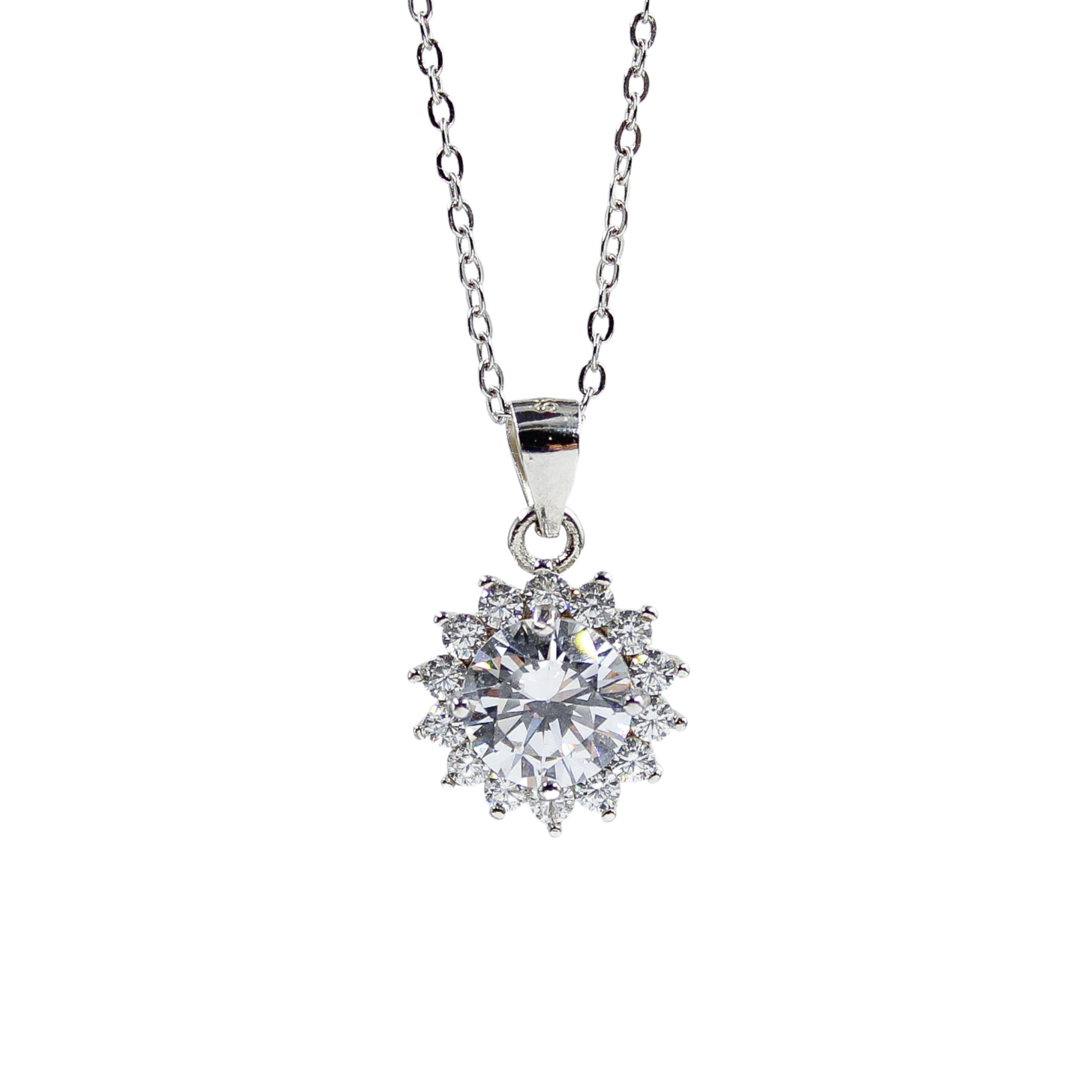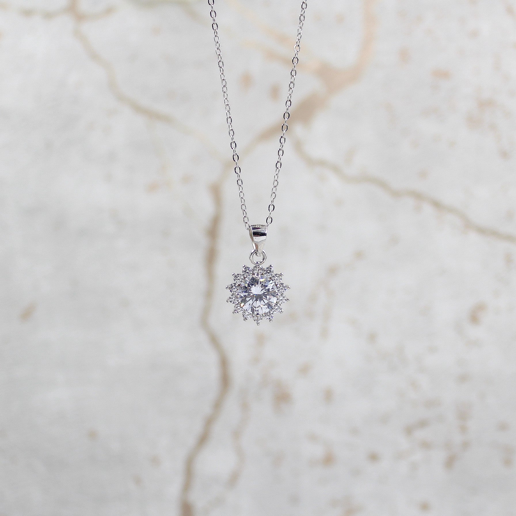 I love Love - 925 Sterling Silver Cubic Zirconia Round Minimalist Necklace TE274LY