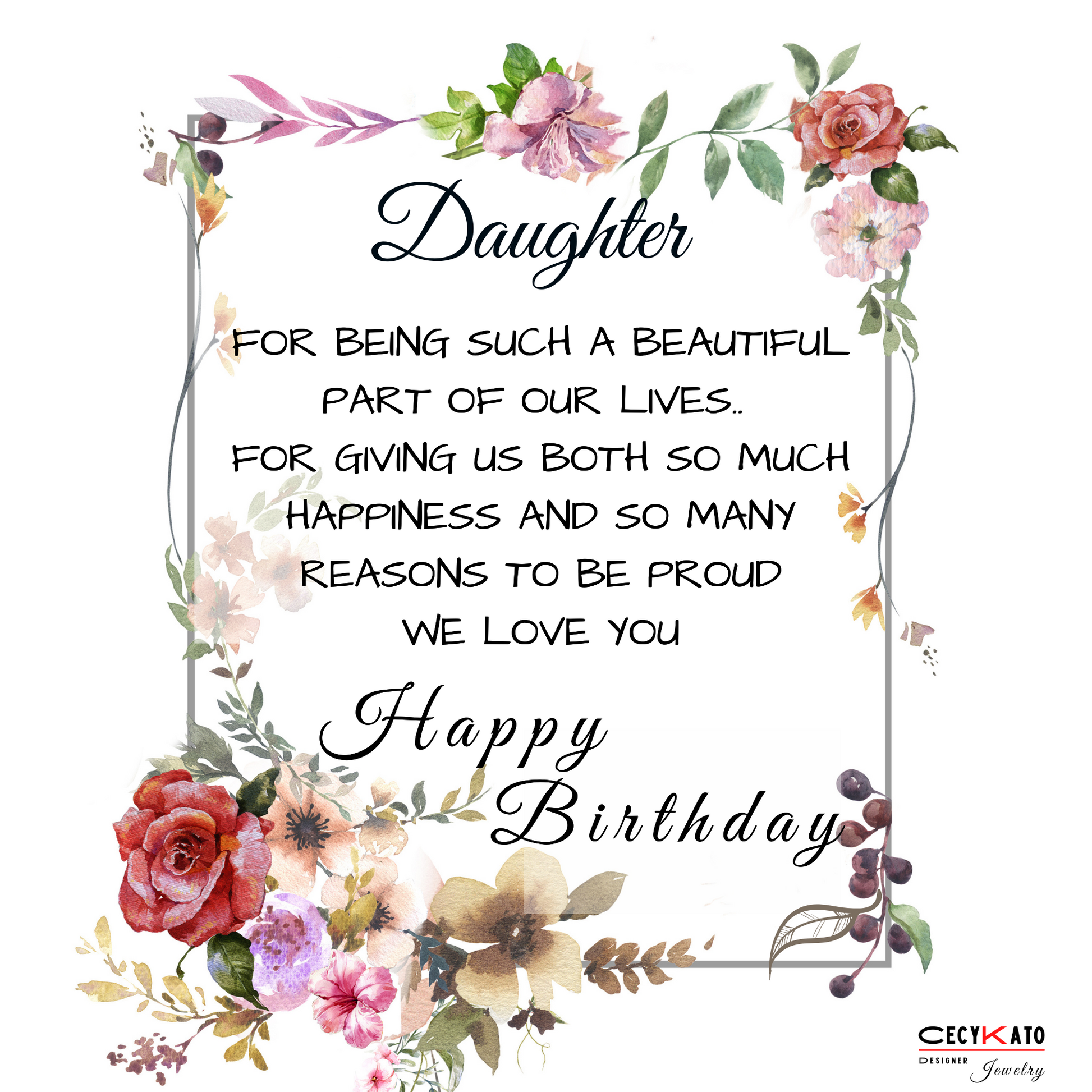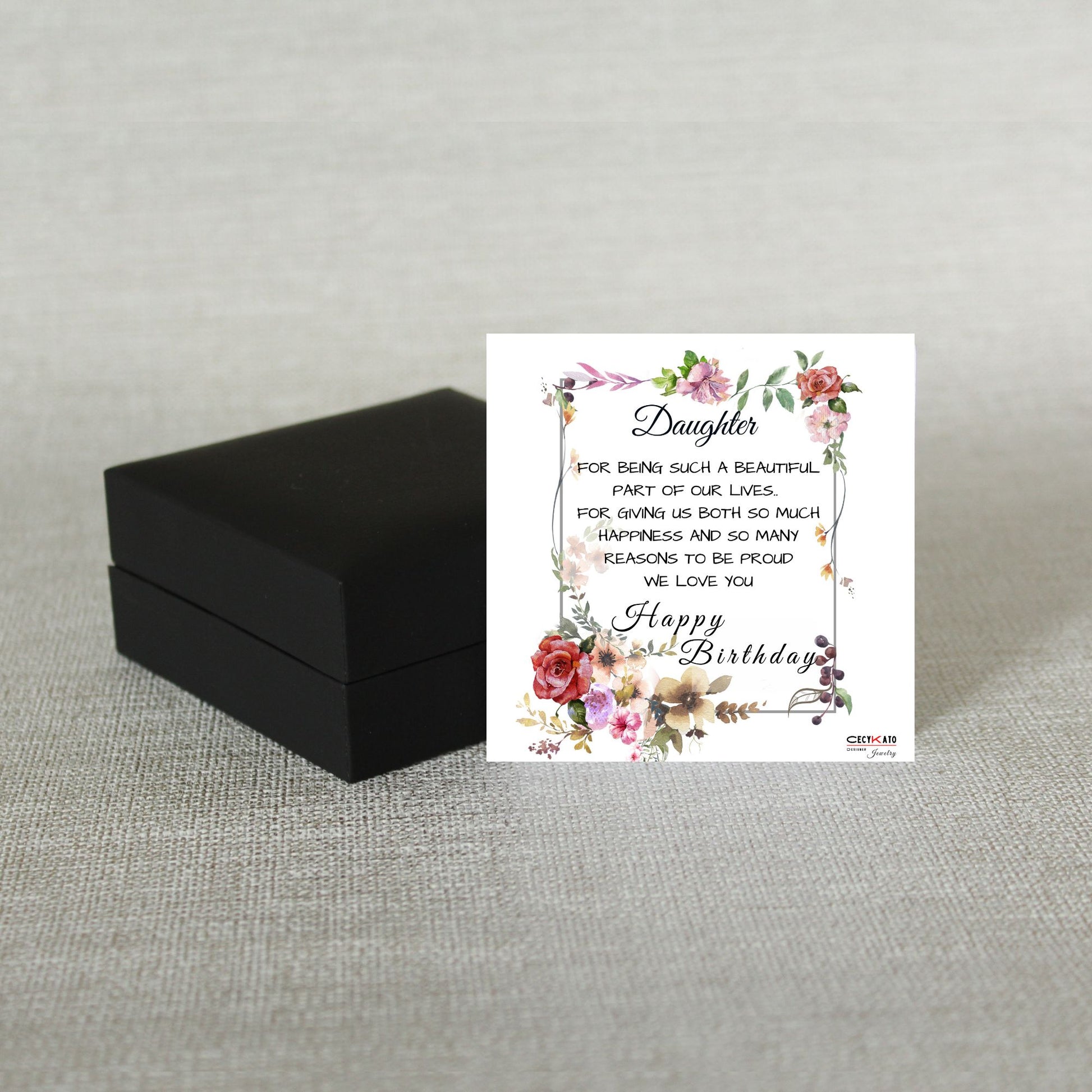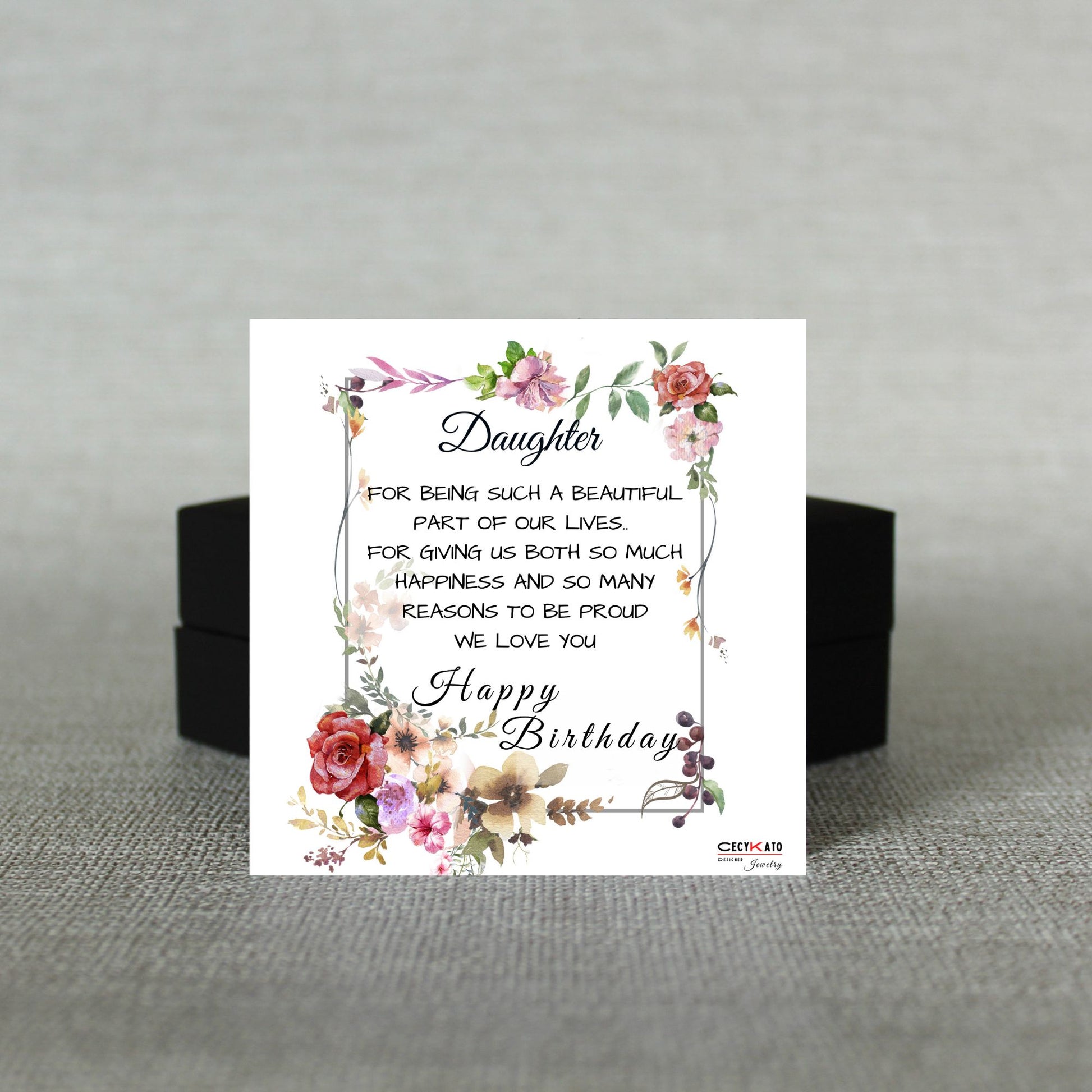 Card message: "Daughter - For being such a beautiful part of our lives... For giving us both so much happiness and so many reasons to be proud. We Love You - Happy Birthday"