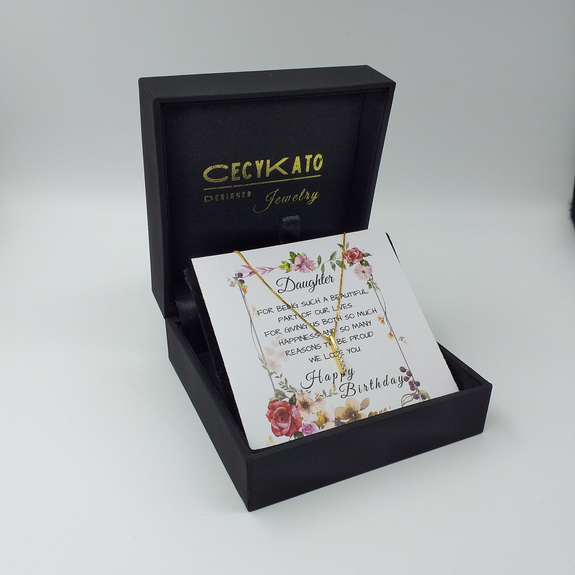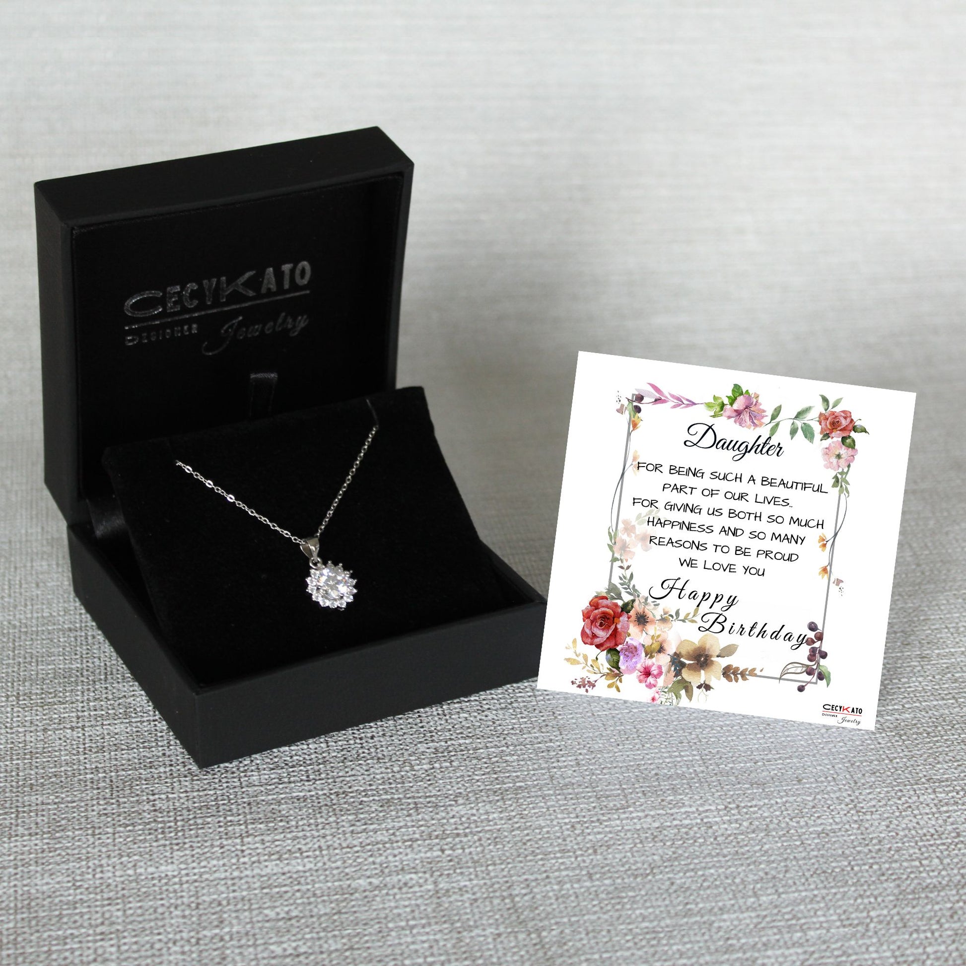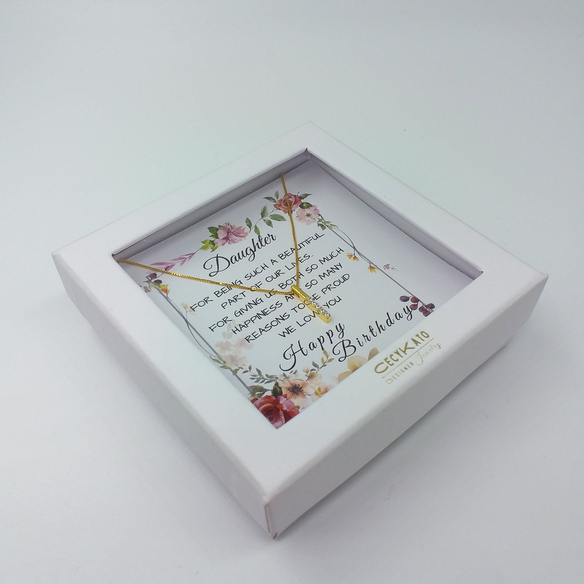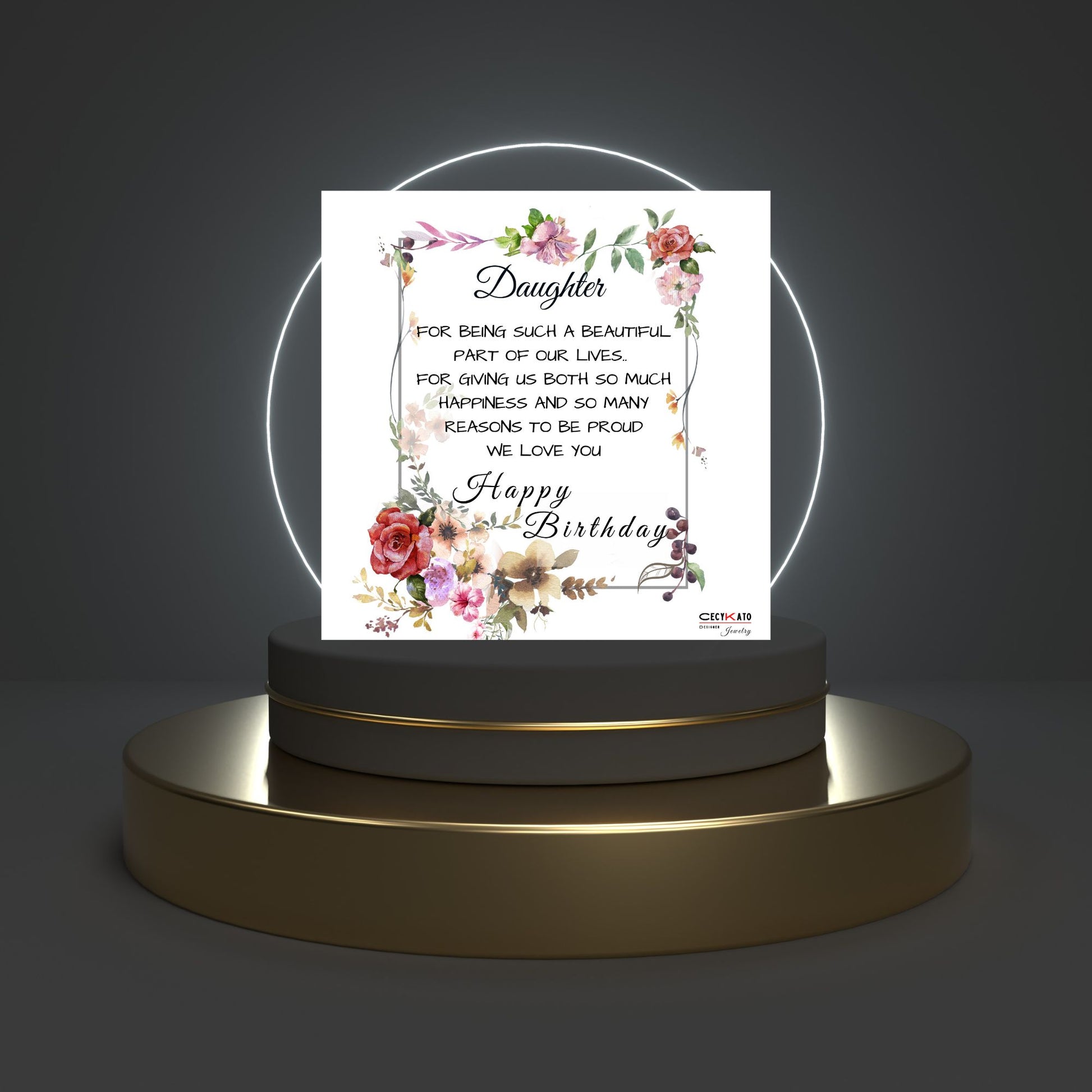 Card message: "Daughter - For being such a beautiful part of our lives... For giving us both so much happiness and so many reasons to be proud. We Love You - Happy Birthday"