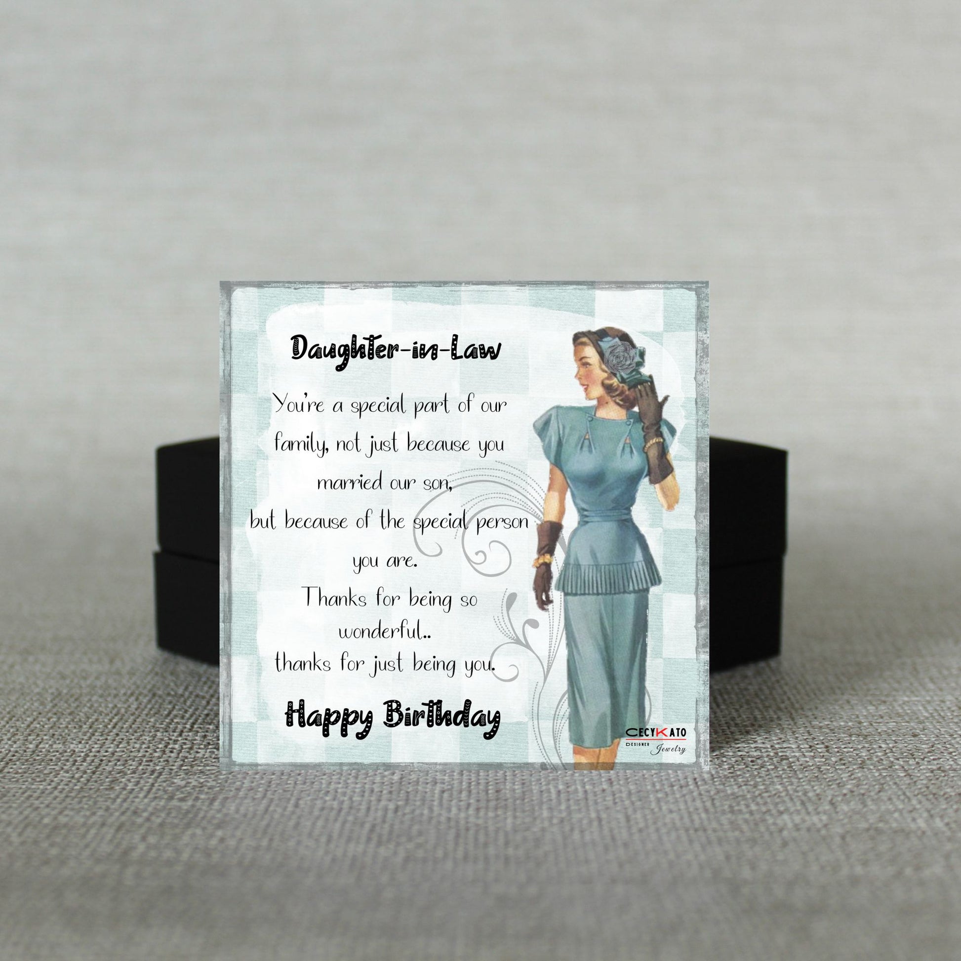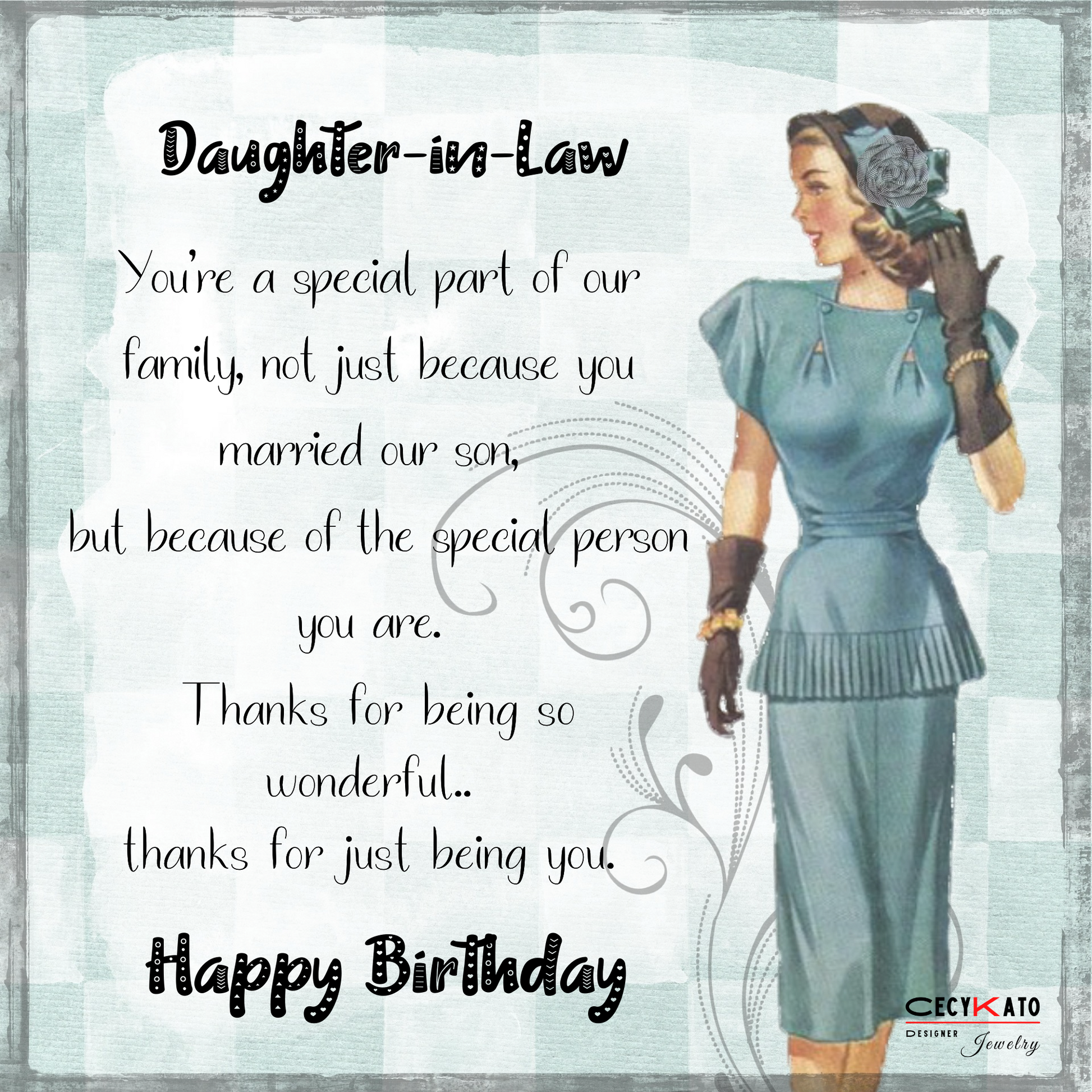 Card message: "Daughter -in -Law - You're a special part of our family, not just because you married our son, but because of the special person you are. Thanks for being so wonderful.. thanks for just being you - Happy Birthday"