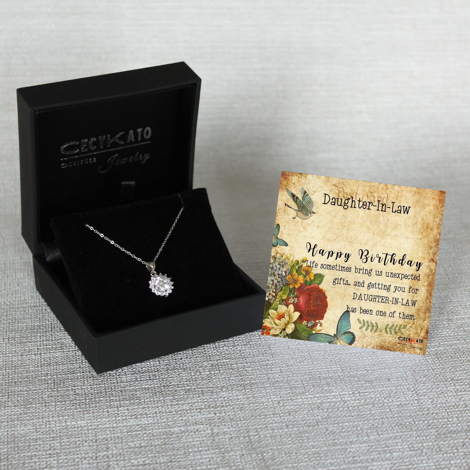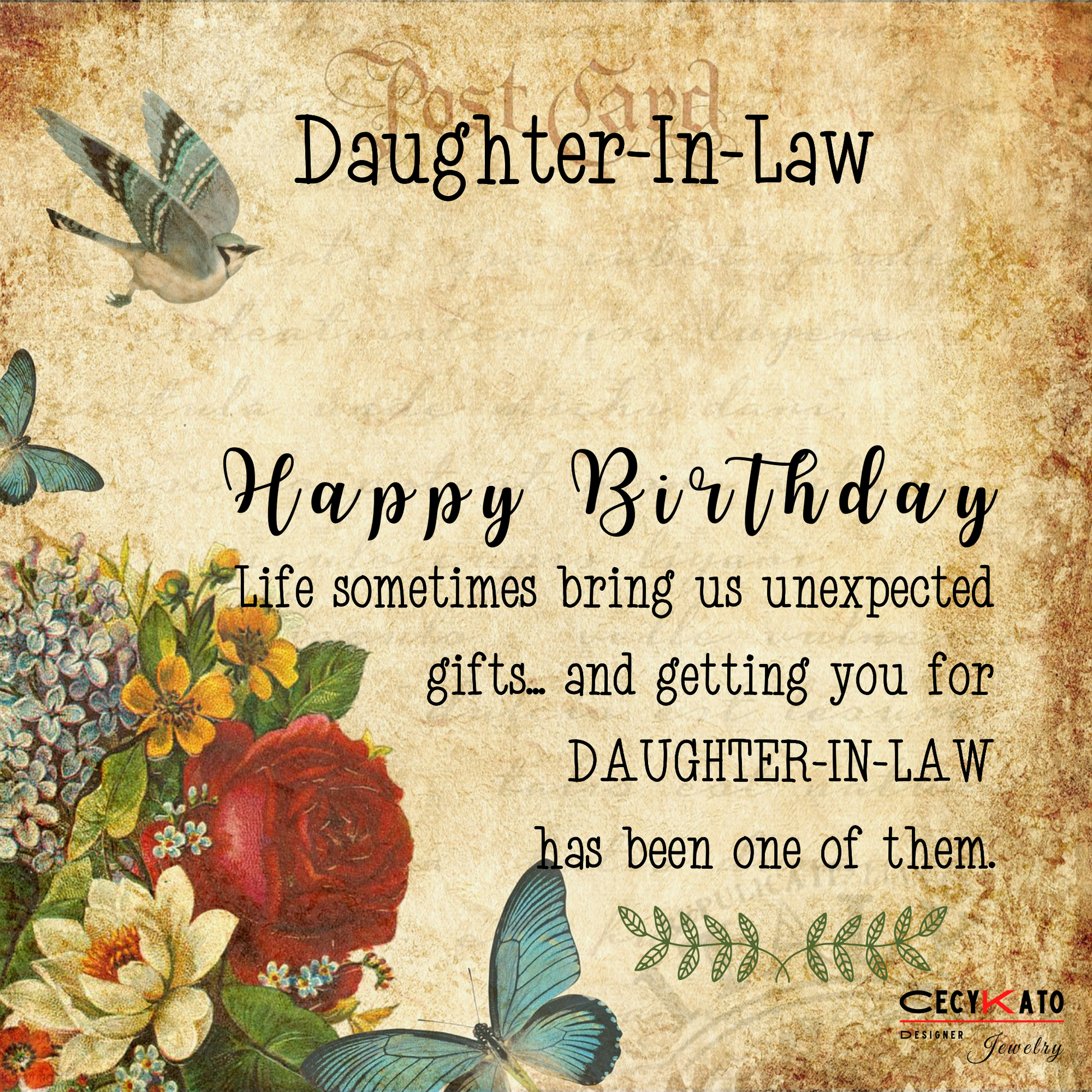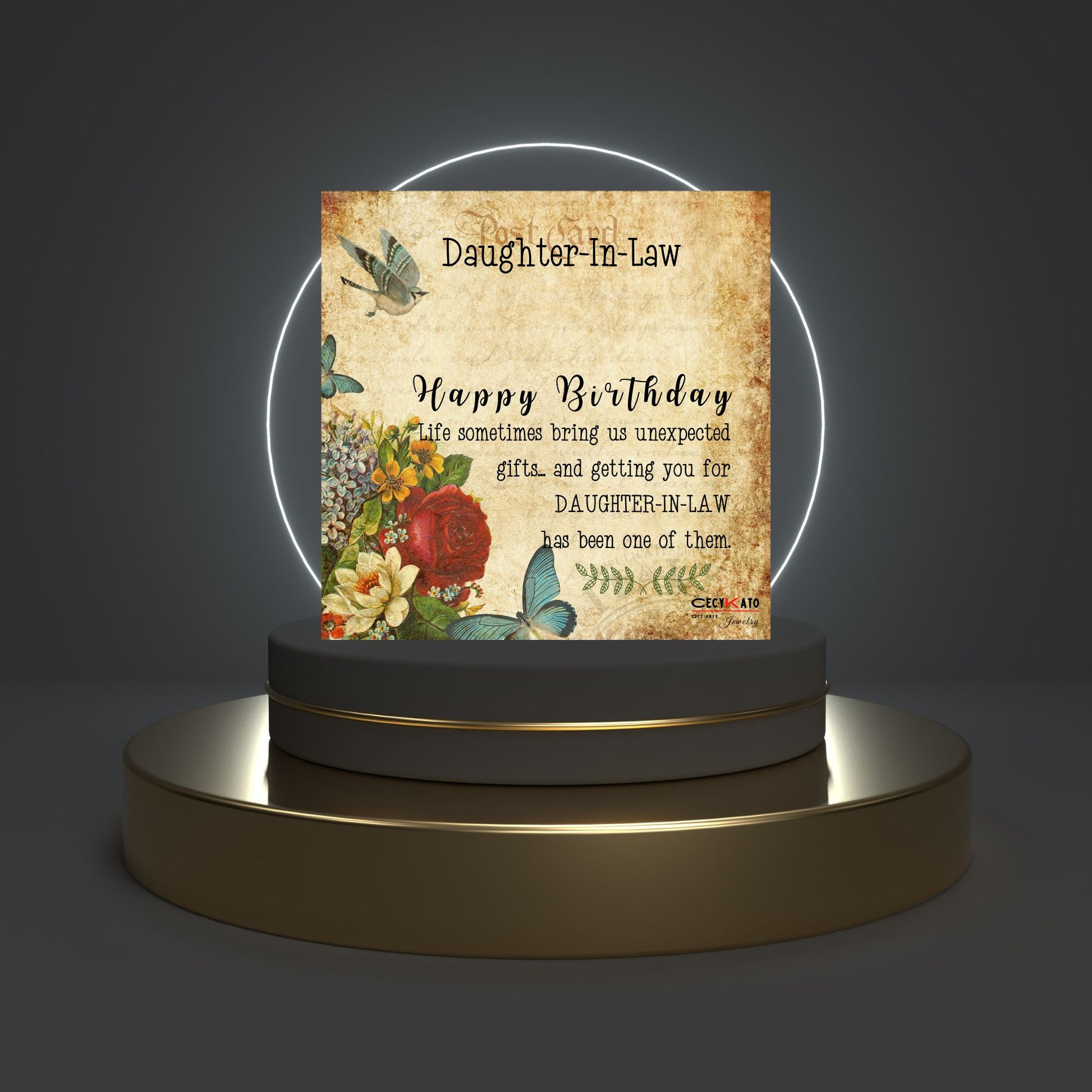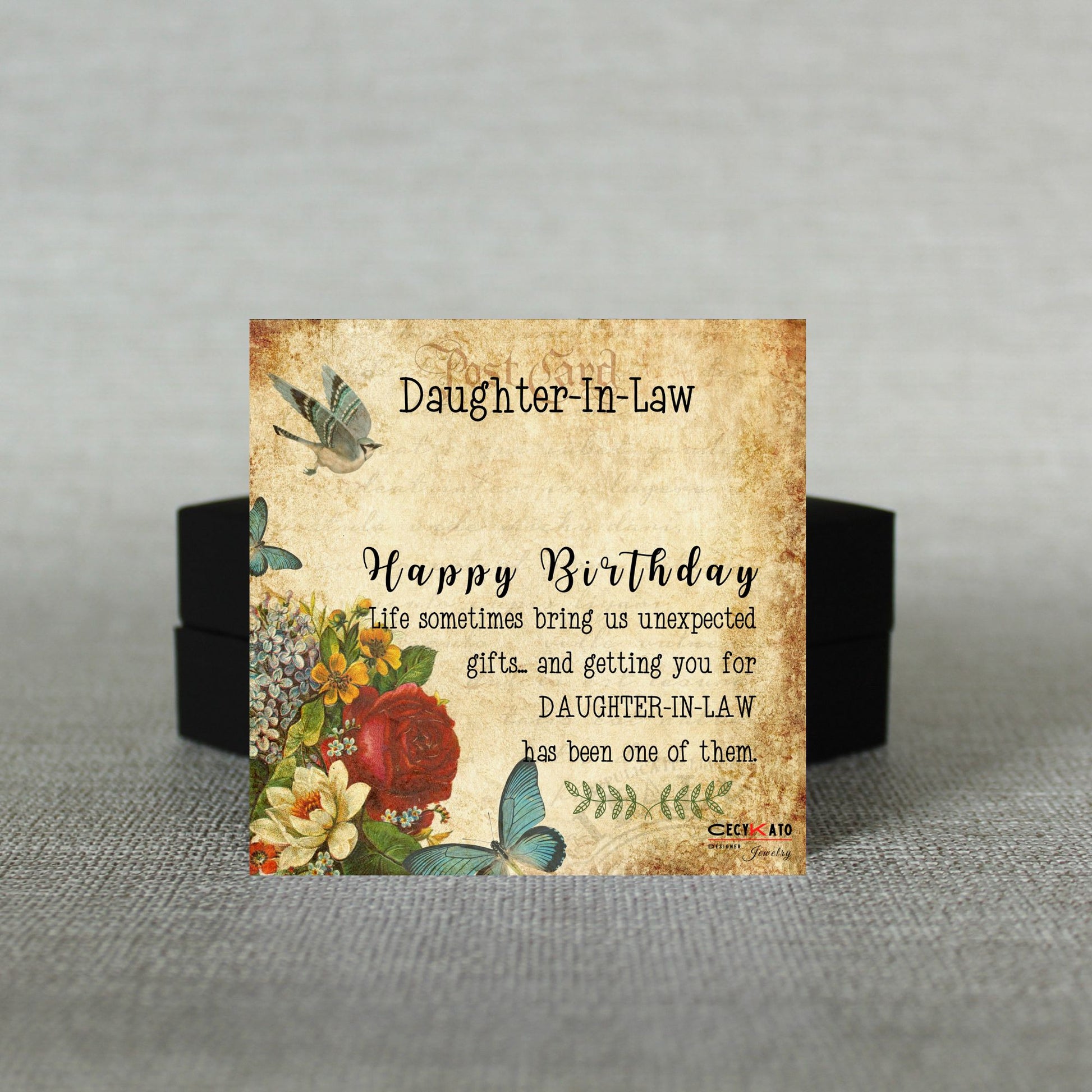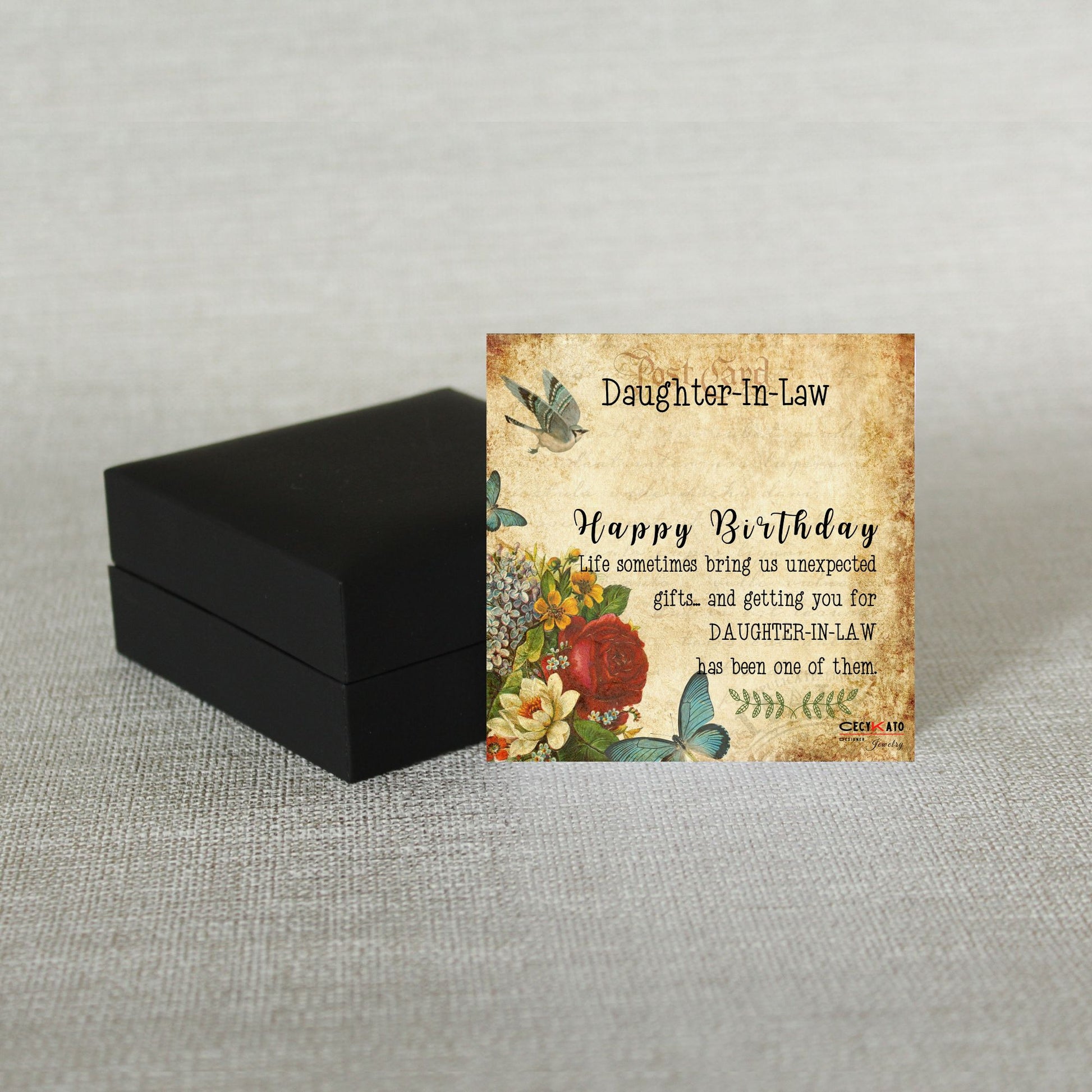 Card message: "Daughter -in -Law - Happy Birthday Life sometimes bring us unexpected gifts... and getting you for Daughter - in -Law has been one of them "