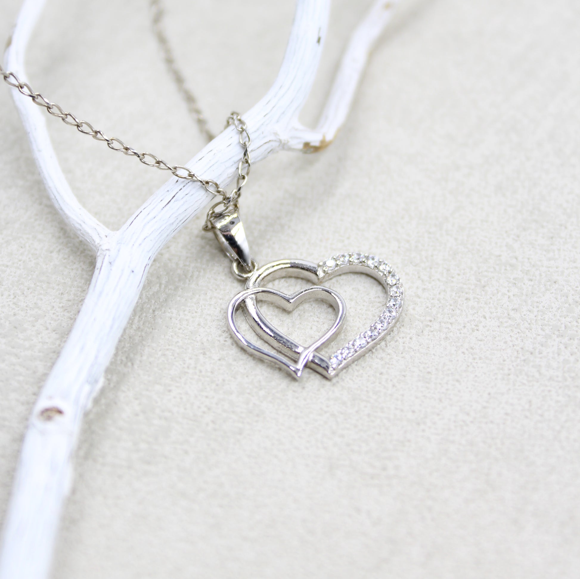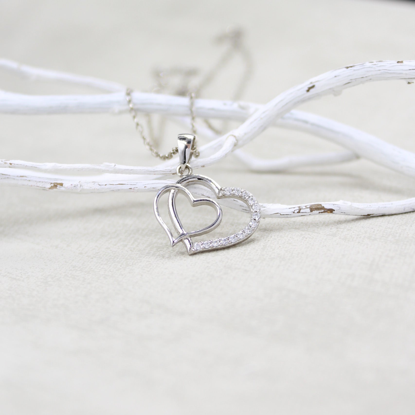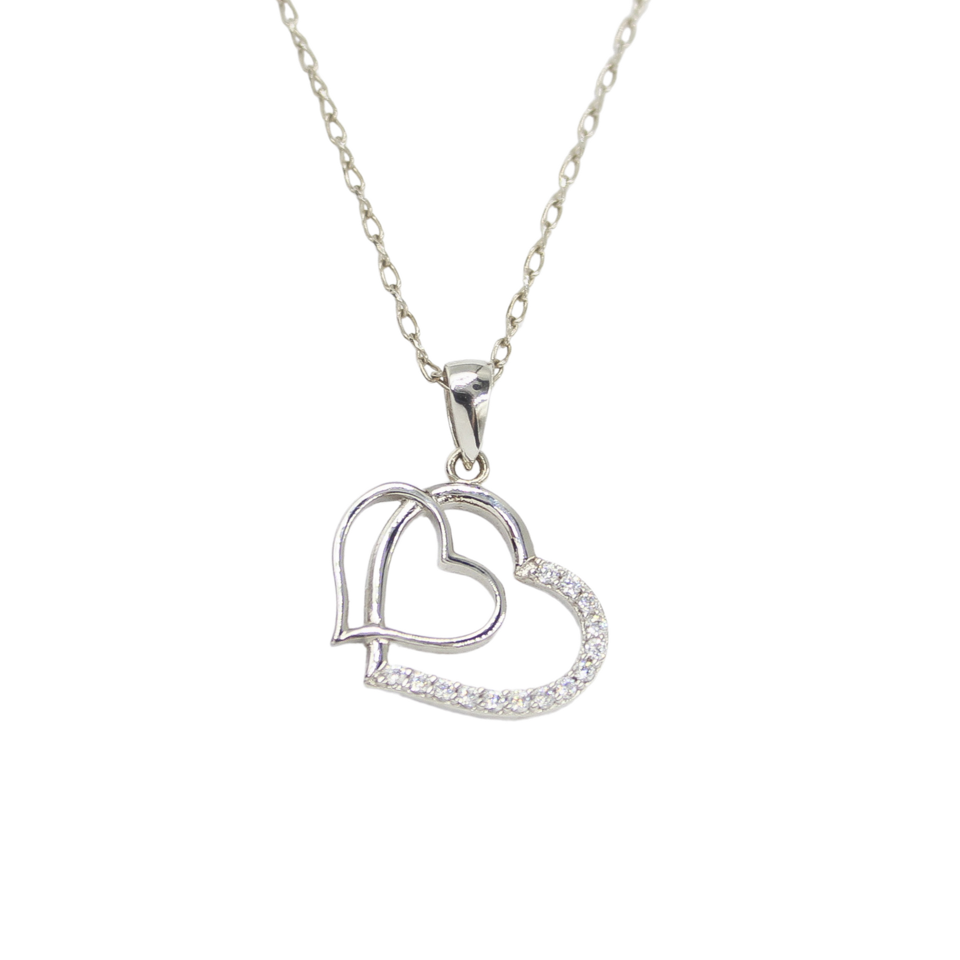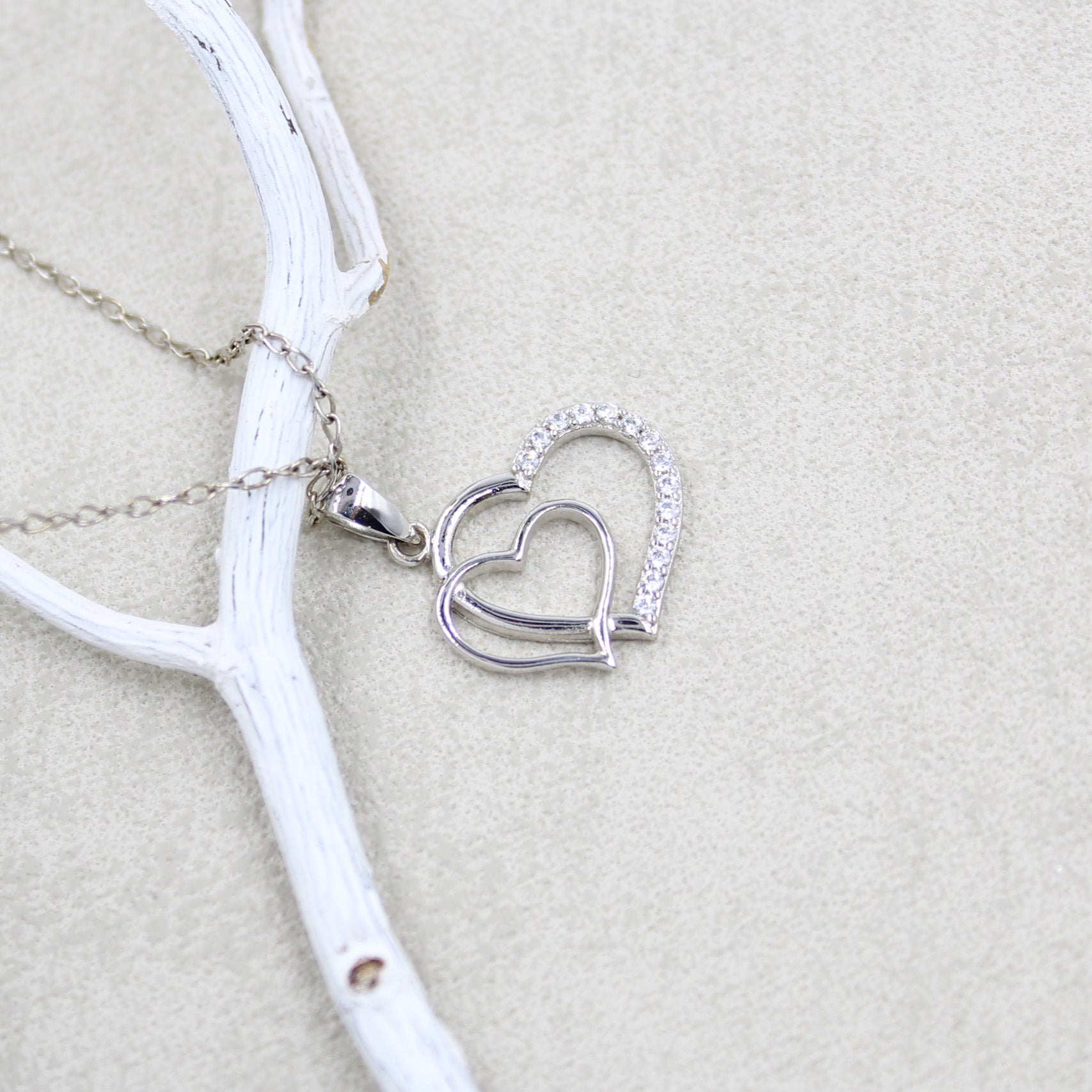 925 Sterling Silver- Cubic Zirconia - Double Heart Necklace LL1