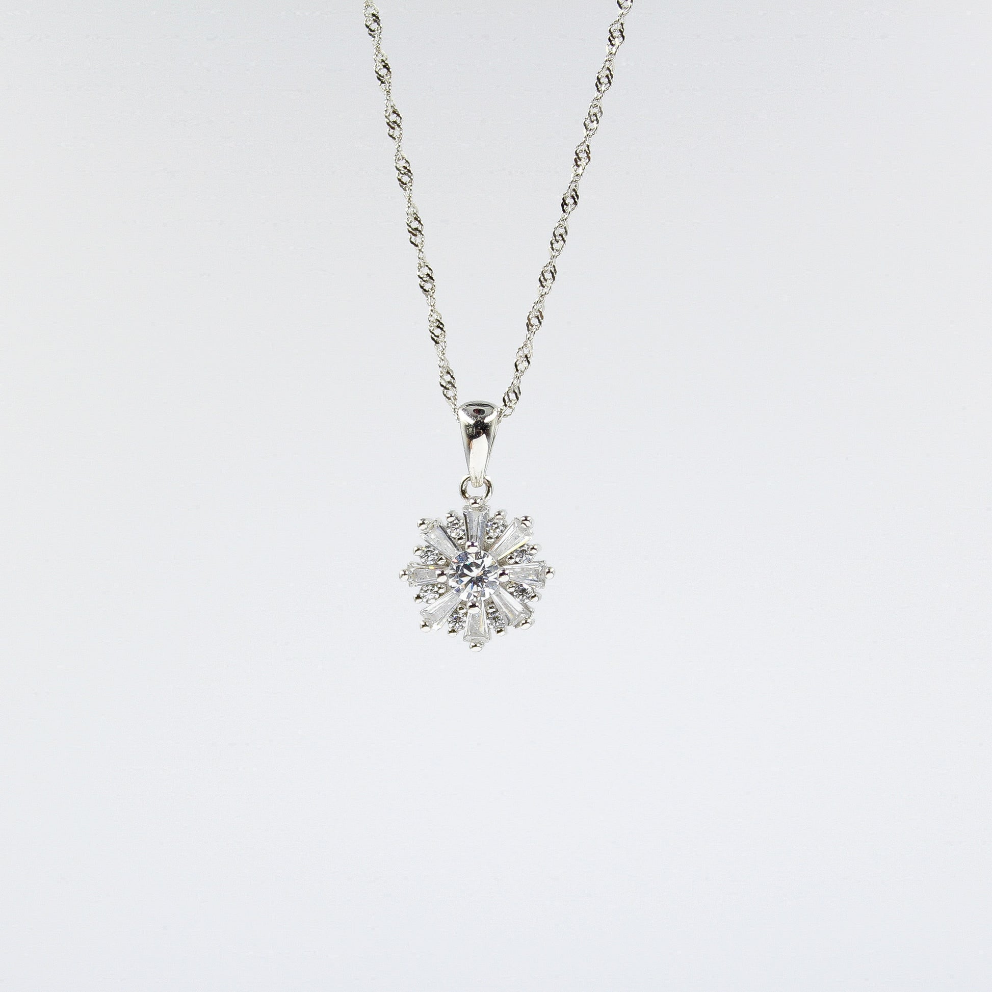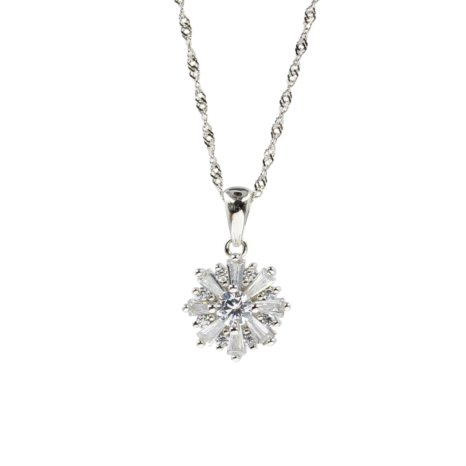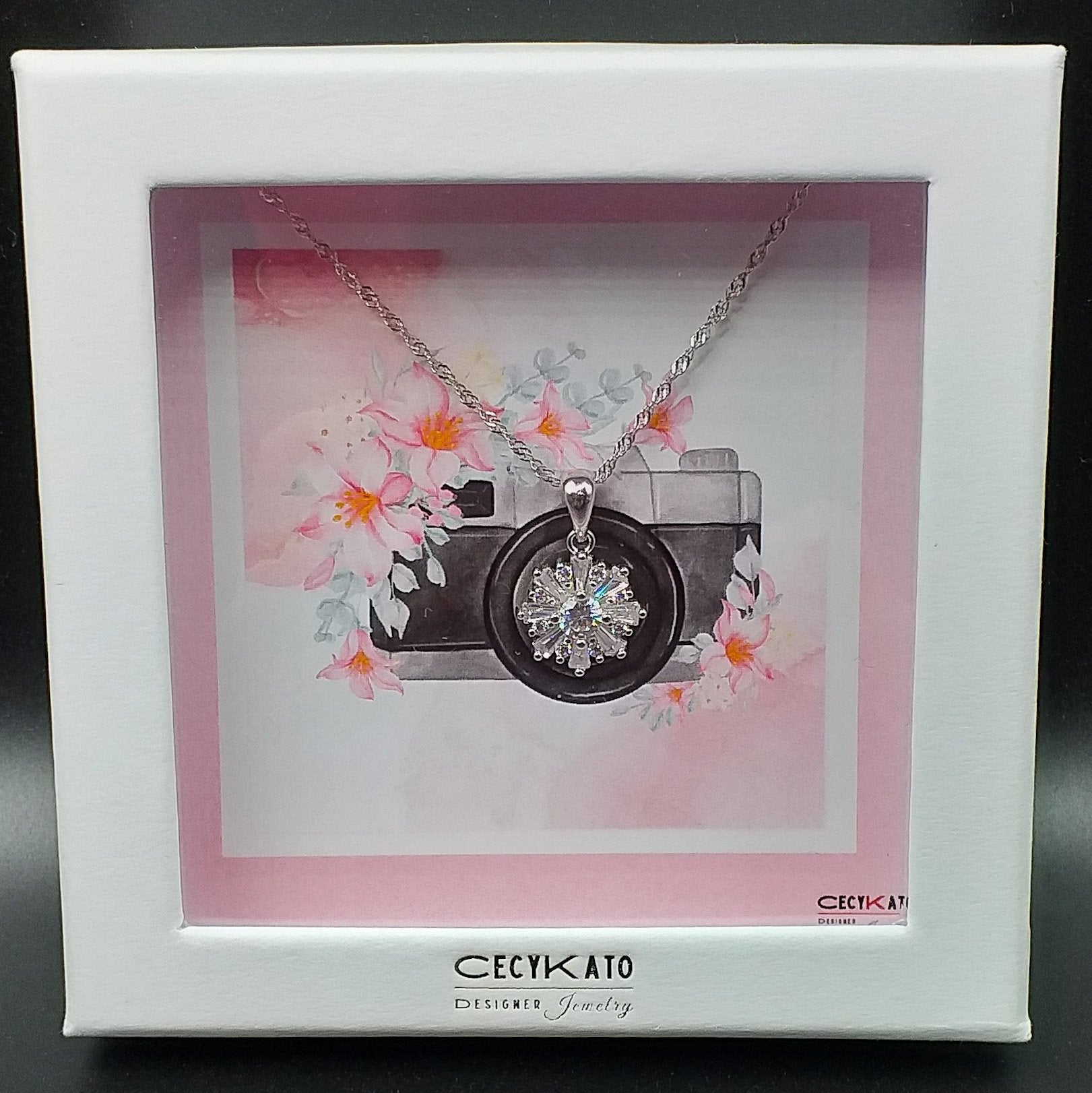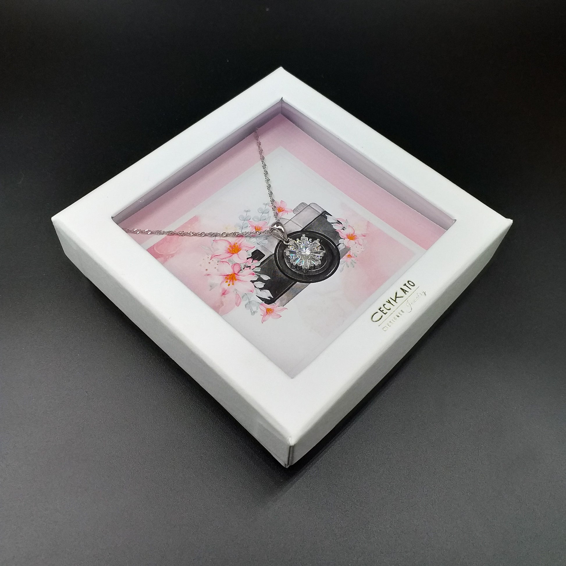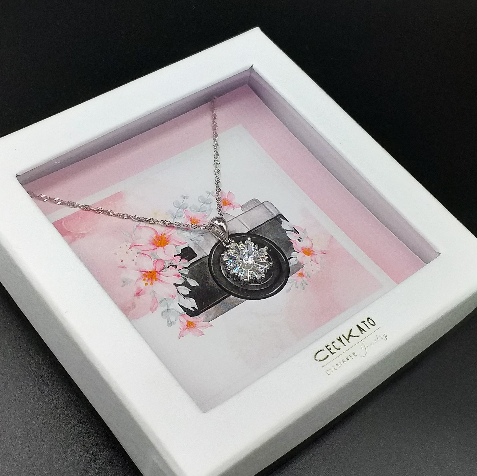 Flower / Camera - 925 Sterling Silver Cubic Zirconia Flower Minimalist Necklace TE895