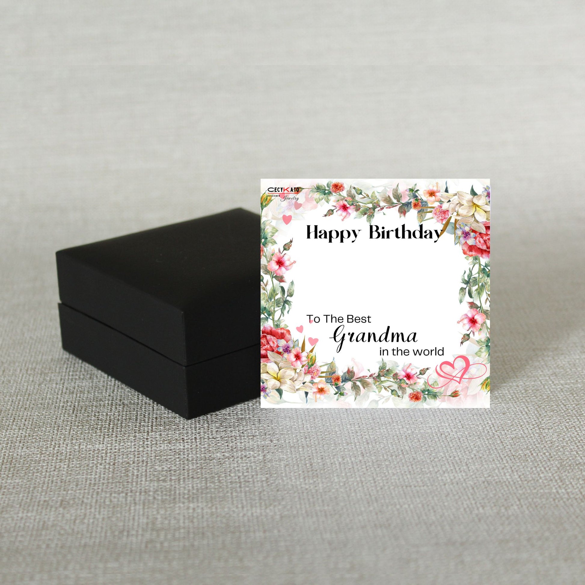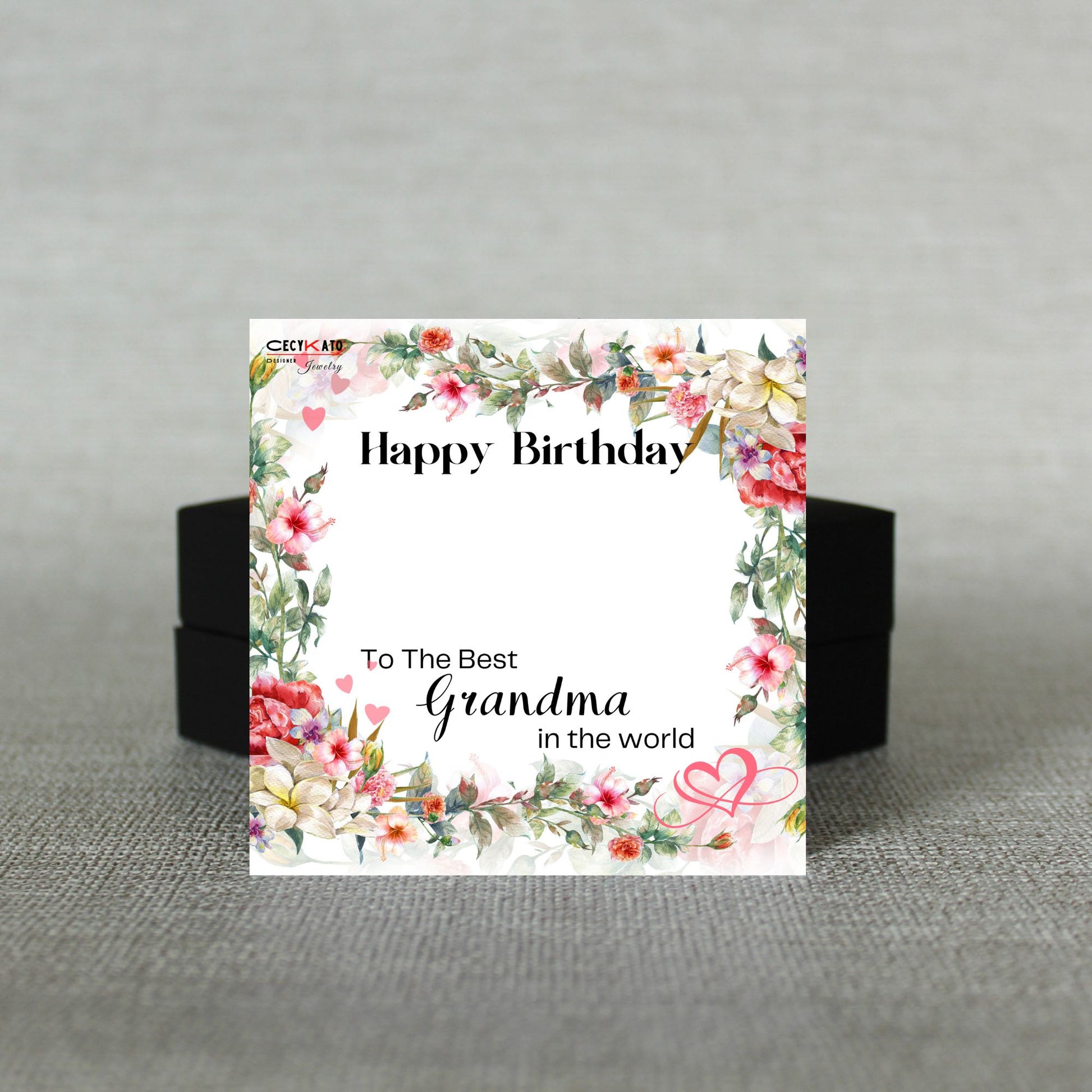 Indulge in a timeless gift for your grandmother on her special day with this elegant Happy Birthday Message card. Crafted with a sleek finish and printed with a heartfelt message, this card is sure to bring a special touch of warmth to the occasion. A perfect way to let the best grandma in the world know that she is loved and appreciated.