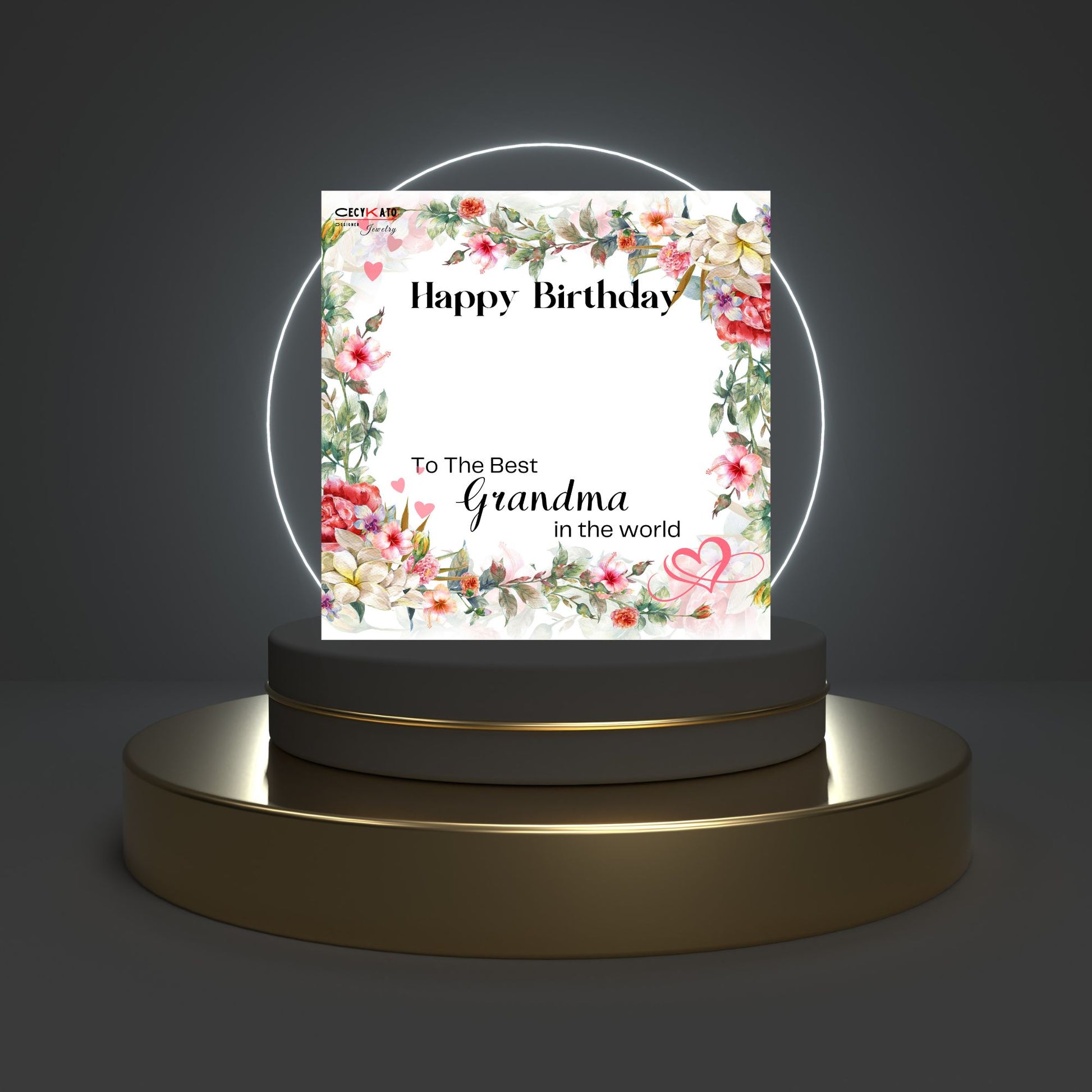 Card message: "Happy Birthday to the Best Grandma in the world "