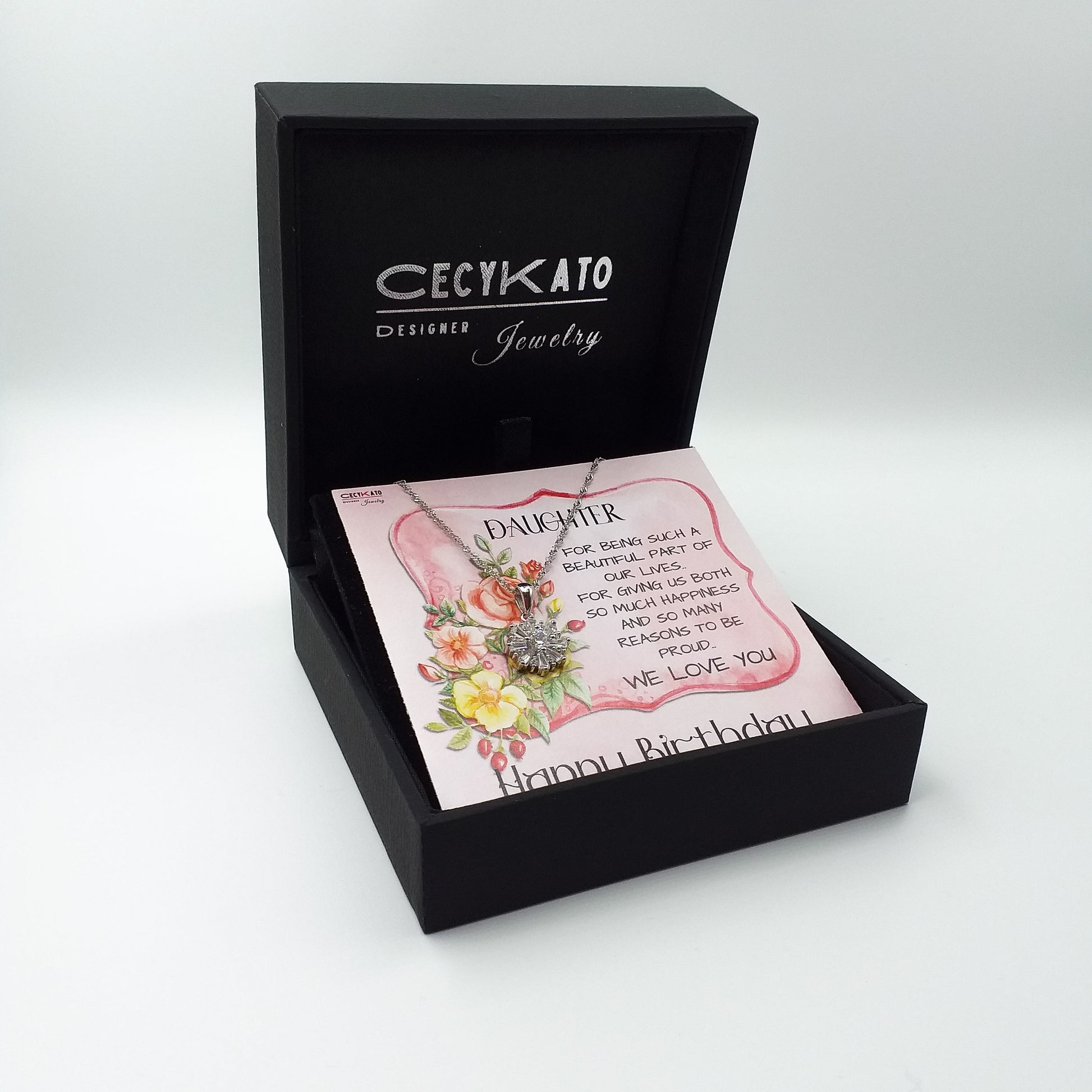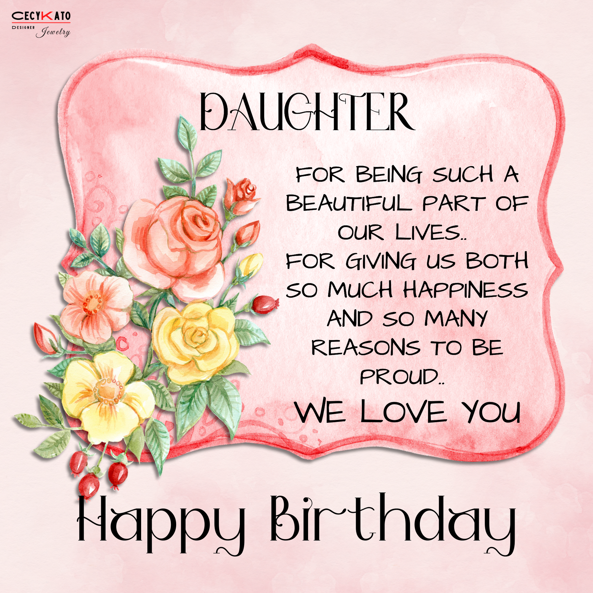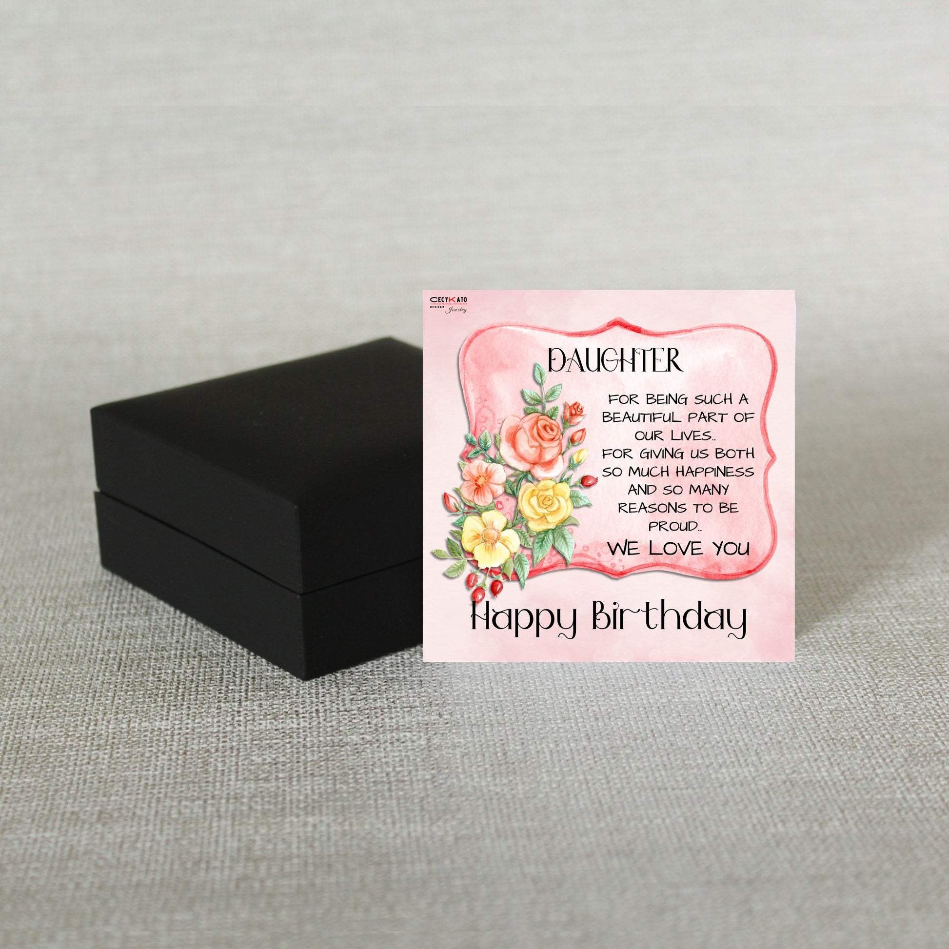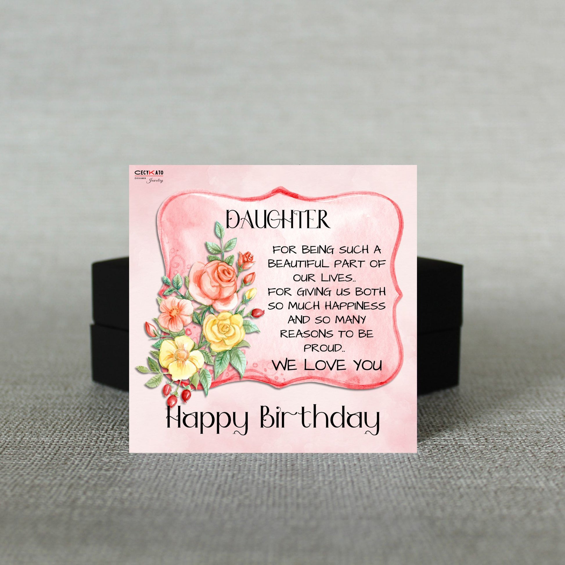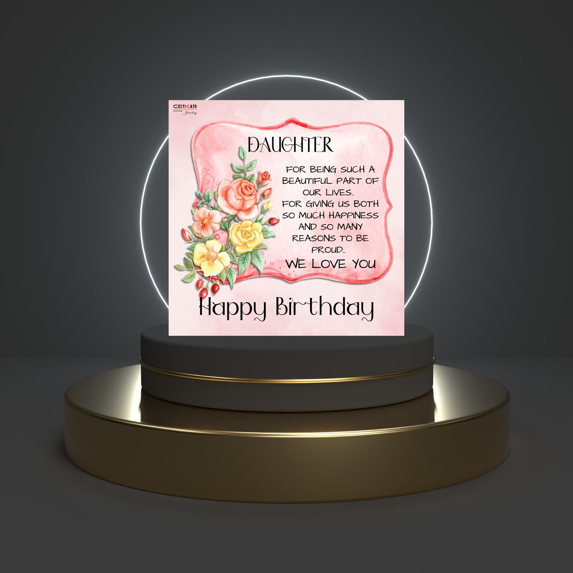Card message: "Daughter - For being such a beautiful part of our lives... For giving us both so much happiness and so many reasons to be proud.. We Love You - Happy Birthday"