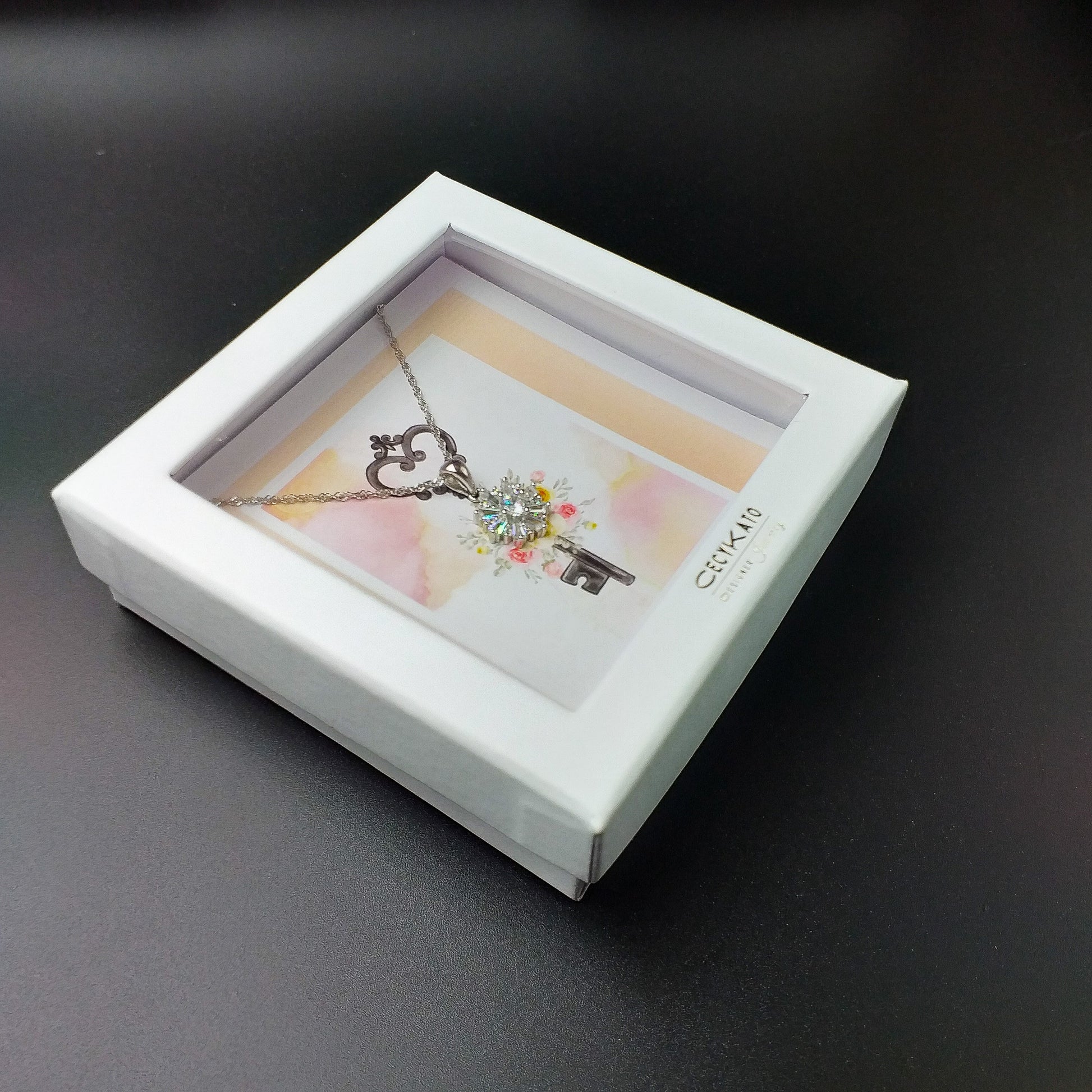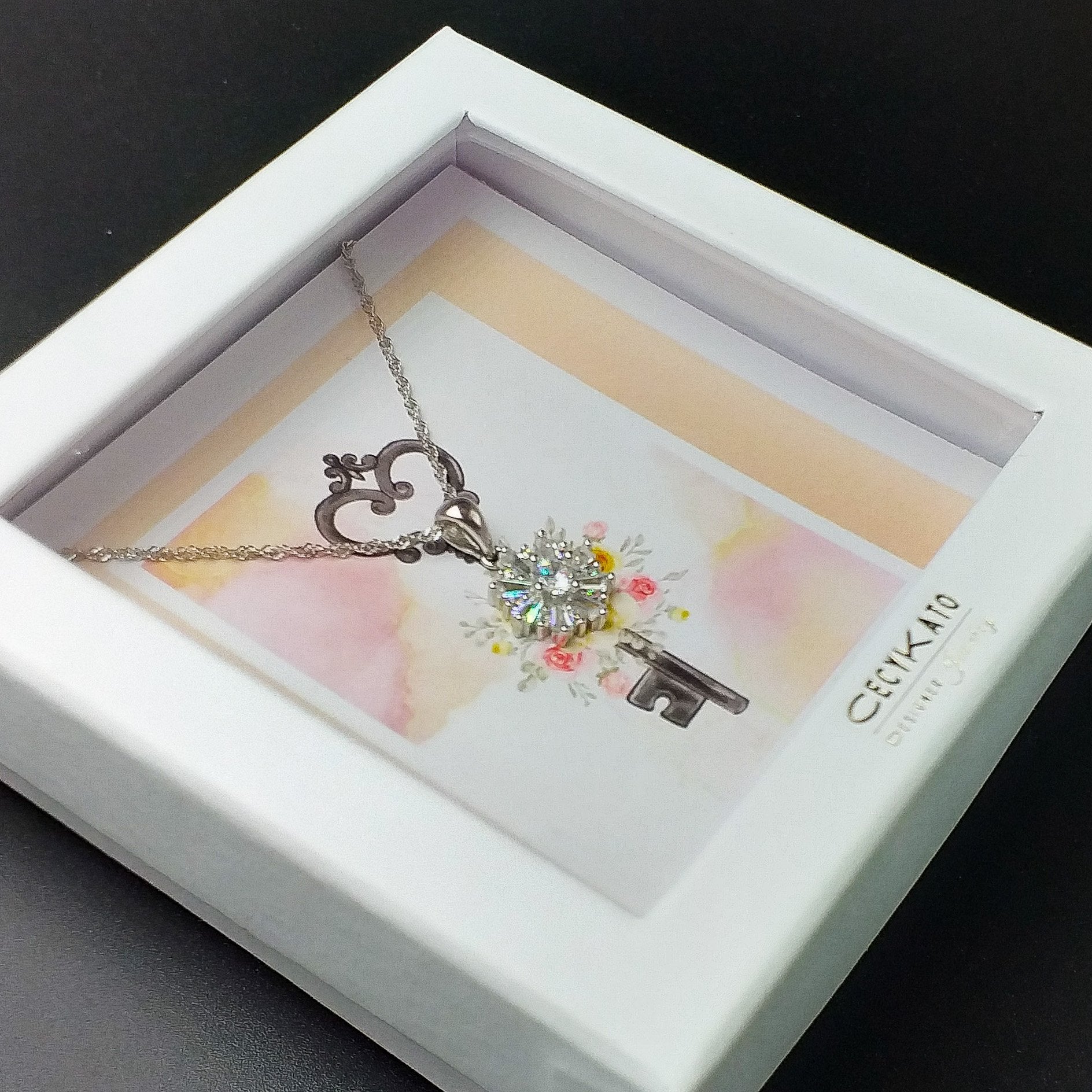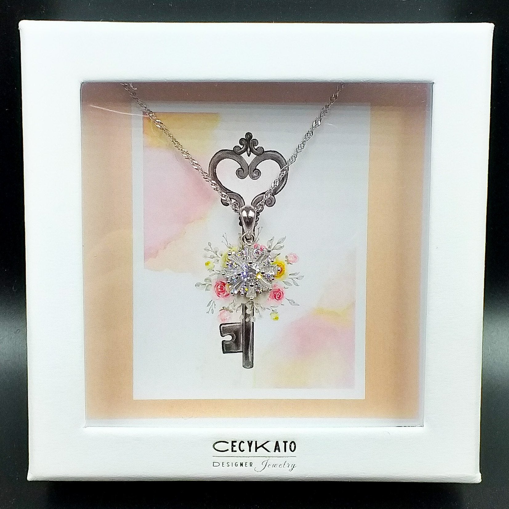 Key / Flower - 925 Sterling Silver Cubic Zirconia Flower Minimalist Necklace TE87