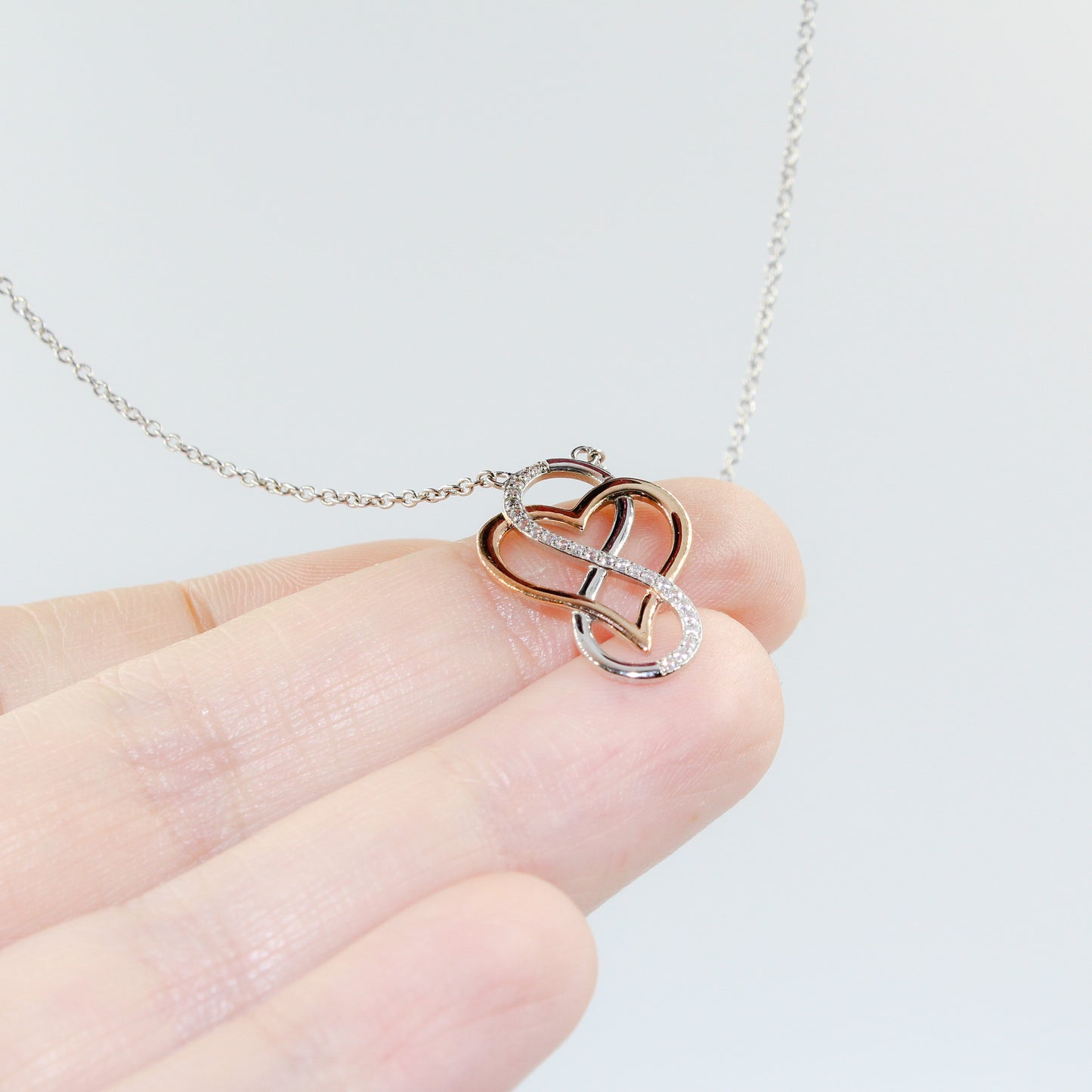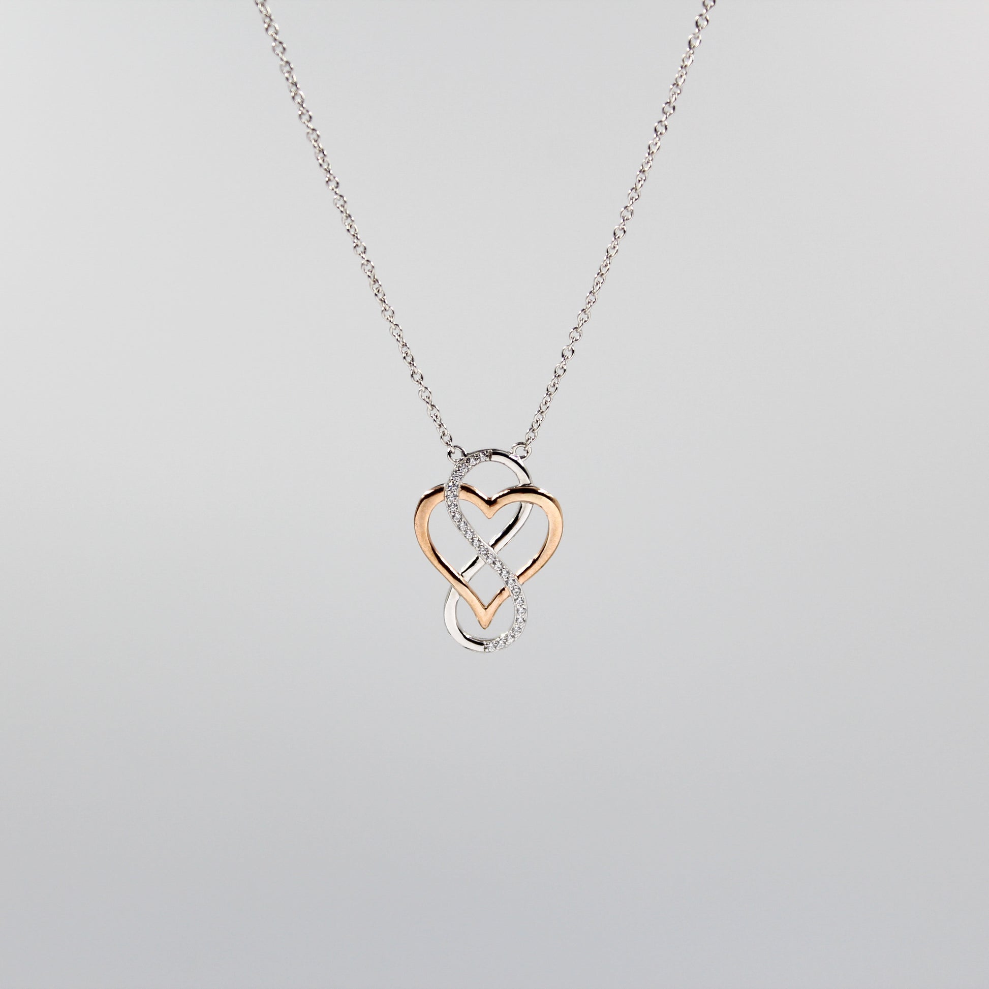925 Sterling Silver - Cubic Zirconia - Rose-Gold Heart and Infinity Symbol Necklace LL5