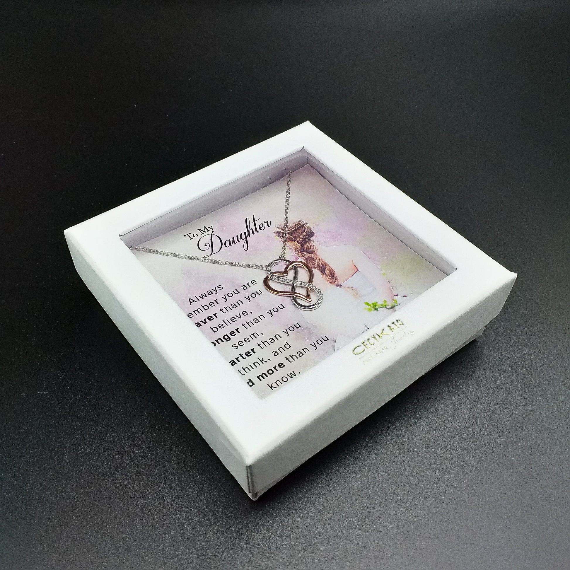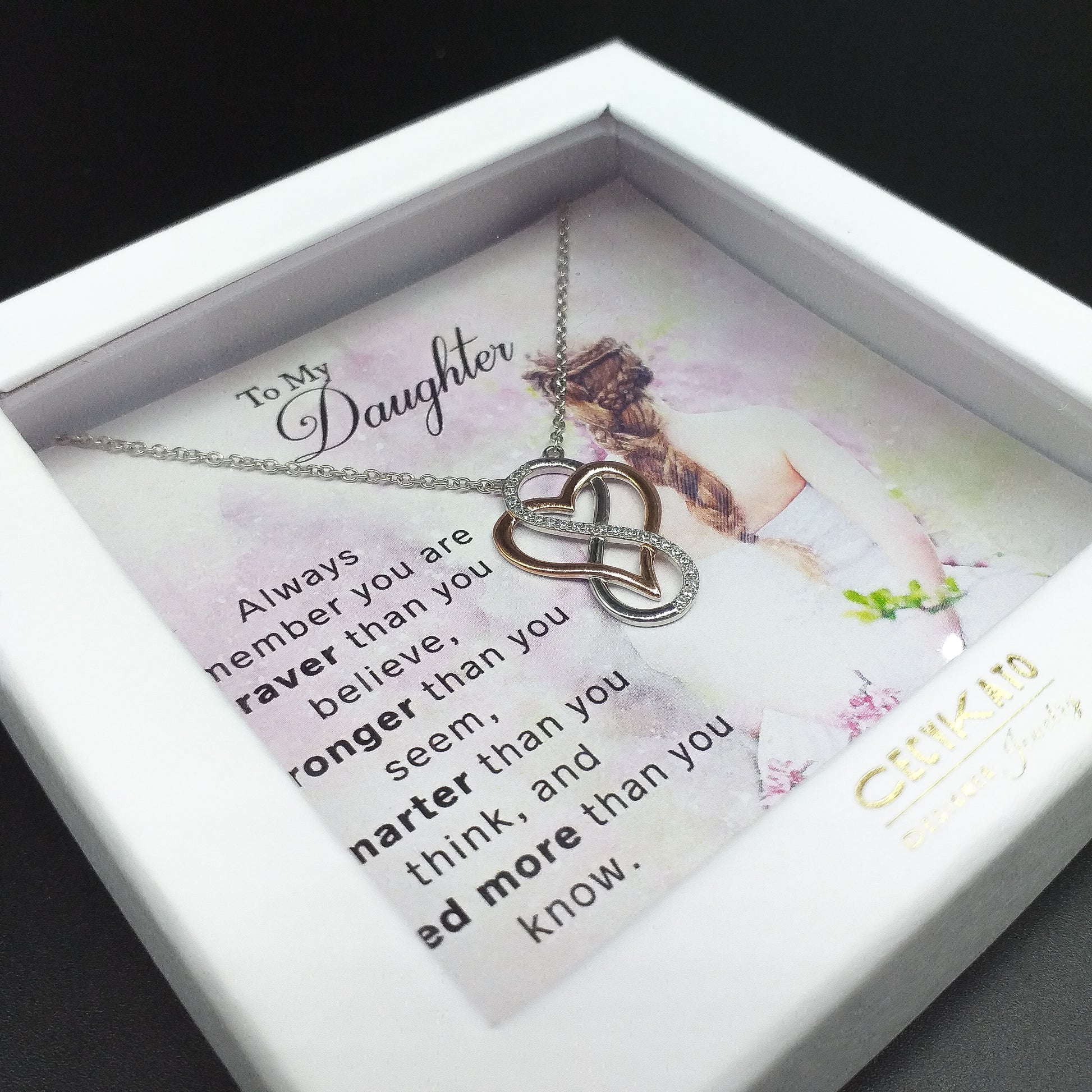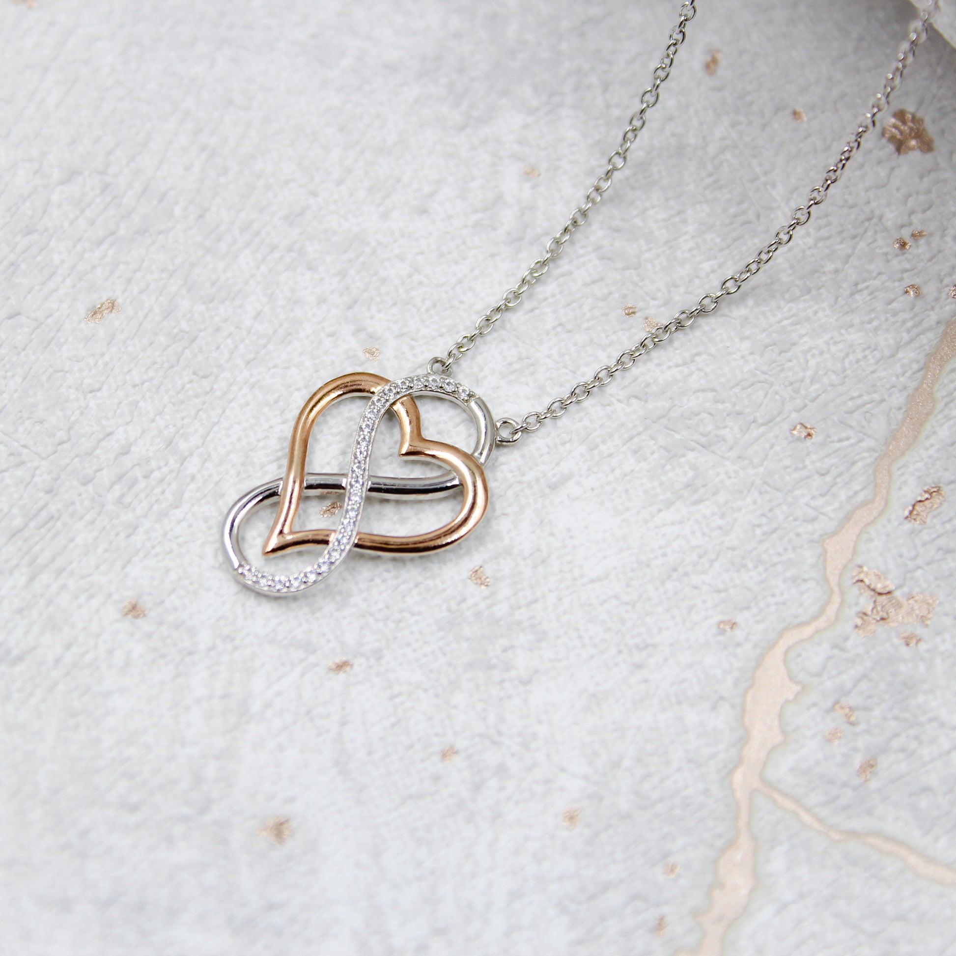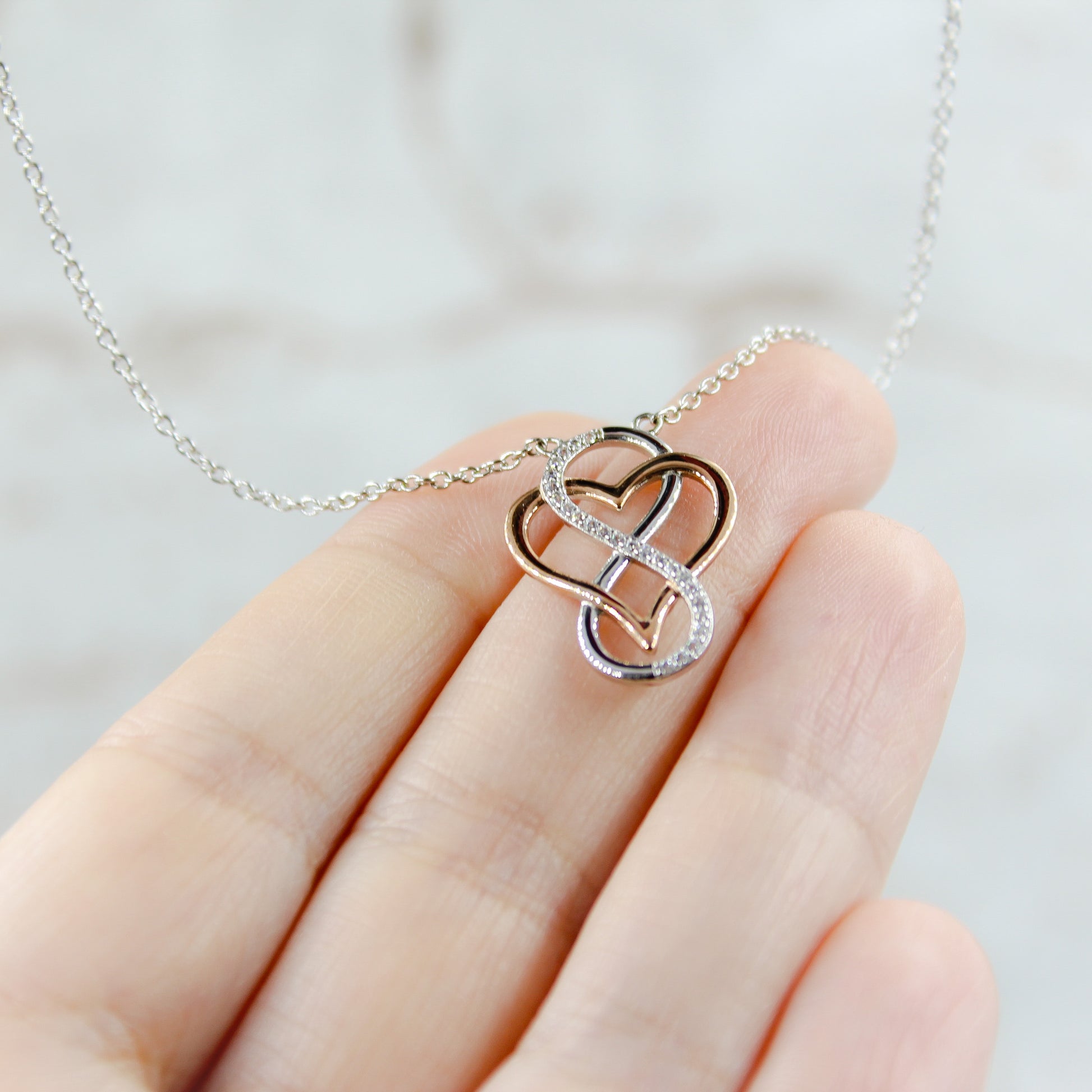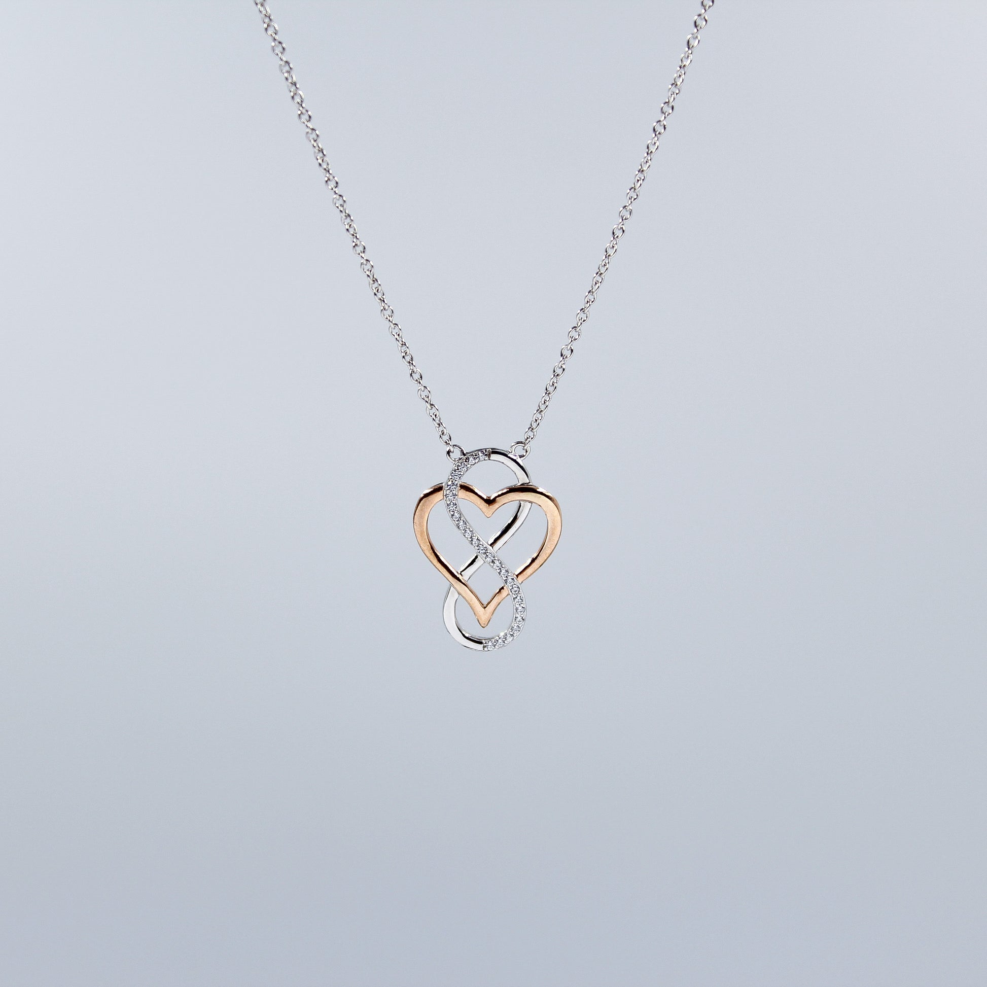 Inspirational / Daughter - Rhodium Plated Sterling Silver Necklace, Rose-Gold Heart and Infinity Symbol LL5WW37D