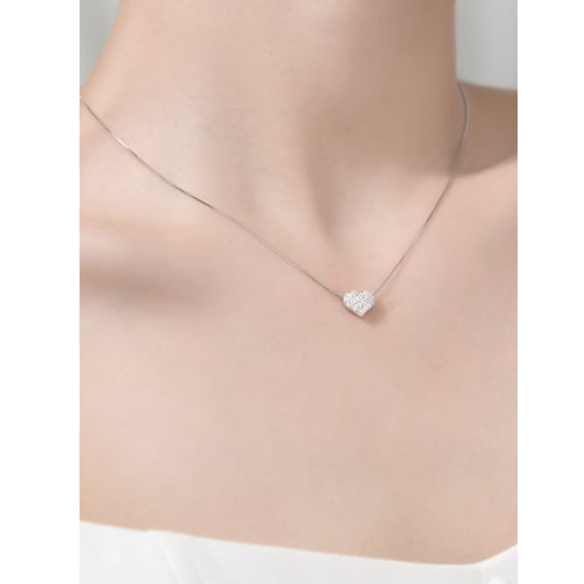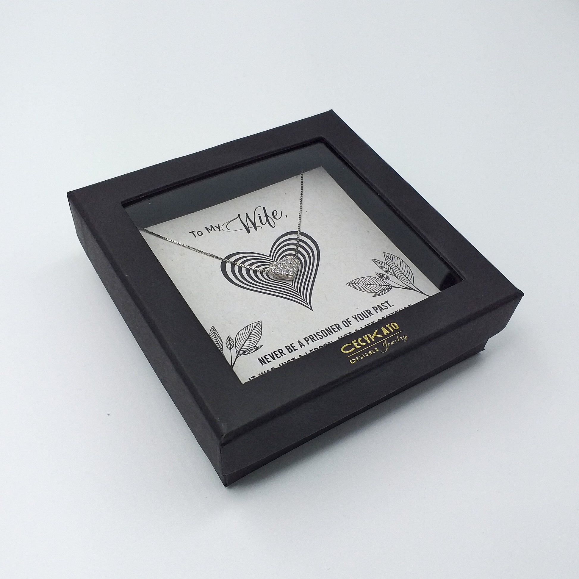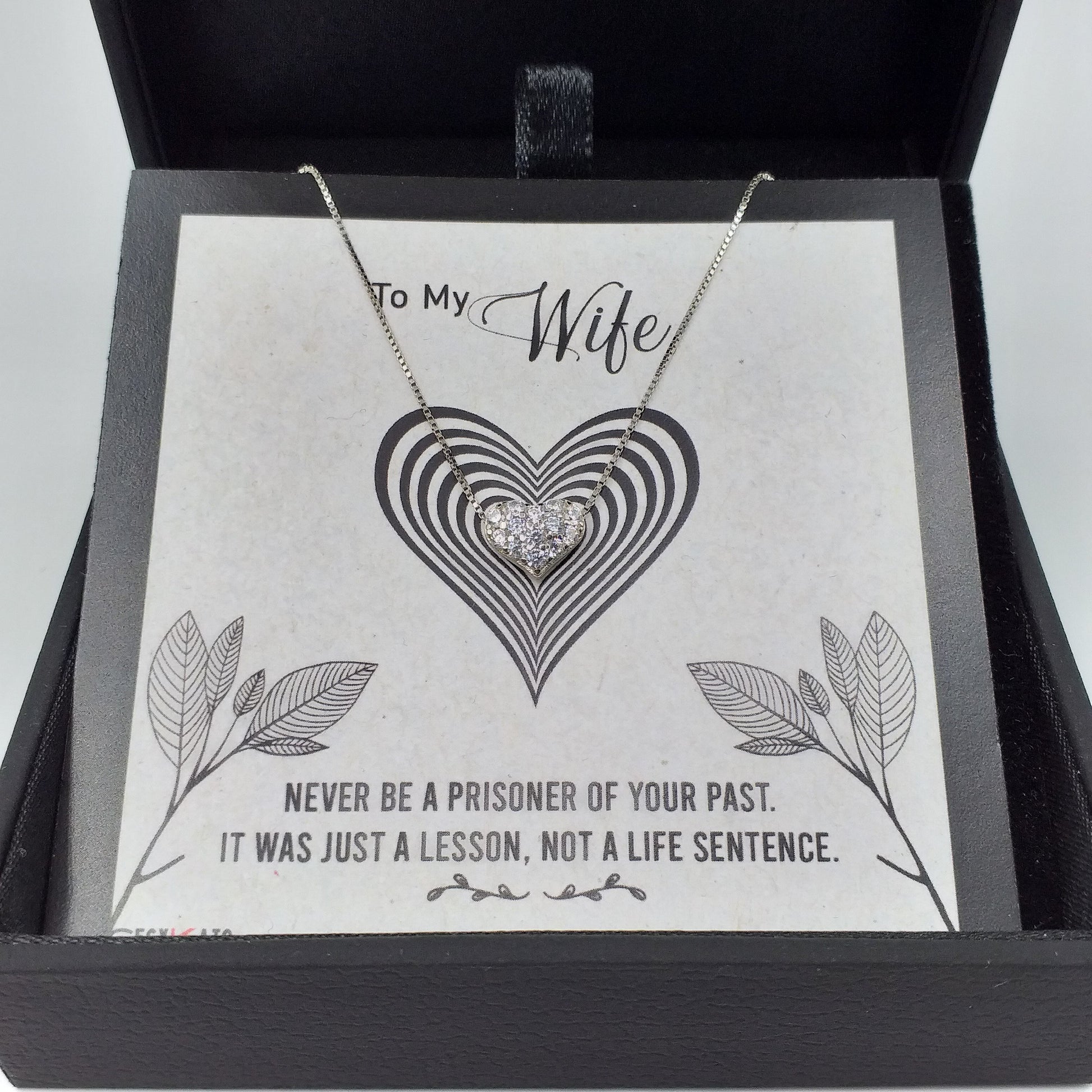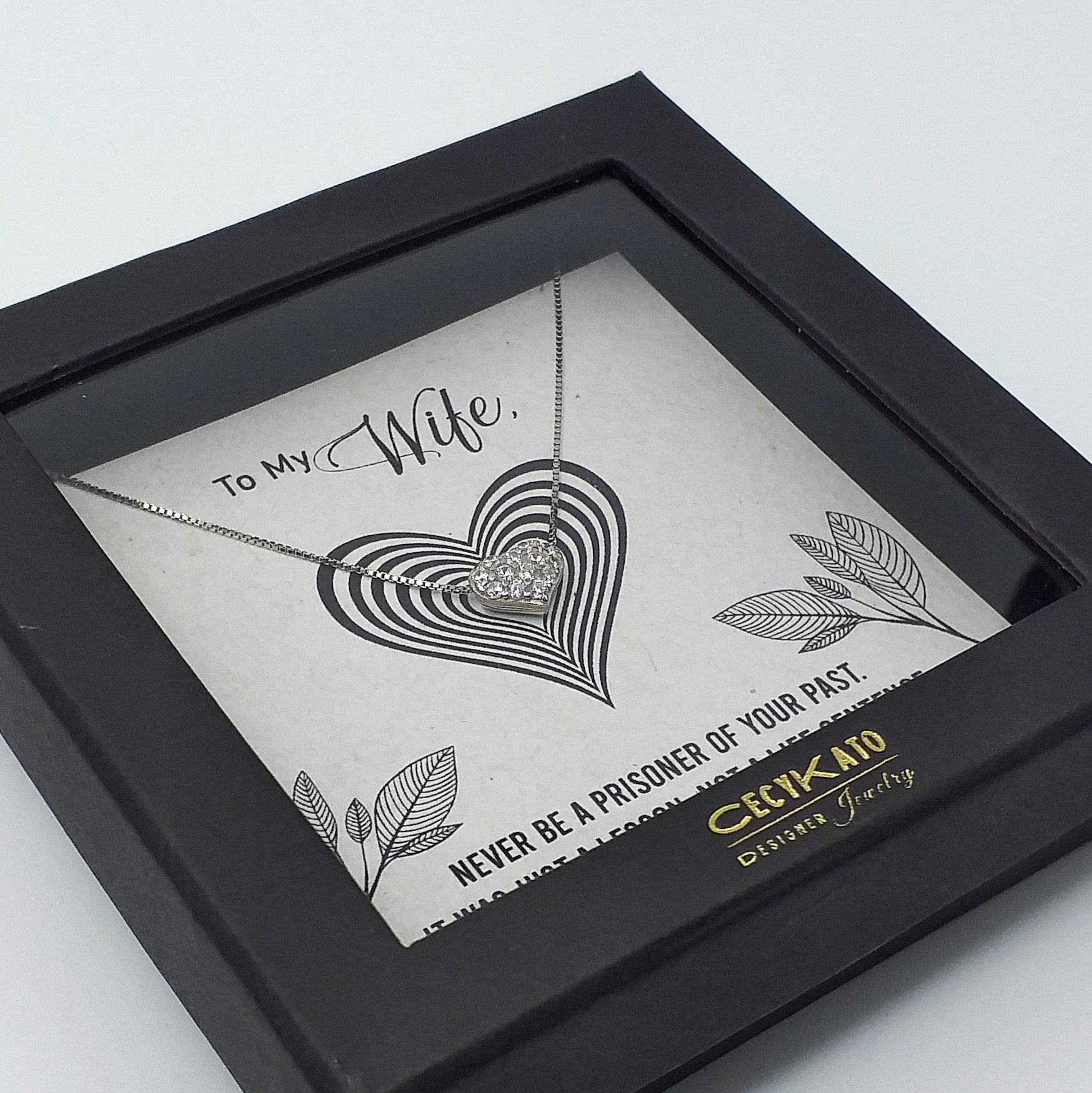 Wife / Inspirational - 925 Sterling Silver Cubic Zirconia White Heart Necklace TE119W