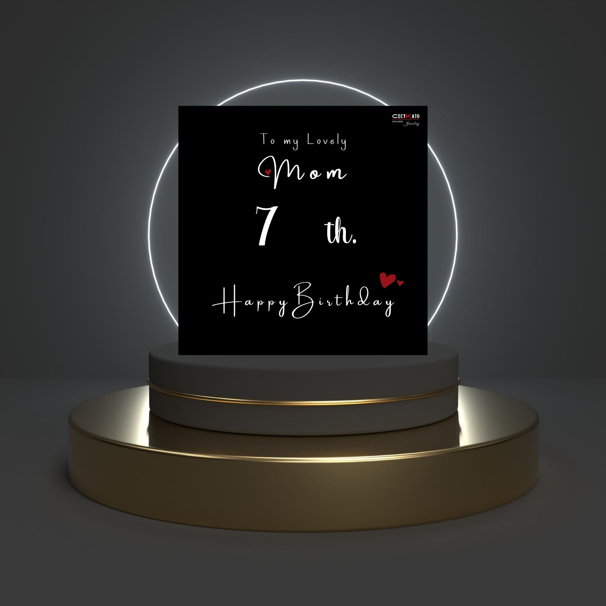 A truly beautiful way to commemorate a special mom's milestone birthday. Our Mom Millstone Birthday card is an elegant way to demonstrate your love and appreciation to a special mother. Featuring the words "To My Lovely Mom - Happy Birthday", this tasteful card unites luxury and sophistication with a thoughtful touch. Celebrate your beloved mom's milestone birthday by sending this exclusive card.