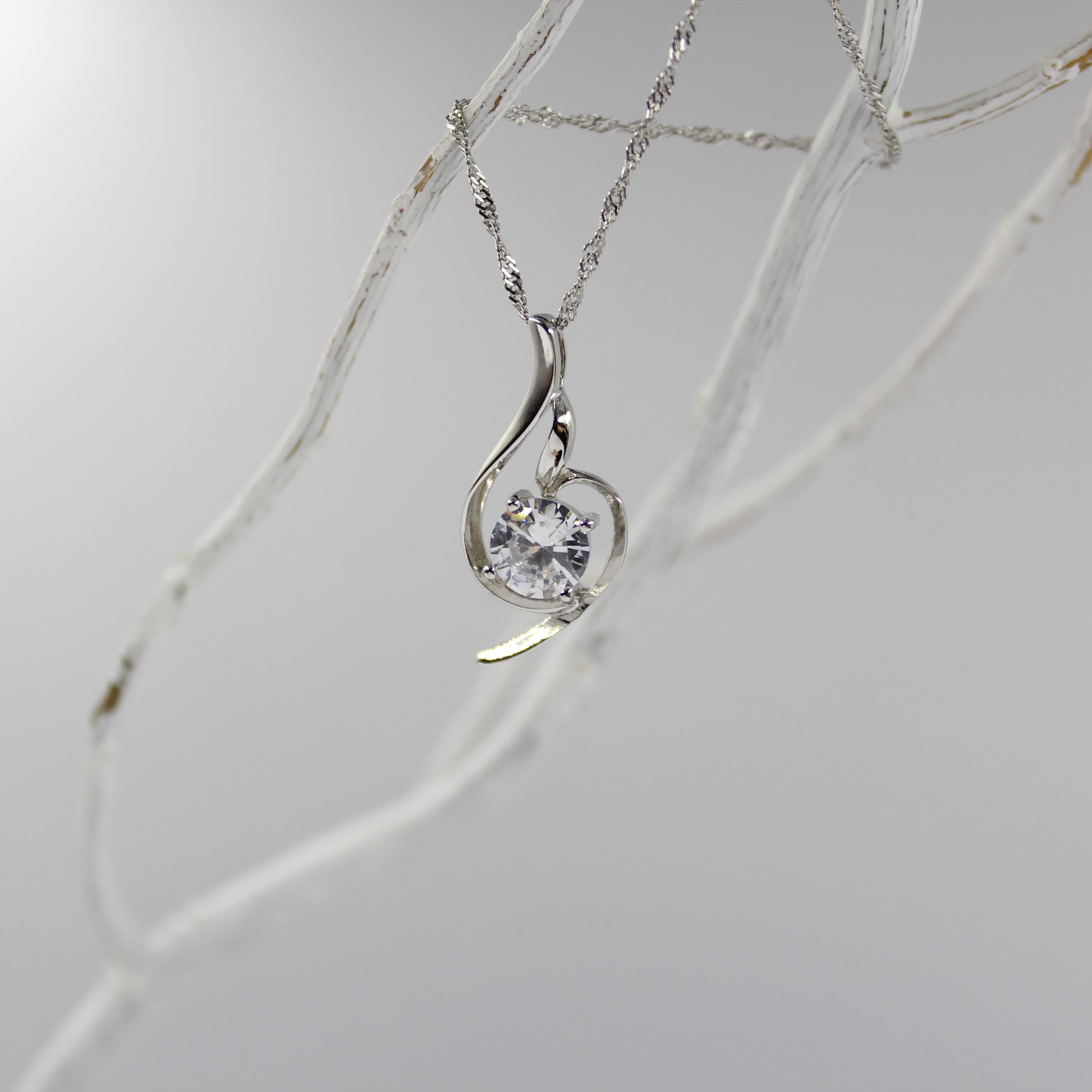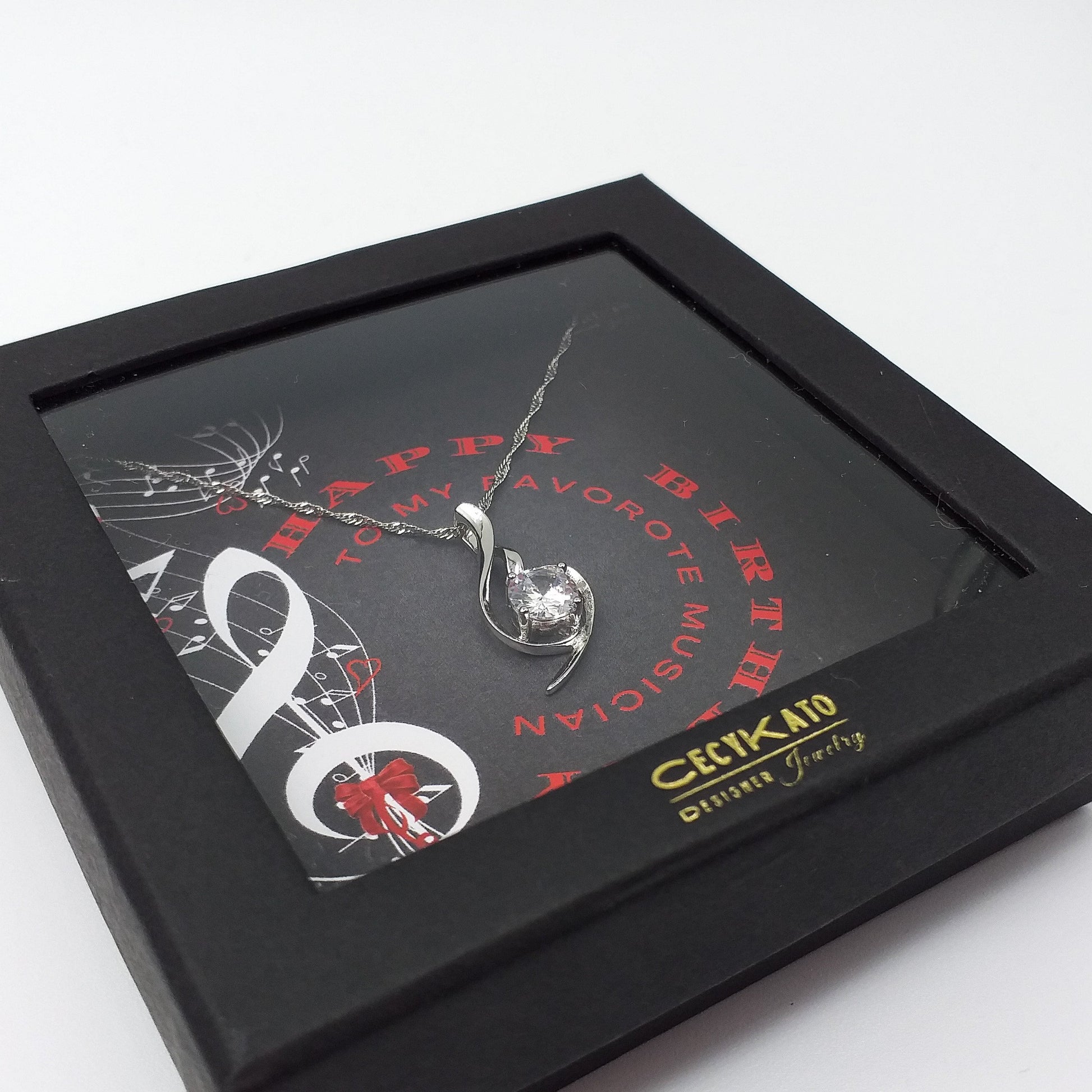 Birthday / Music - 925 Sterling Silver Cubic Zirconia Irregular Minimalist Necklace TE3BW85HBMS