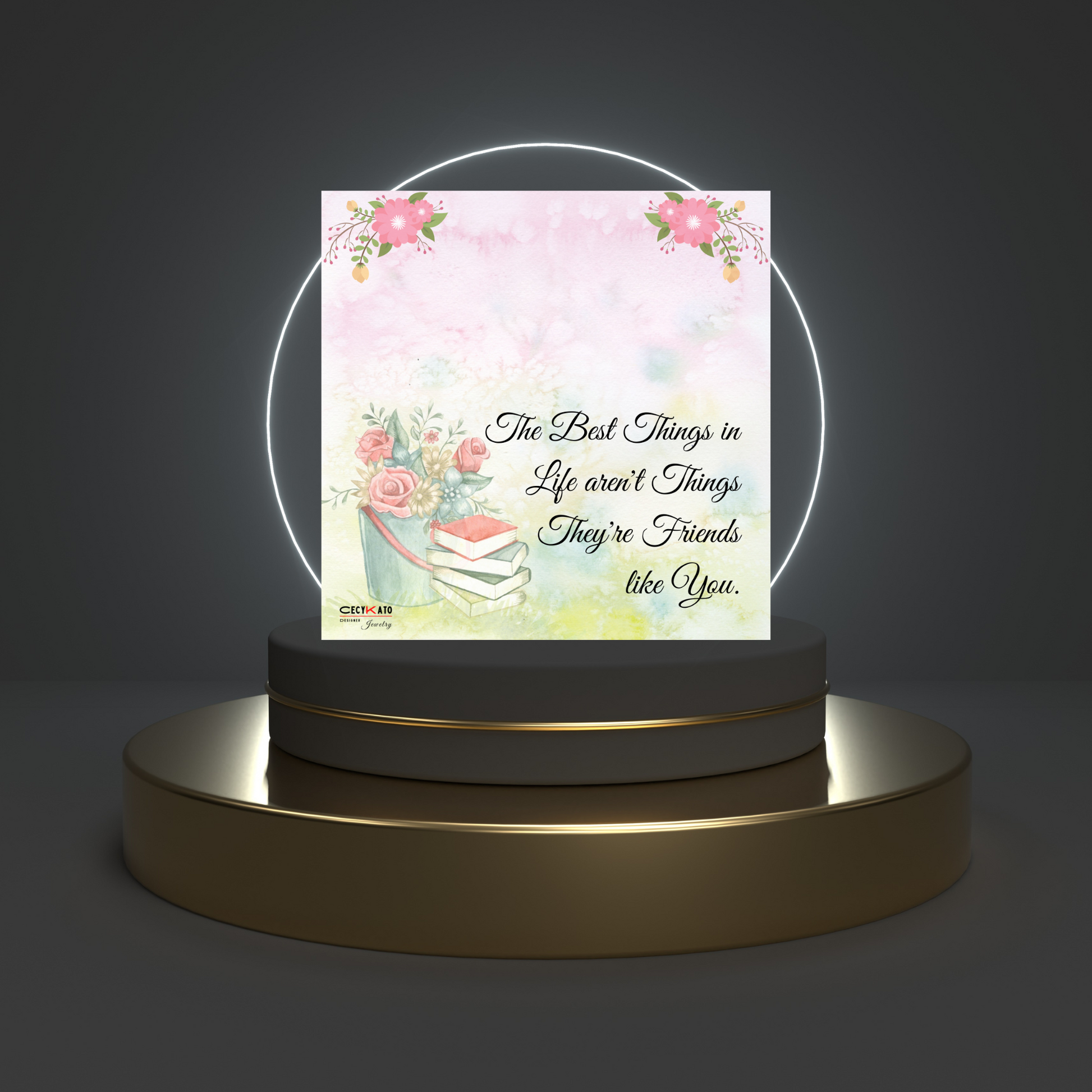 Be inspired and move your loved one to tears with The Best Things in Life Message Card. Perfectly encapsulating the sentiment that friends are far more precious than any material possession, this card is a reminder of the most important aspects of life. Its elegant design reflects your appreciation, making the recipient feel cherished and loved. Make any special occasion even more meaningful with this special, exclusive card.