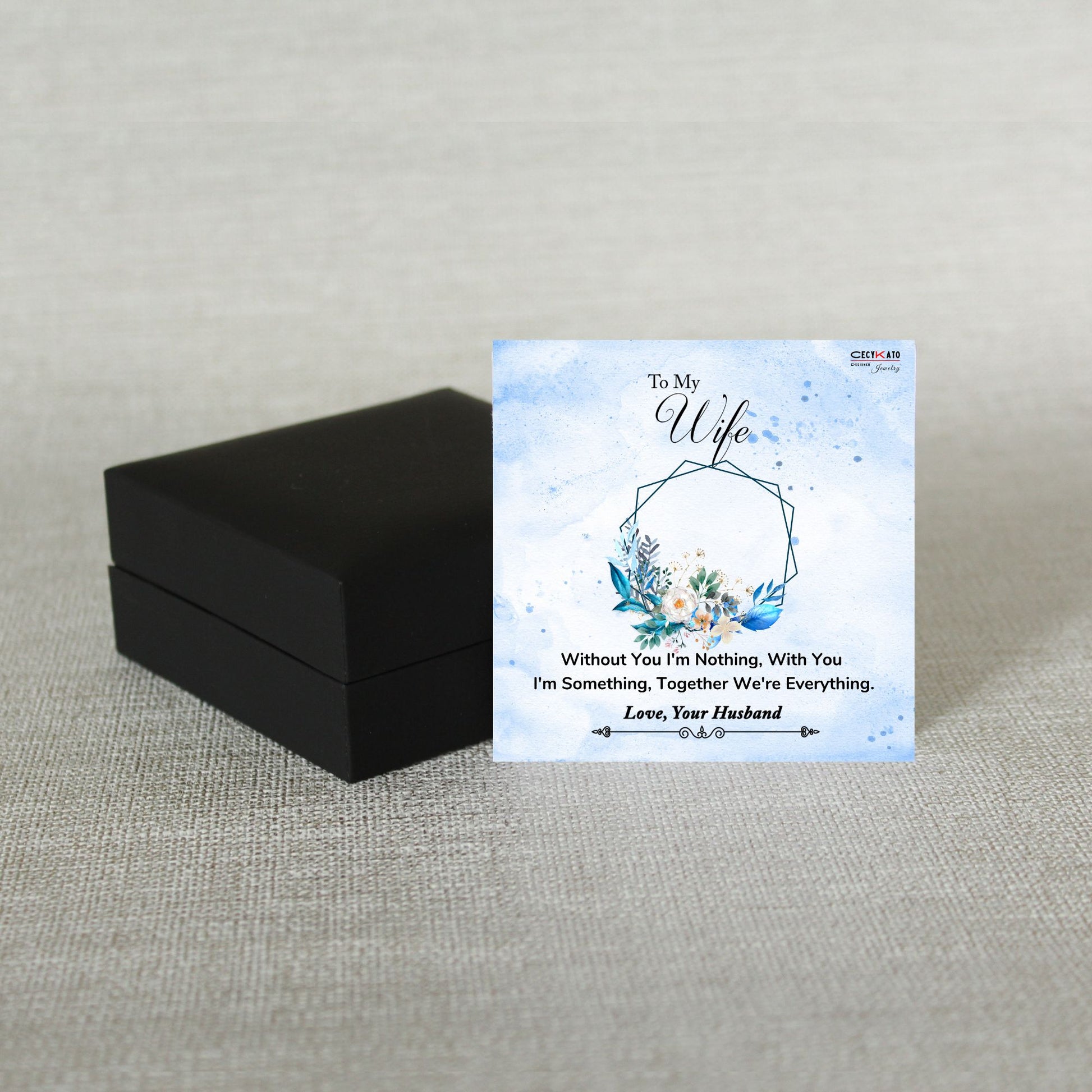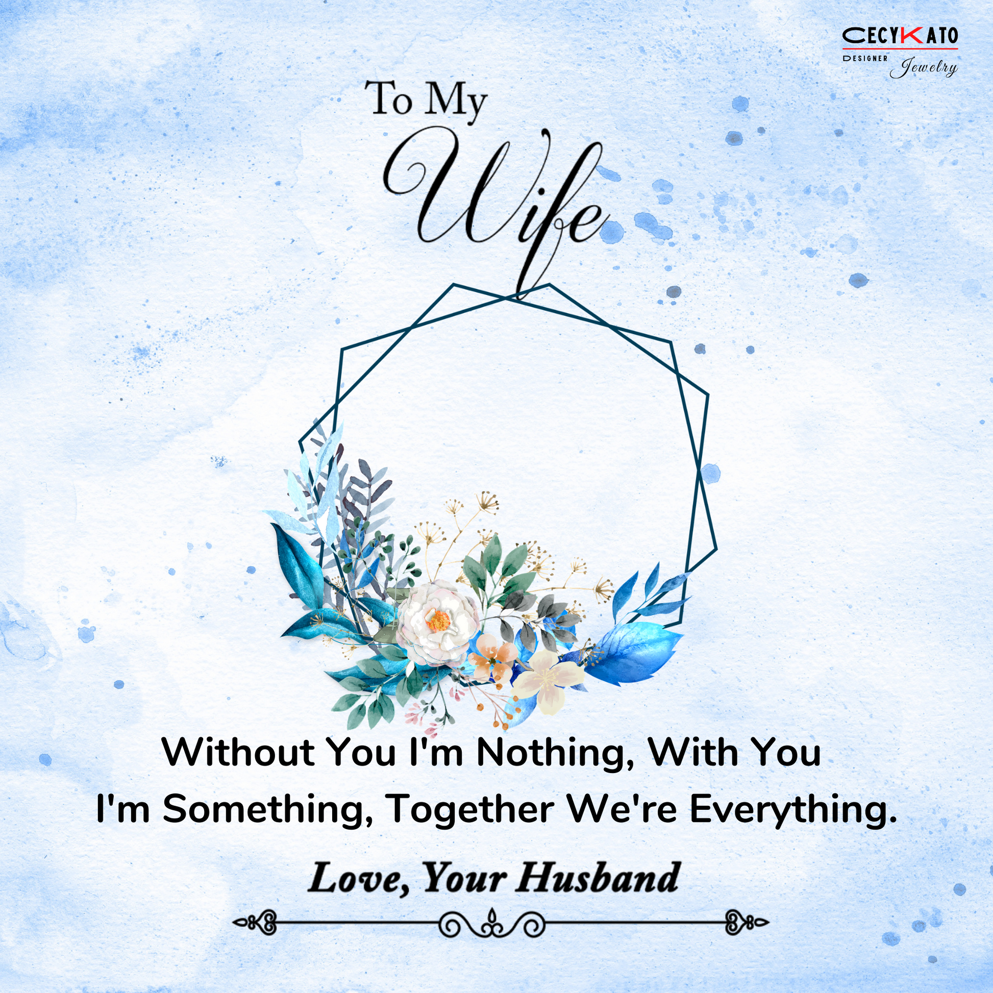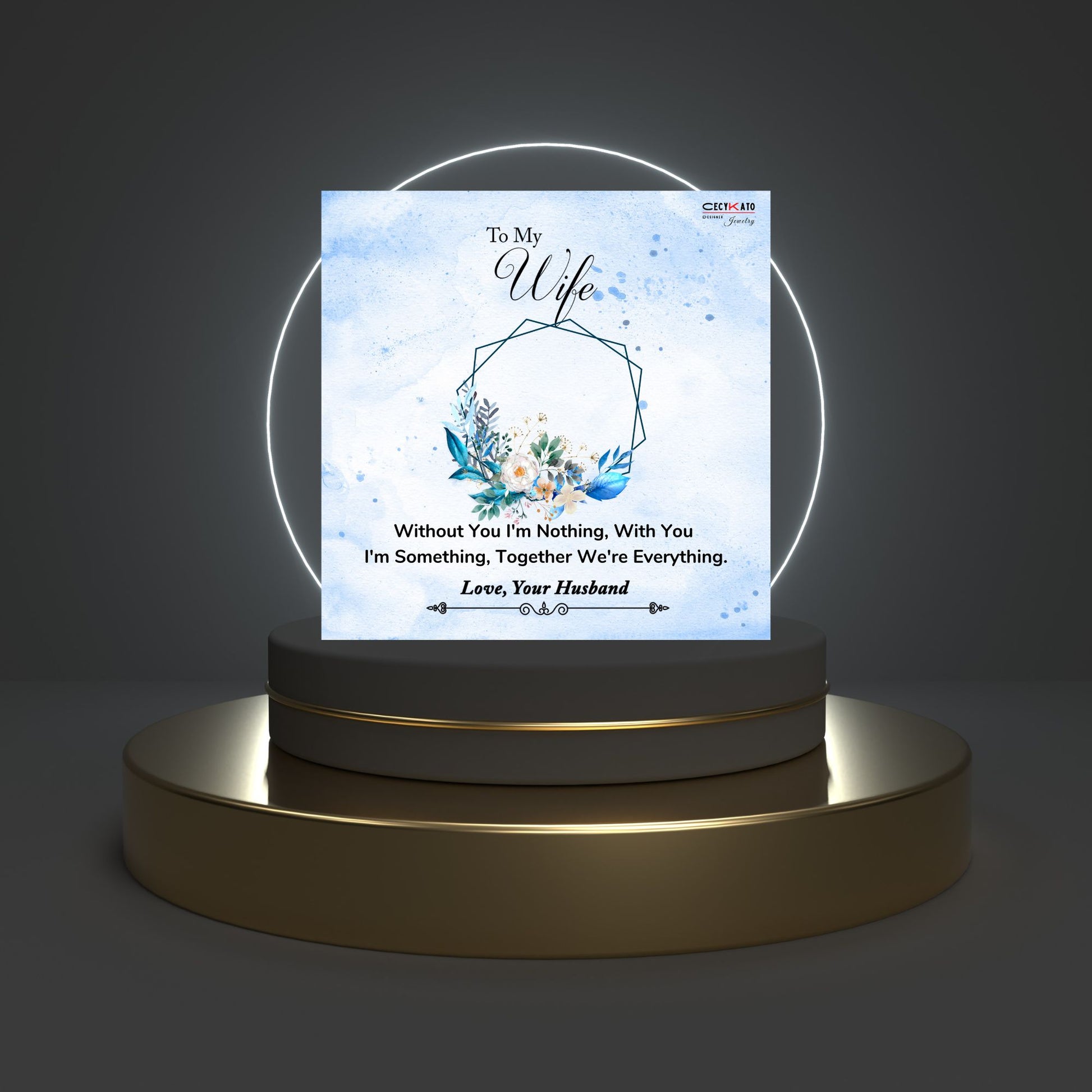 Express your love with this beautiful message card for your wife. Lovingly crafted with the phrase 'Without You I'm Nothing, With You I'm Something, Together We're Everything' to remind your partner of the unrivalled magnificence of your connection. An elegant and tasteful way to show your appreciation.