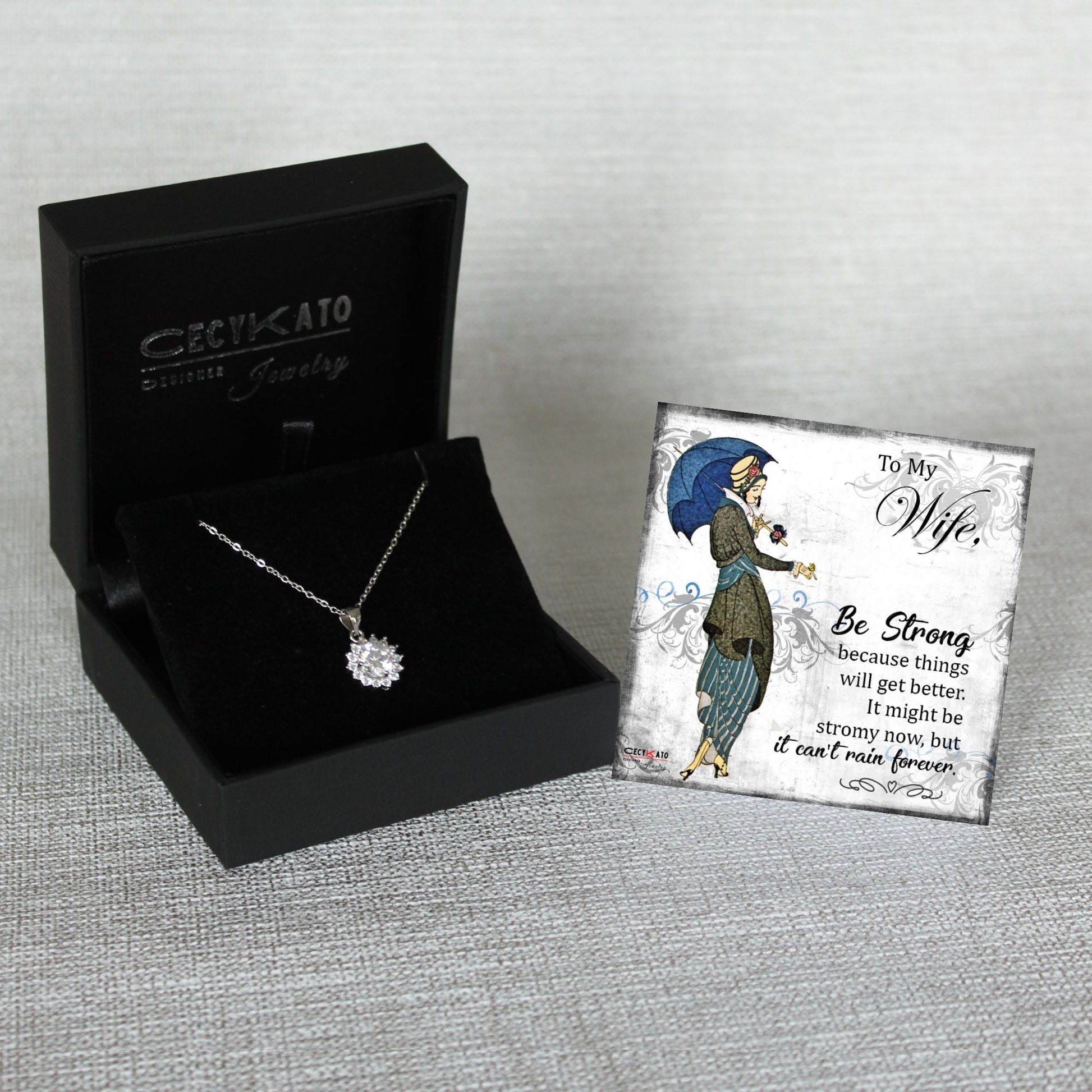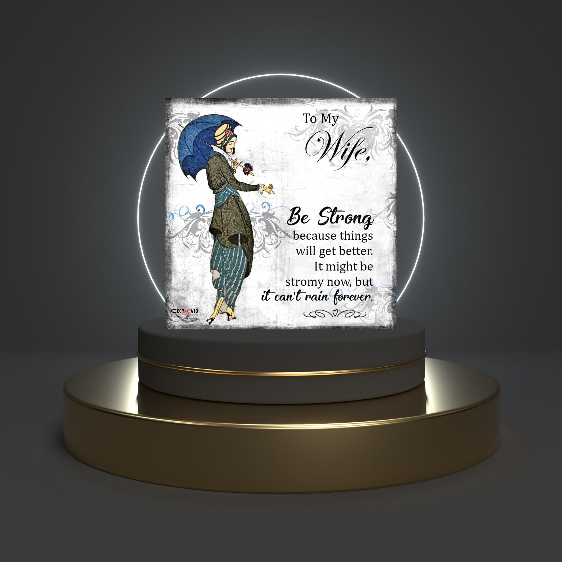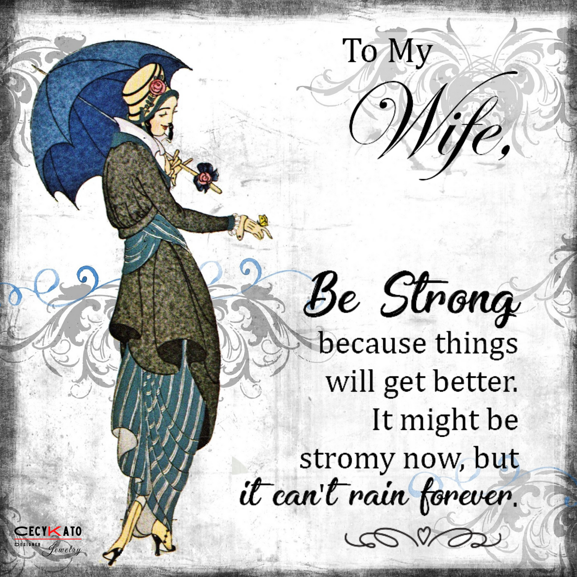 This 'To My Wife' message card is the perfect way to send a thoughtful reminder of love and support. Carefully inscribed with an inspirational message to "Be Strong because things will get better", it serves as a reminder that the storm may be raging, but it can't rain forever. An elegant and tasteful gift, it is the perfect way to let your beloved know that you are in their corner.