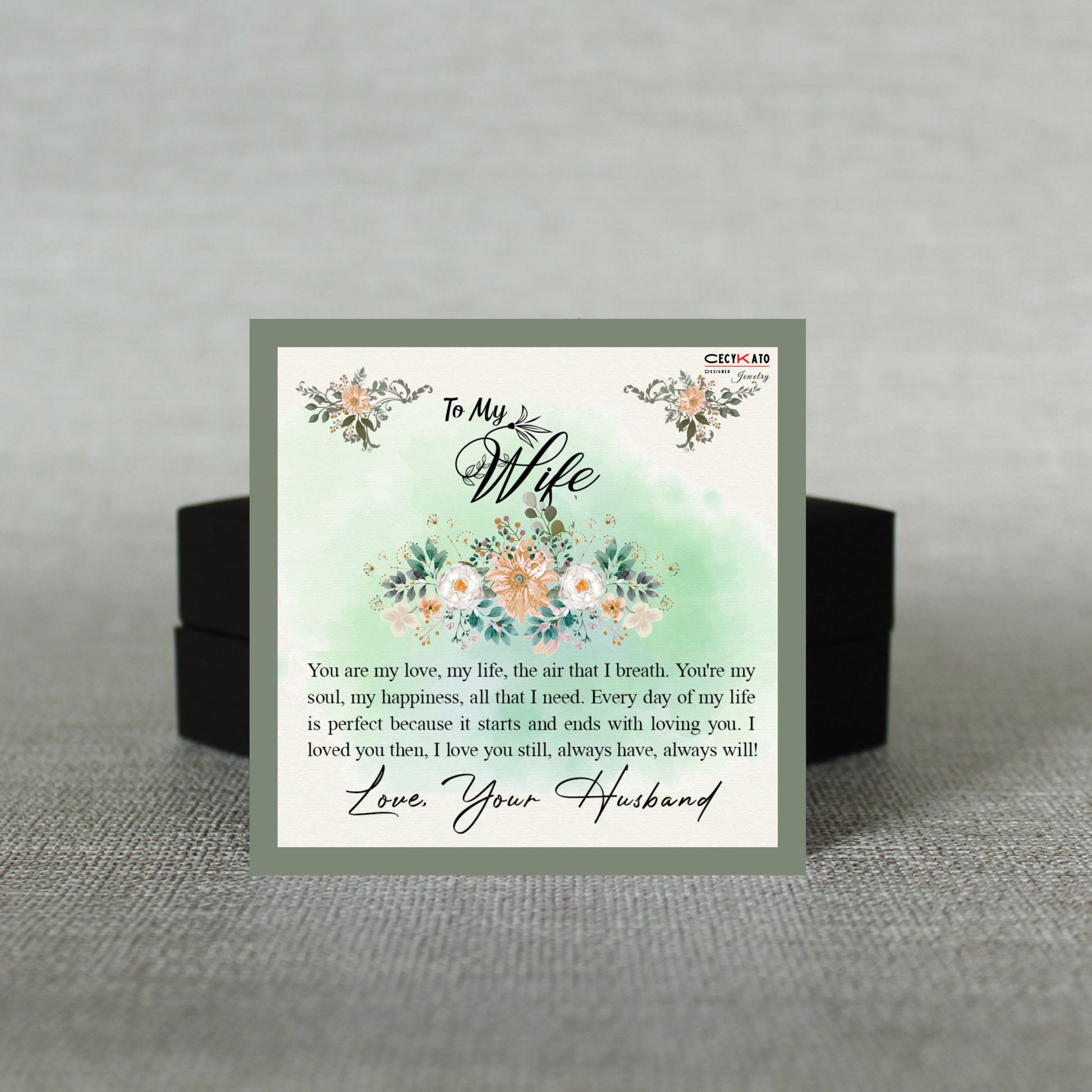 This elegant To My Wife Message Card is designed to make your better half feel the depth of your love and appreciation. The beautiful and poetic words inscribed in the card speak of the adoration of your soulmate that transcends every day and will stand the test of time. With this exclusive card, you can create a special moment that will bring both your hearts closer together.