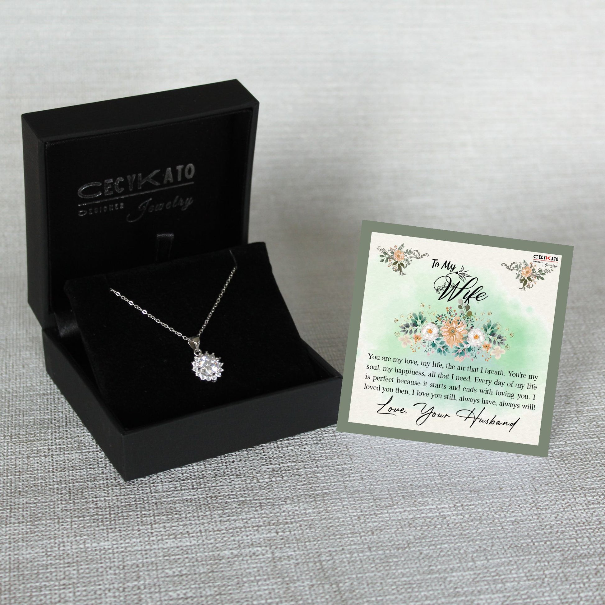 Card message: "You are my love, my life, the air that I breath. You're my soul, my happiness, all that I need. Every day of my life is perfect because it starts and ends with loving you. I loved you then, I love you still, always have, always will!"