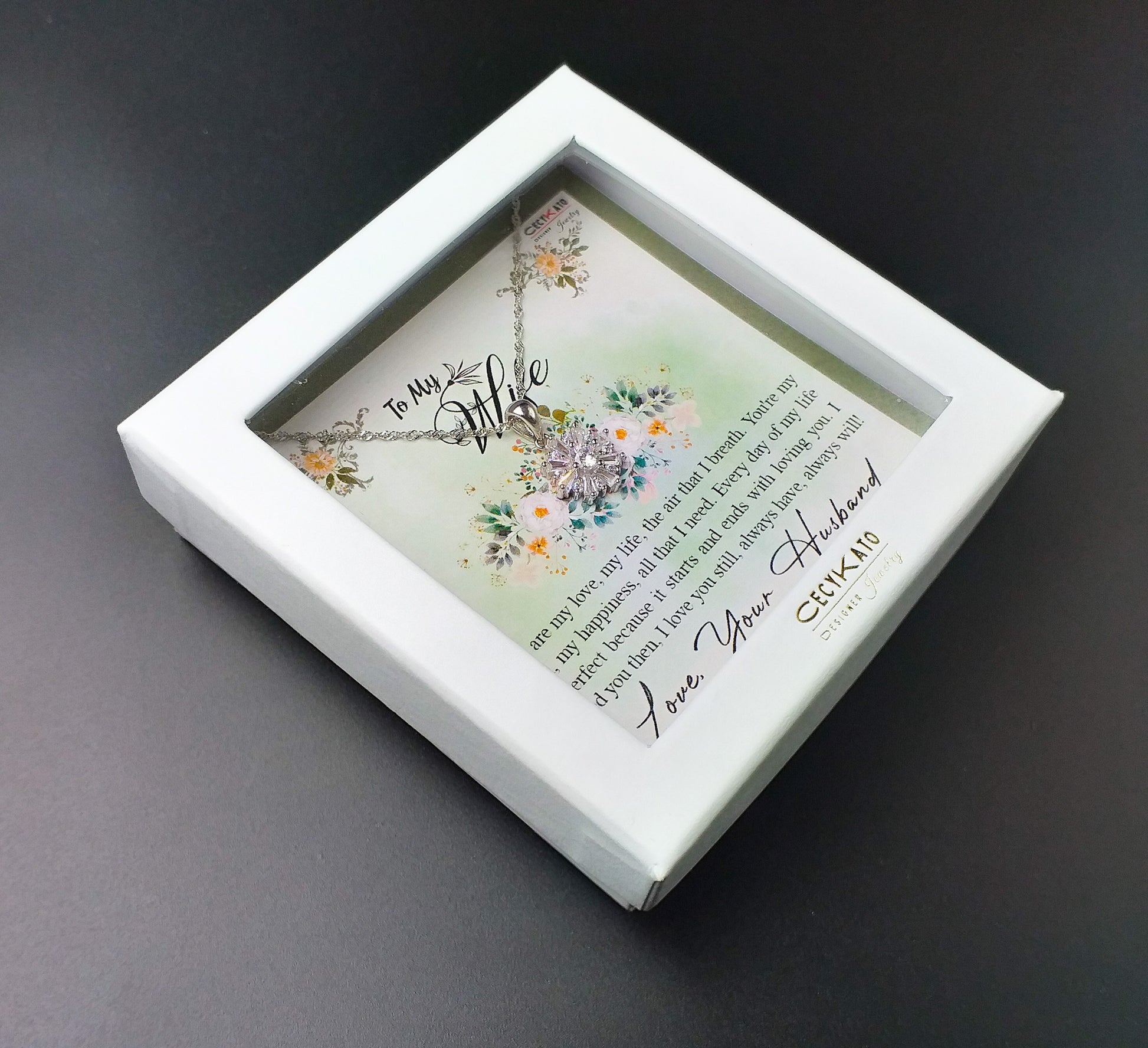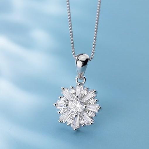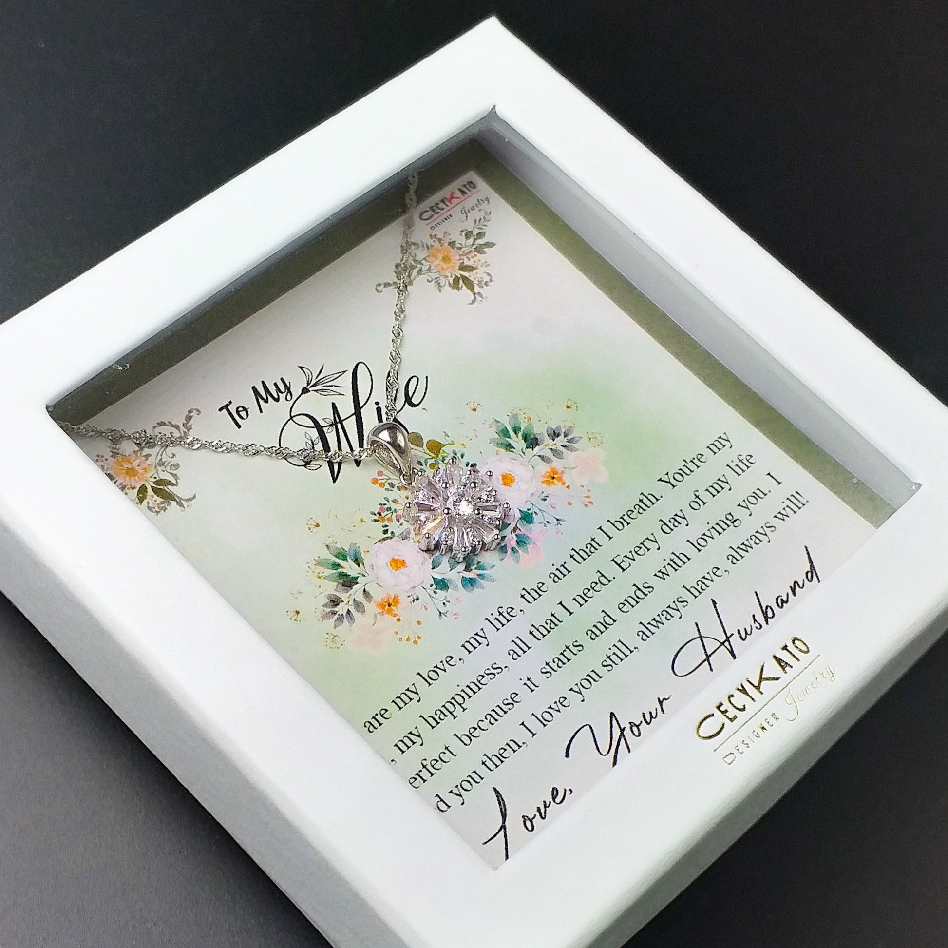 Wife / Love - 925 Sterling Silver Cubic Zirconia Flower Minimalist Necklace TE821W